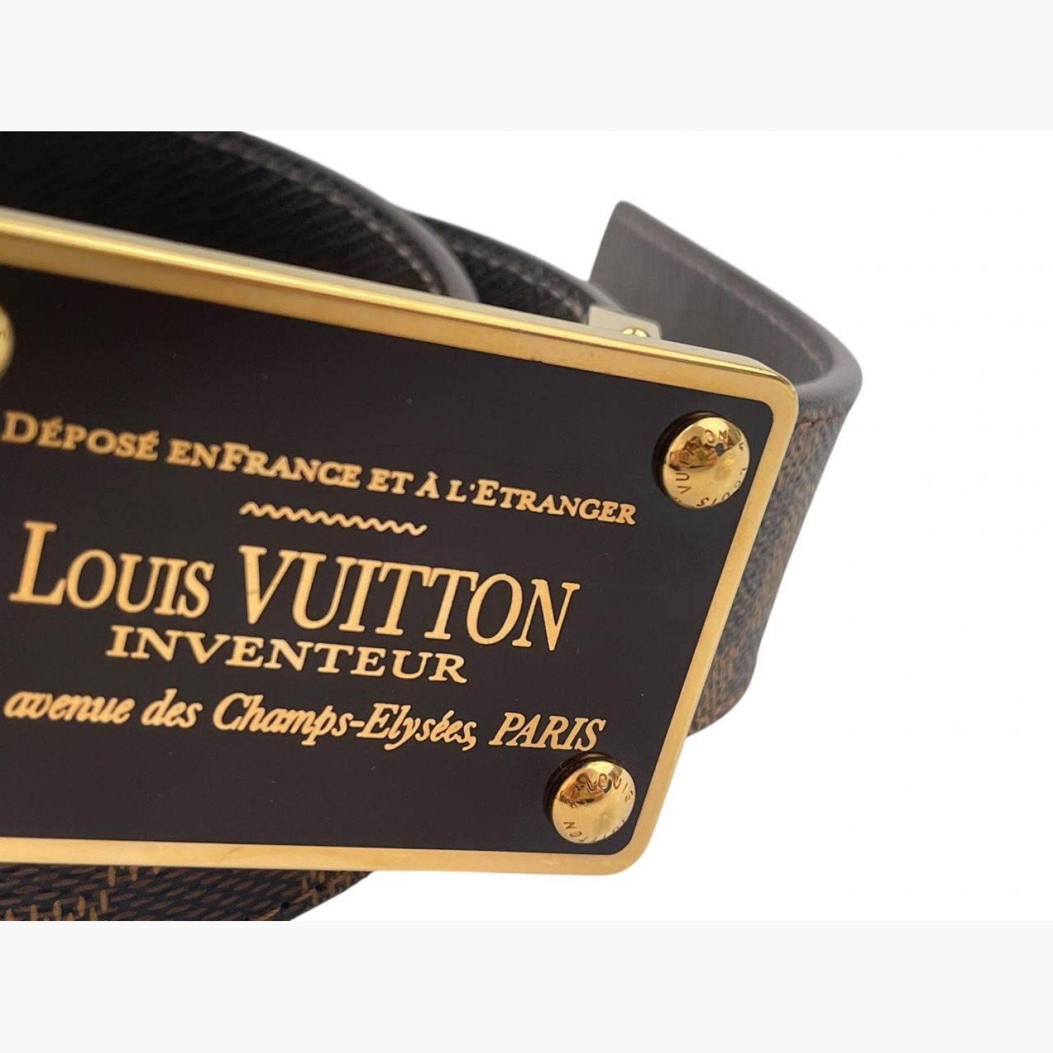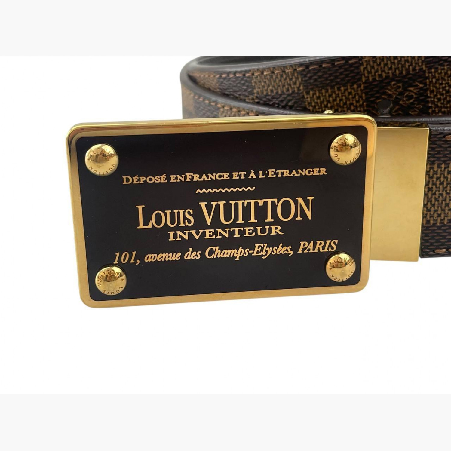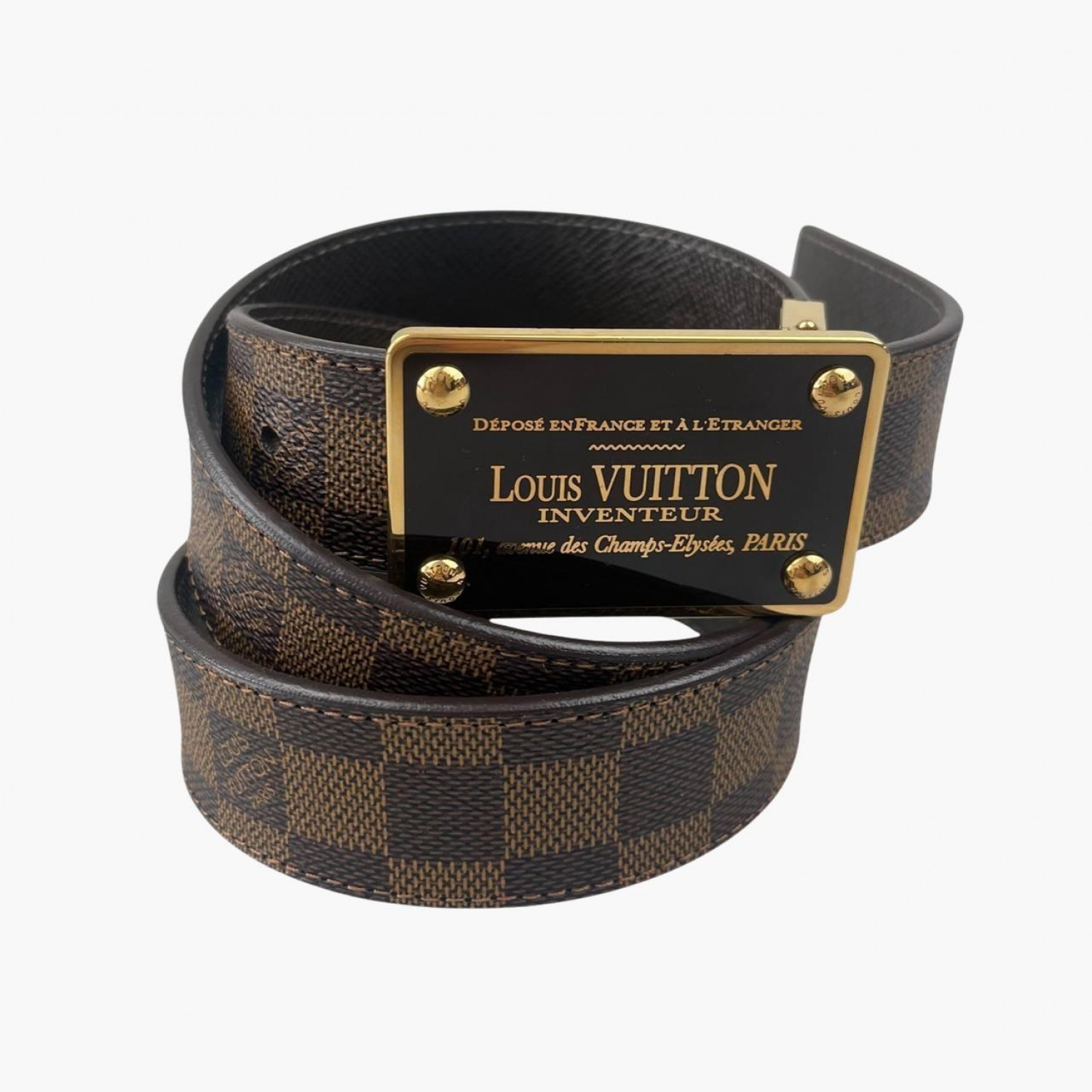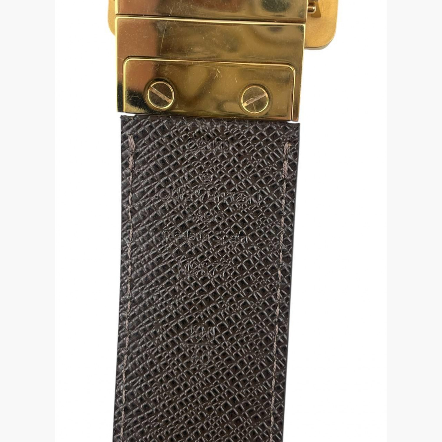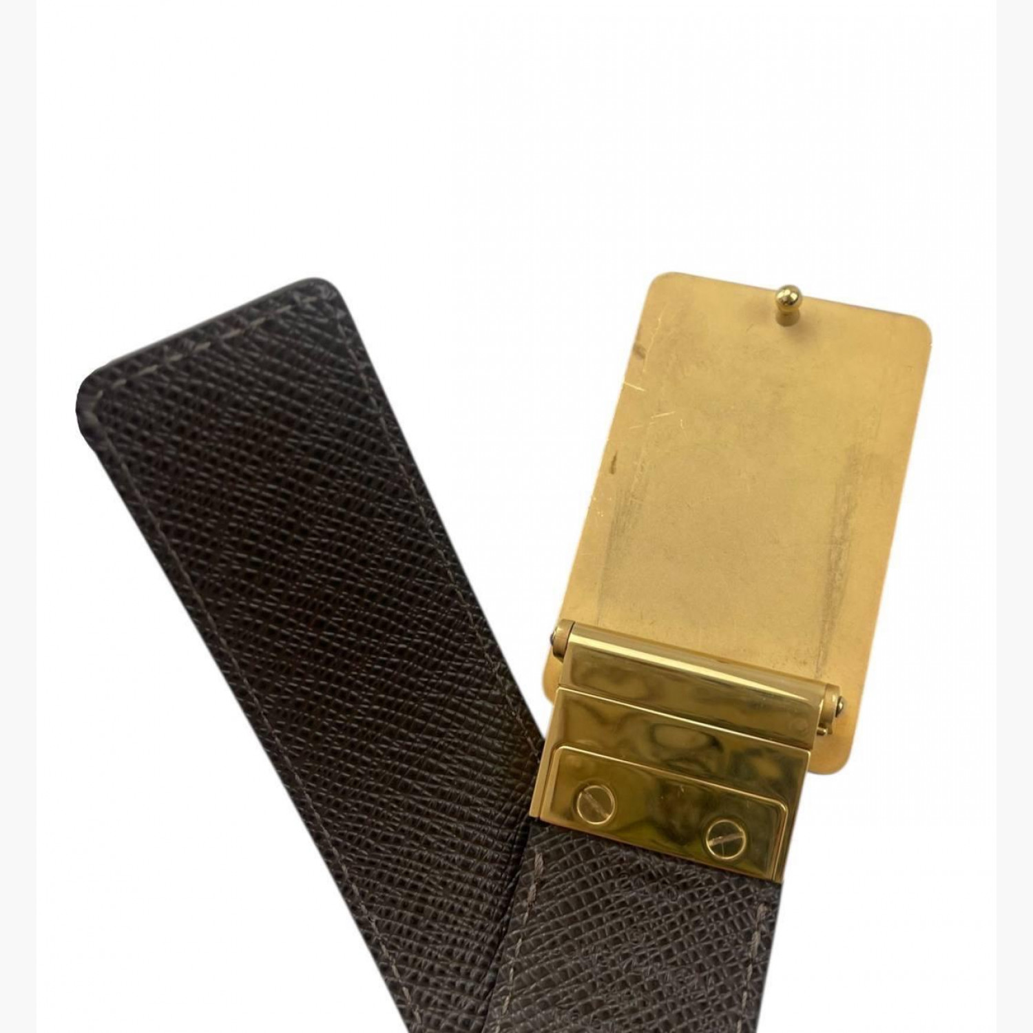 Коричневый ремень с принтом Damien Ebene, выполнен из канвы и кожи. Длина ремня — 100 см, ширина — 40 см. В отличном состоянии, есть лёгкие потертости на бляшке.