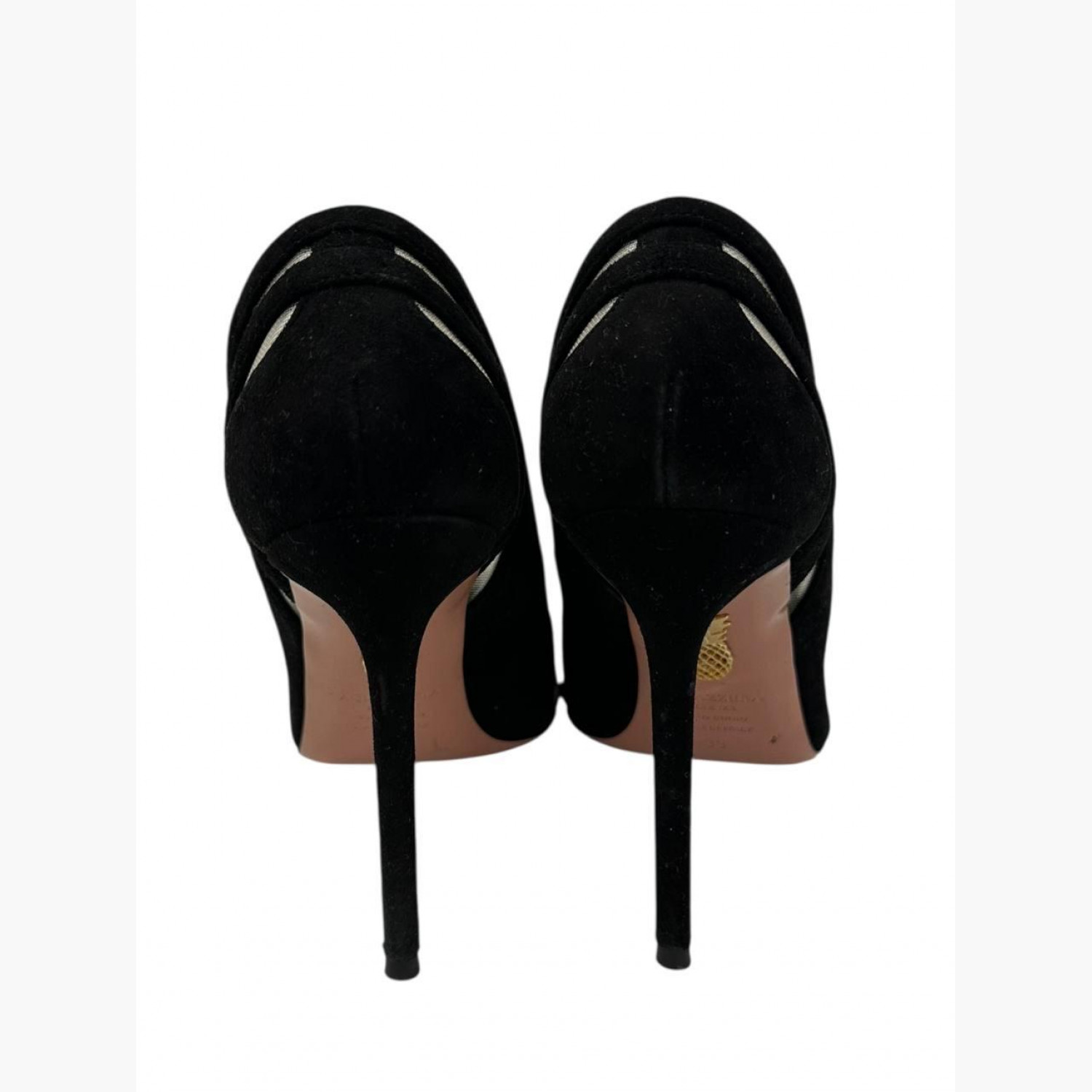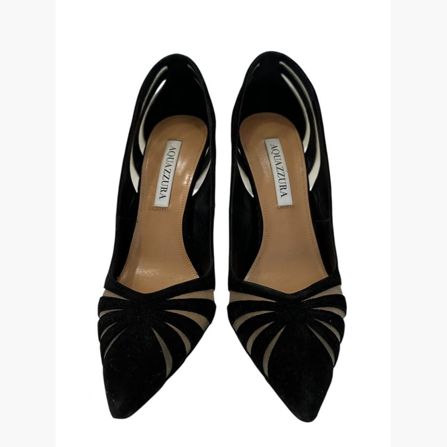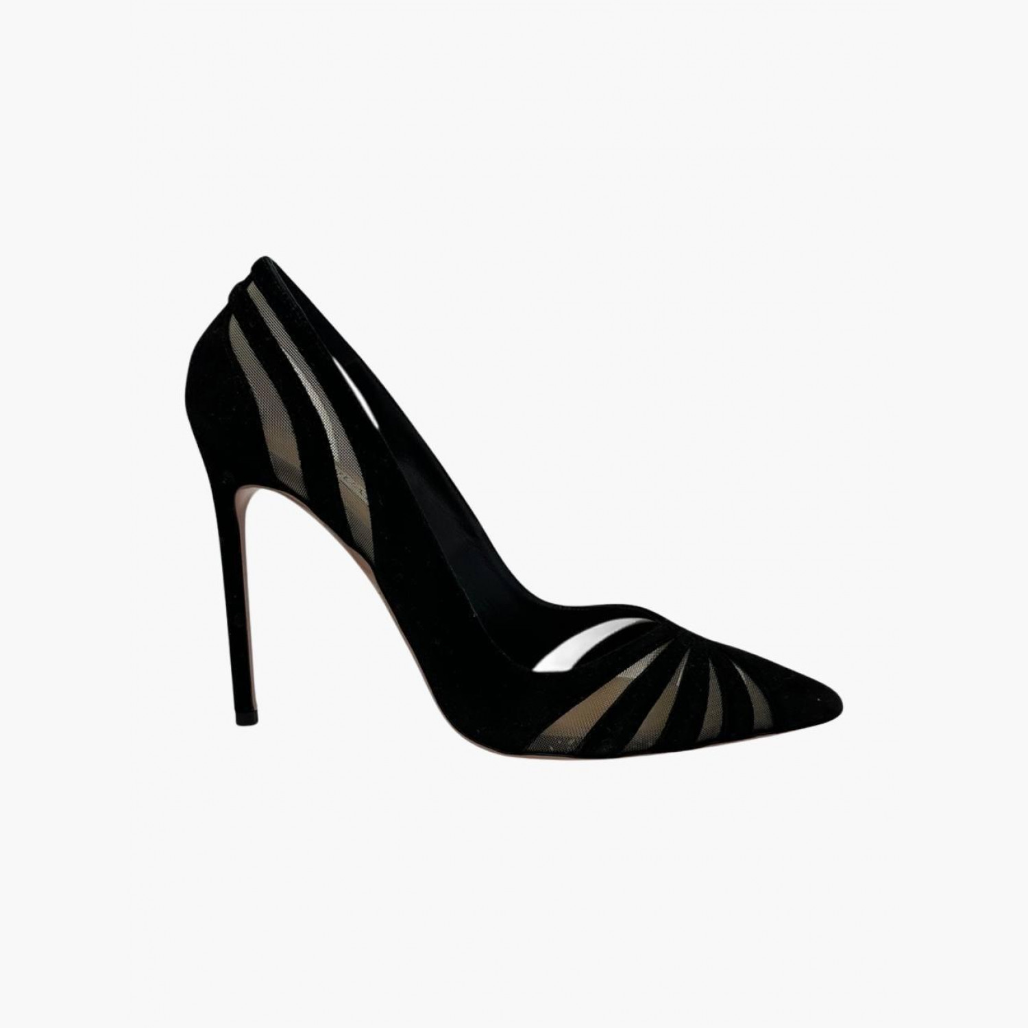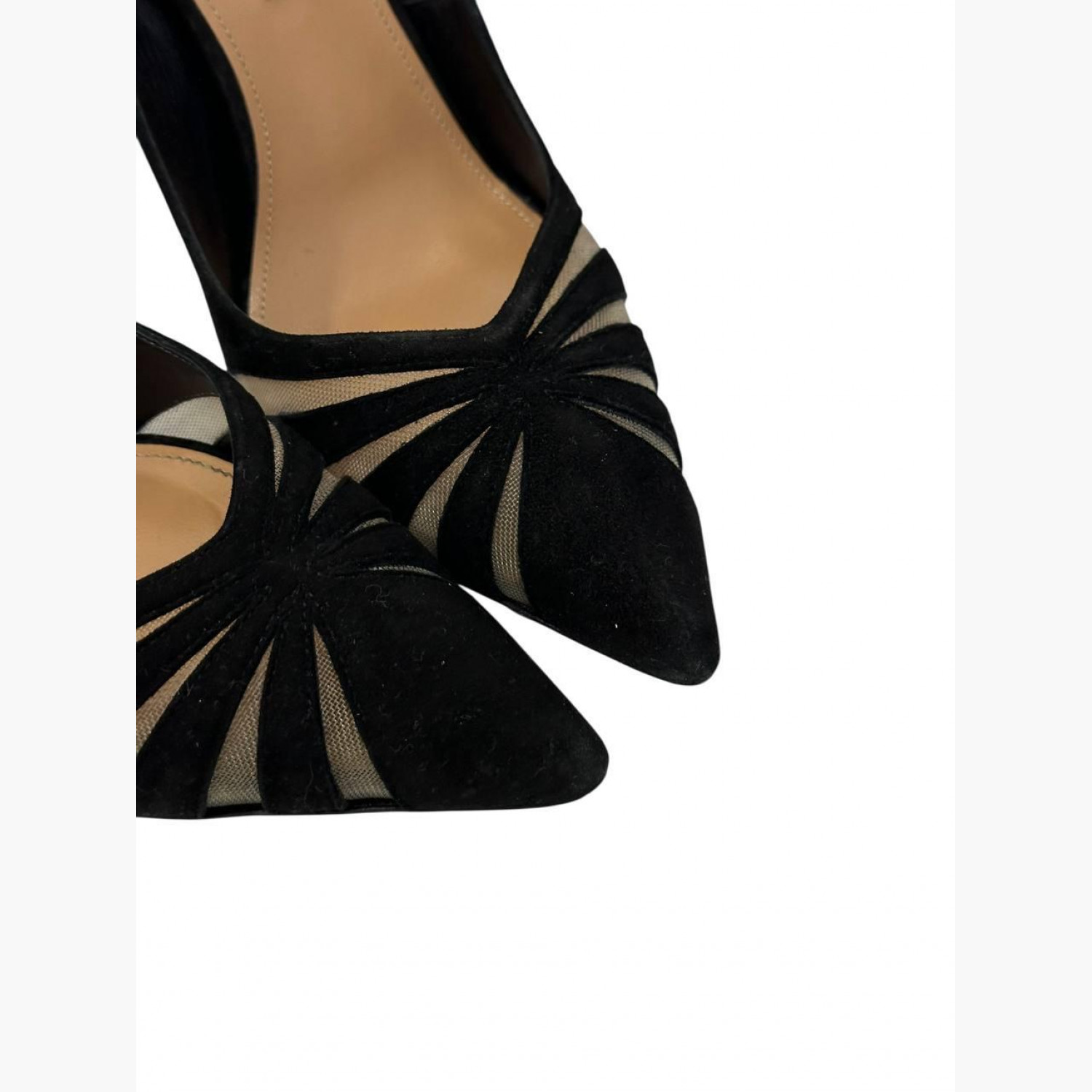 Черные замшевые туфли с сетчатыми вставками. В хорошем состоянии, есть потертости.