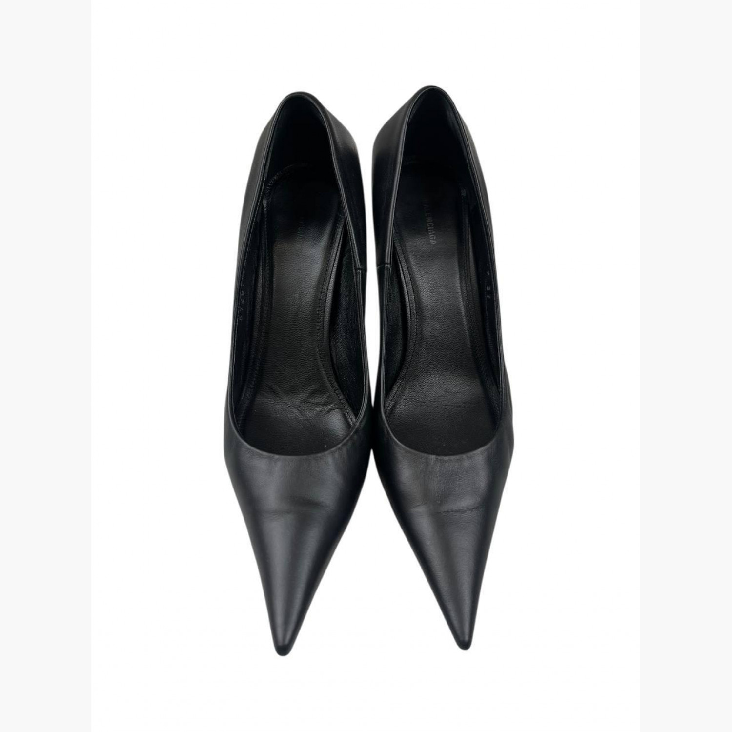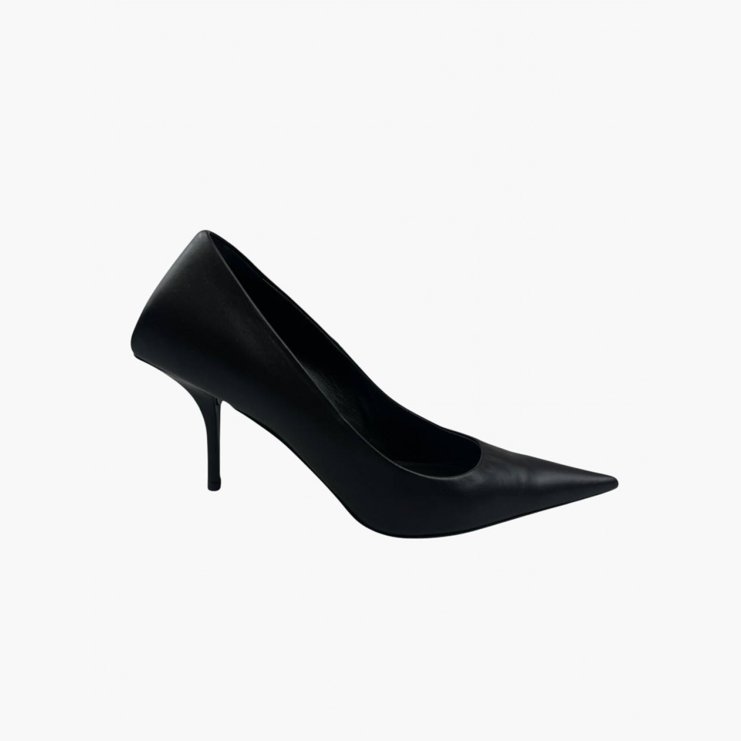 Черные кожаные туфли с плоским квадратным задником. В очень хорошем состоянии, есть незначительные следы носки.