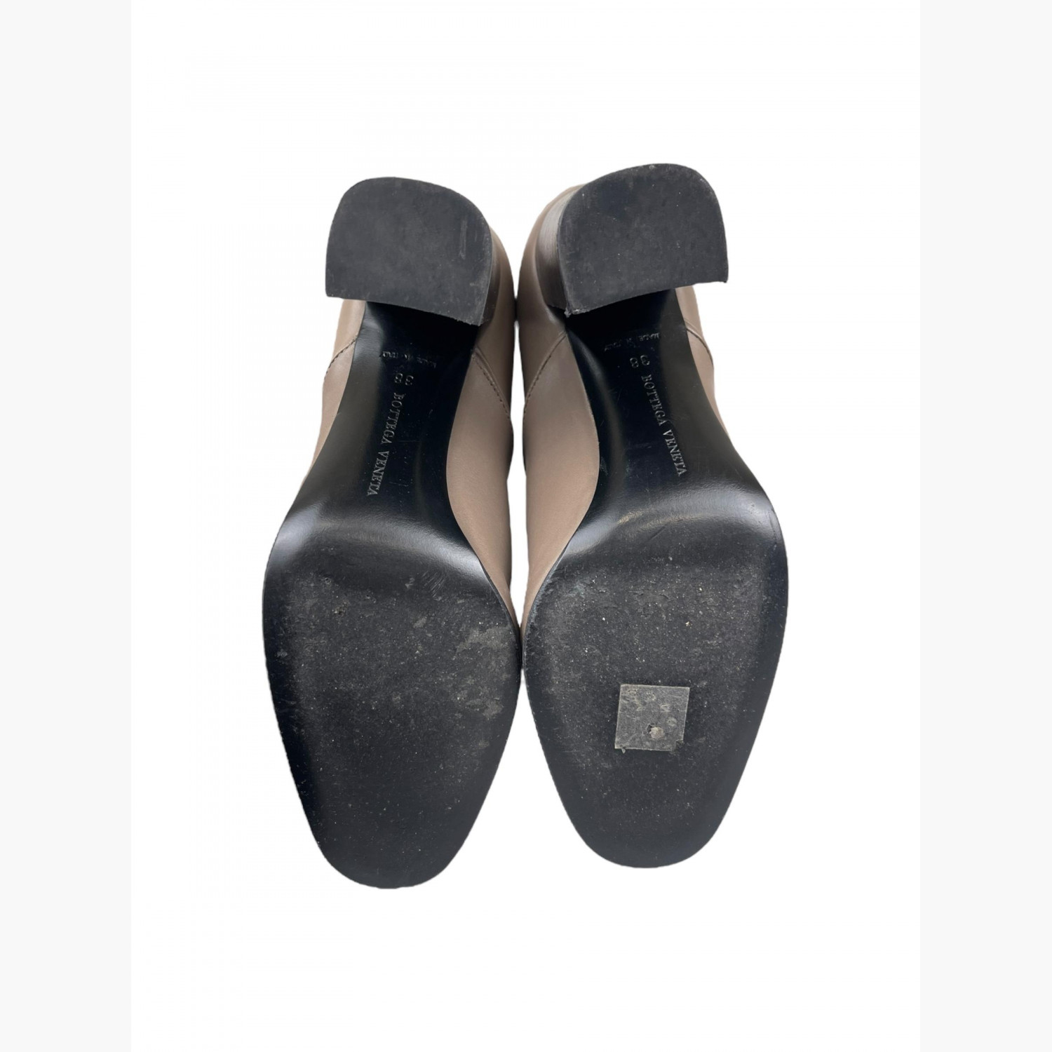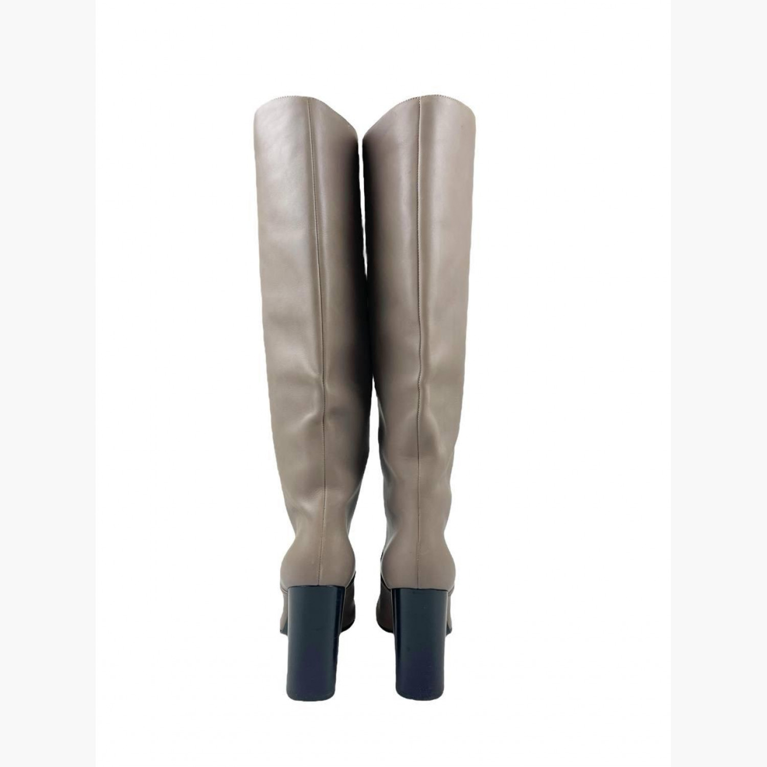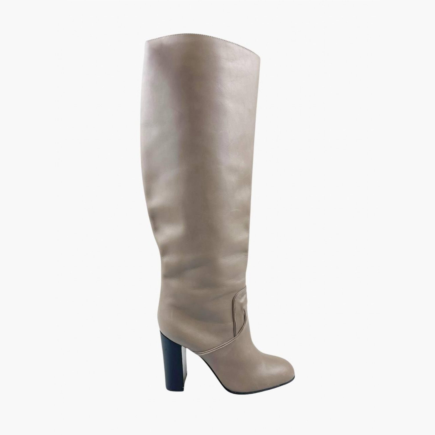 Бежевые высокие сапоги на высоком каблуке. В хорошем состоянии, есть потертости.