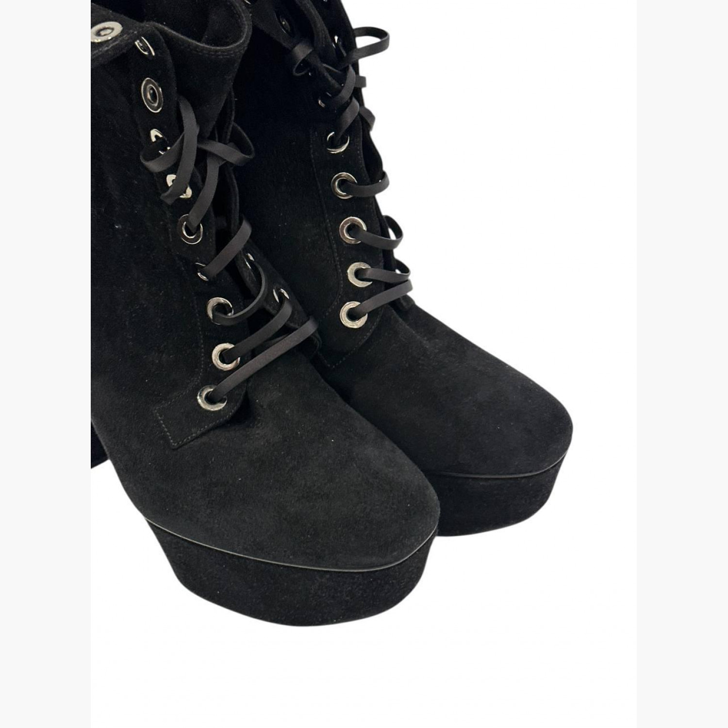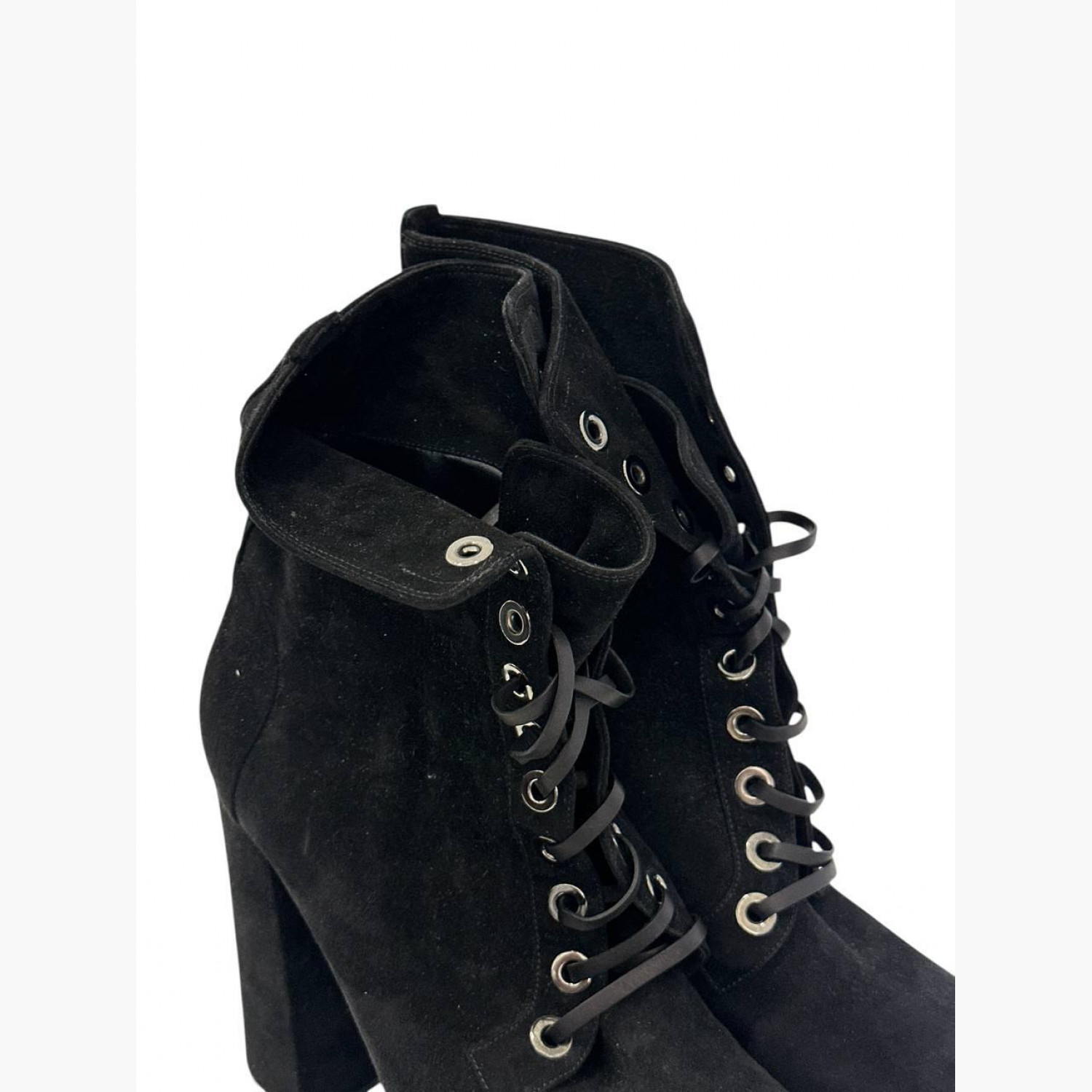 Черные замшевые ботильоны на шнуровке. В идеальном состоянии, есть незначительные потертости на подошве.