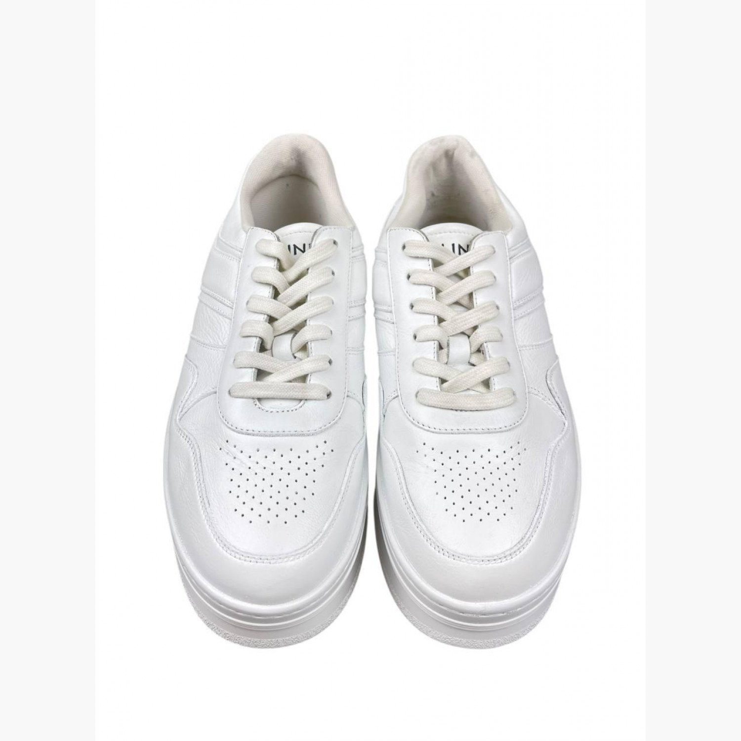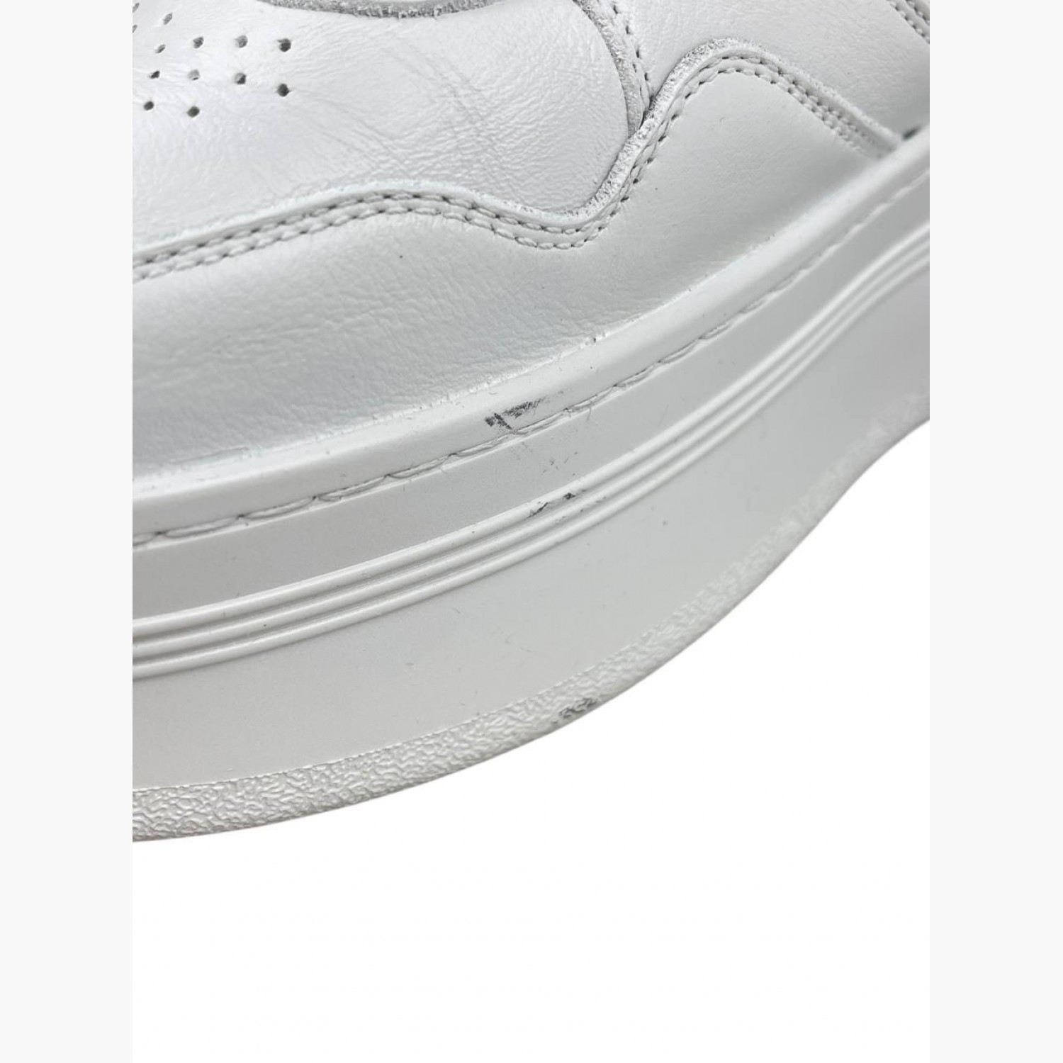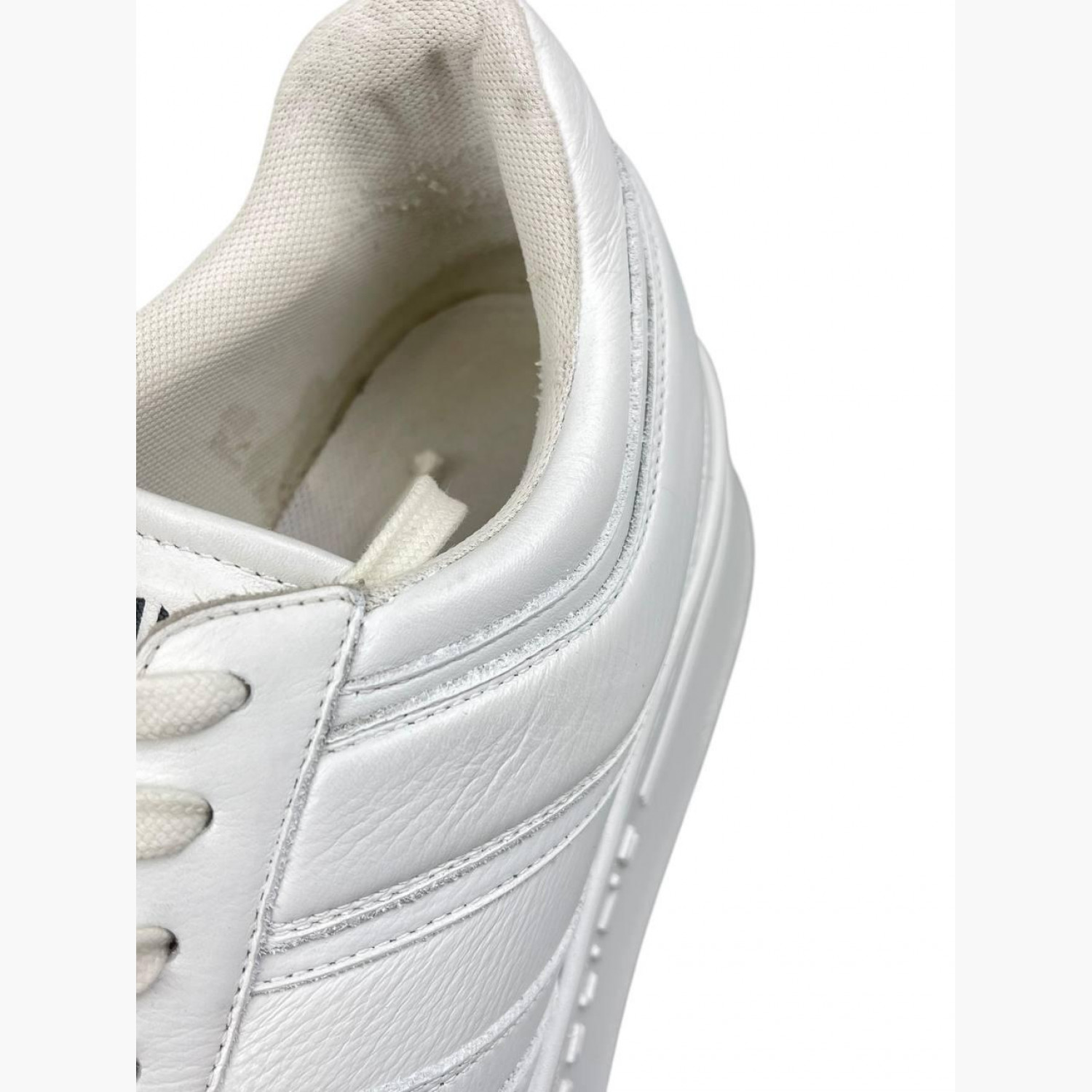 Белые кожаные кроссовки на высоком подъёме. В хорошем состоянии, есть следы носки.