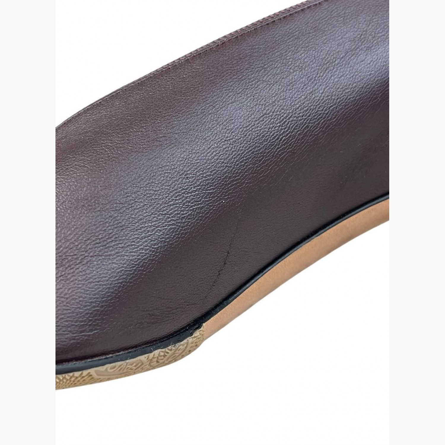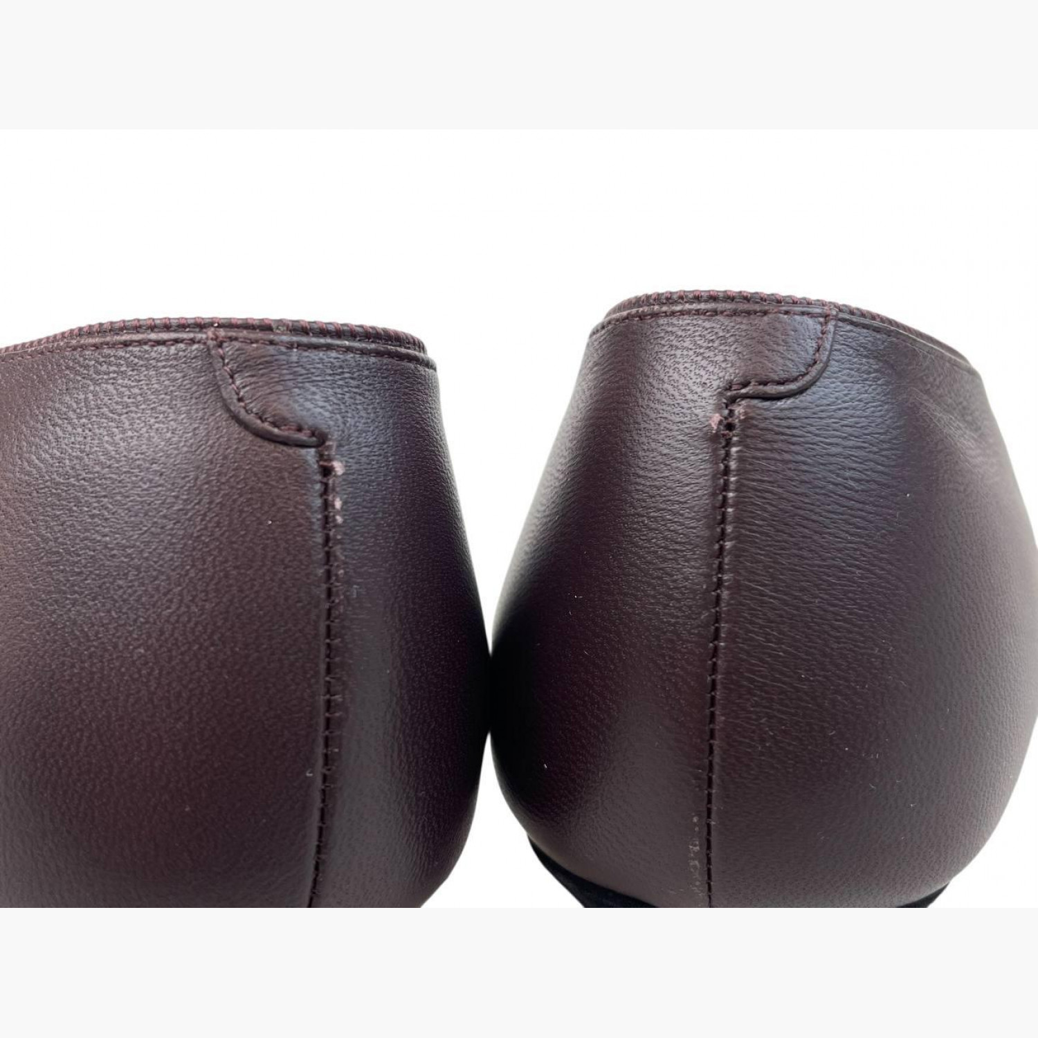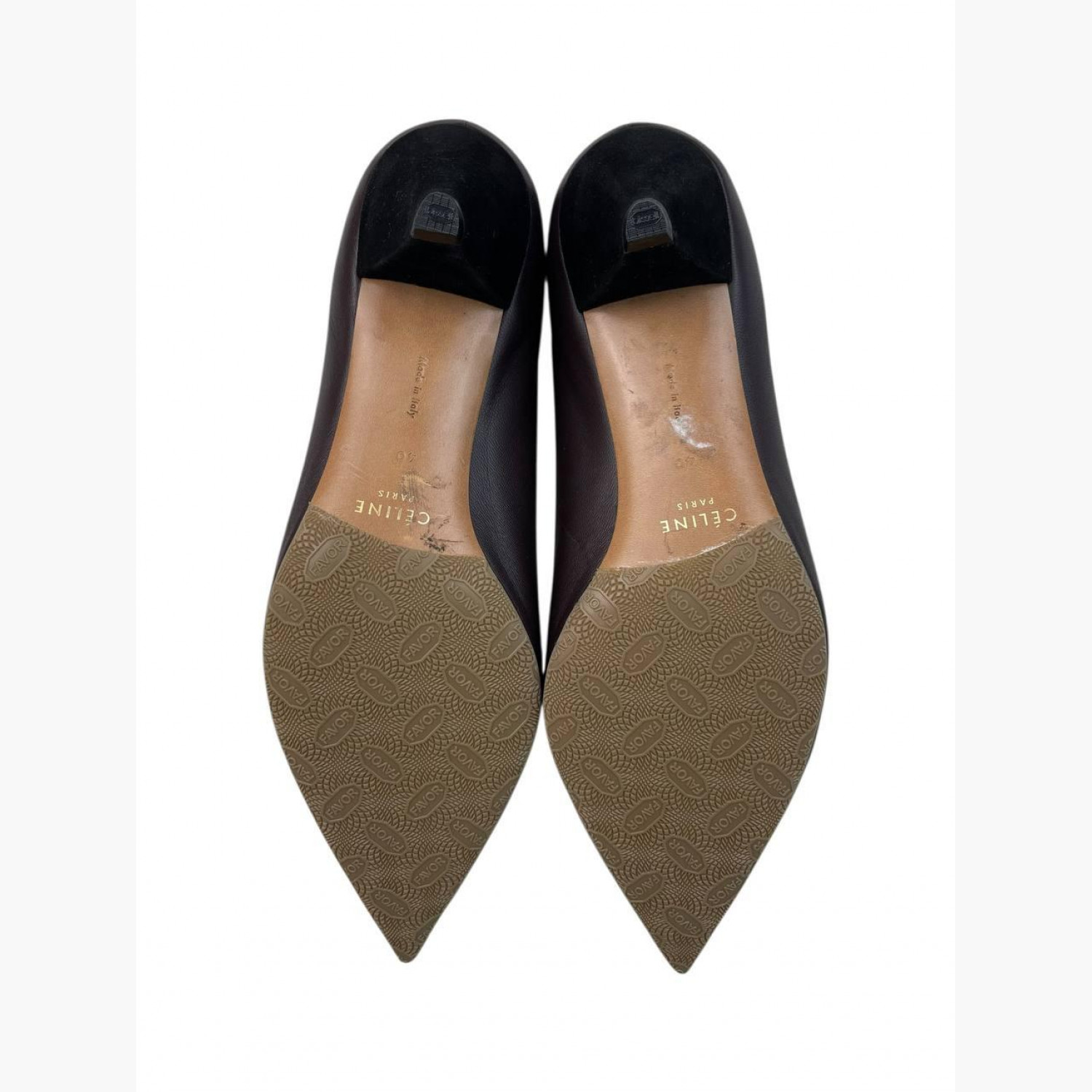 Бордовые кожаные туфли с острым носком и замшевым каблуком. В отличном состоянии, есть незначительные следы носки.
