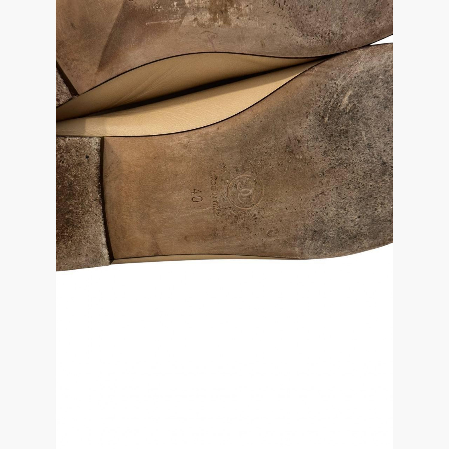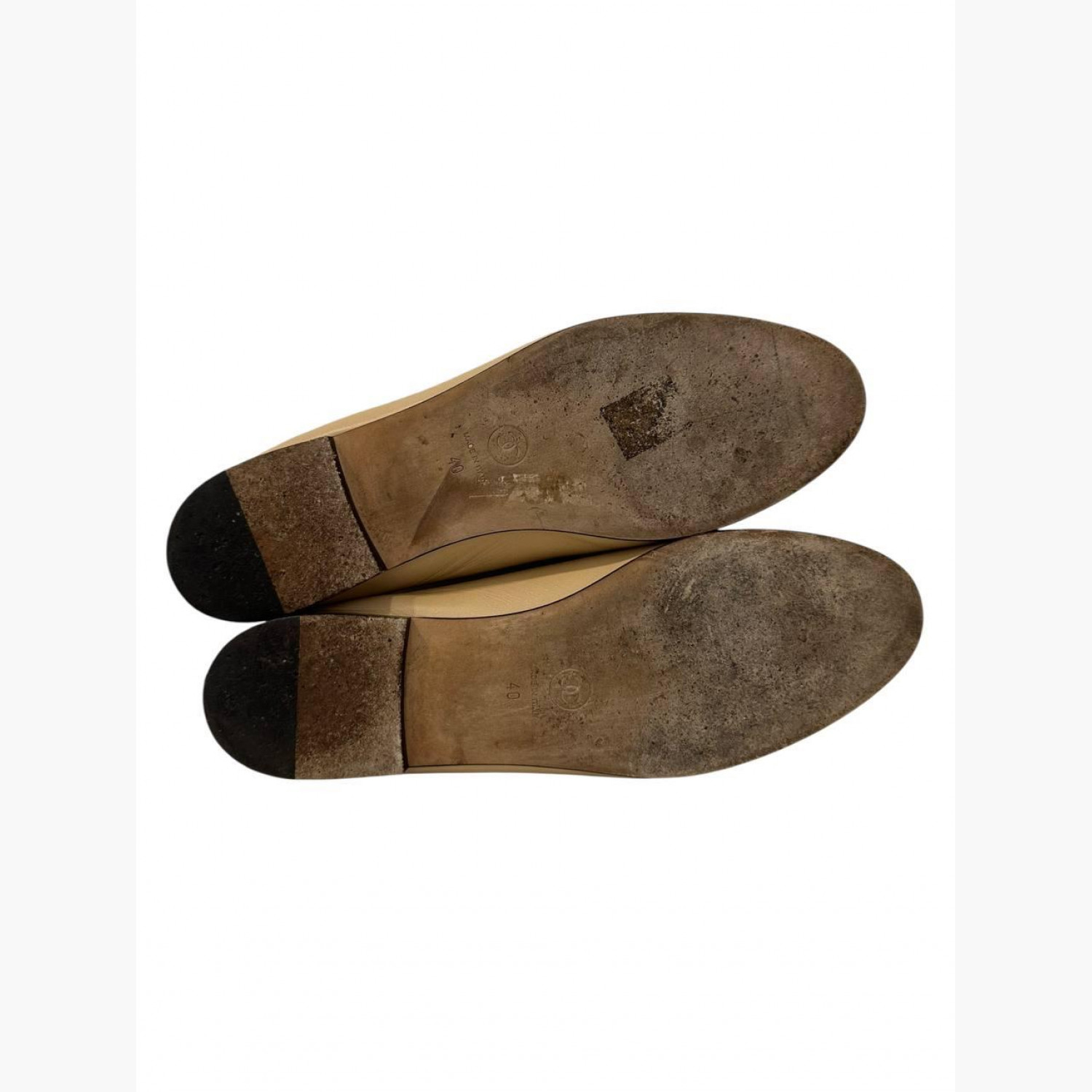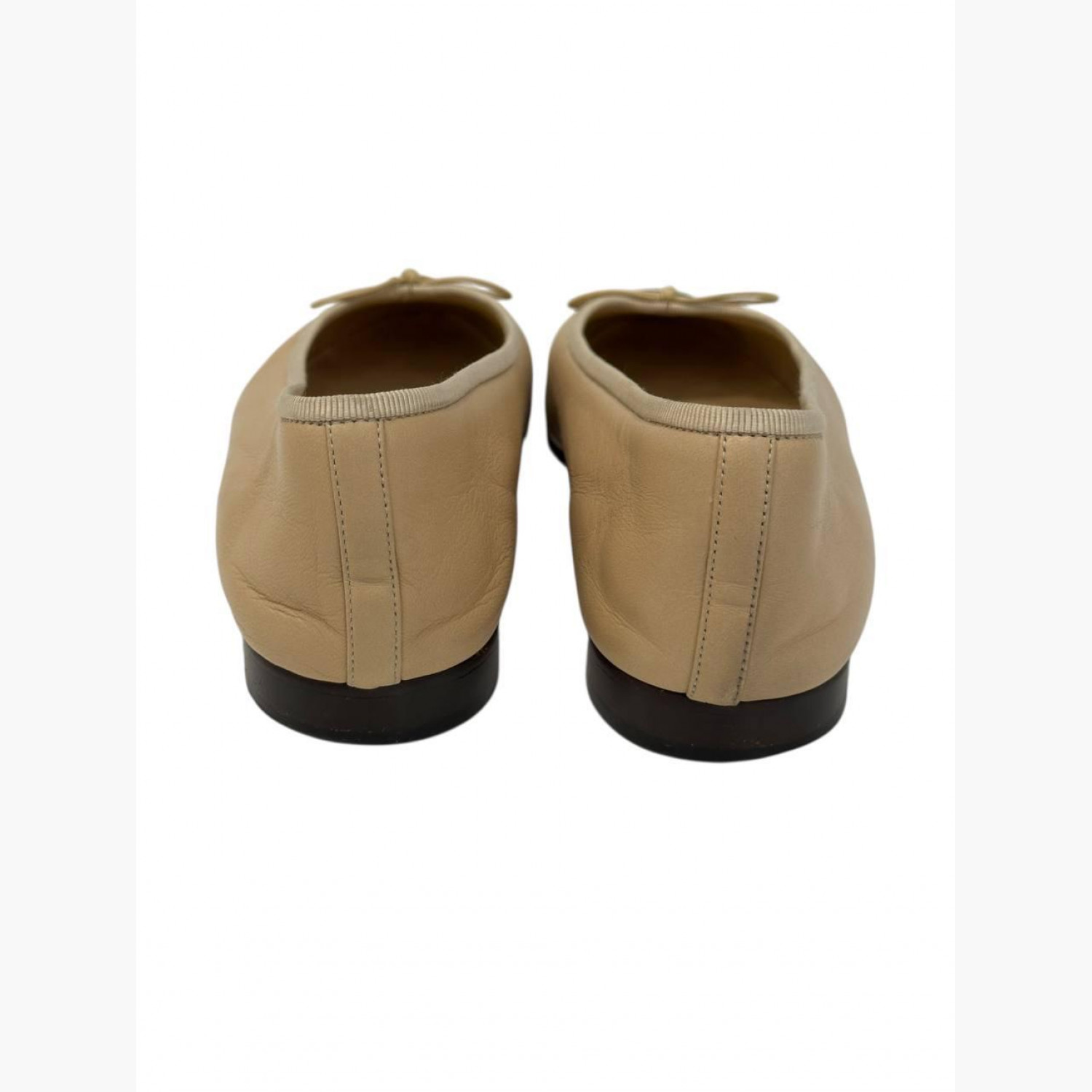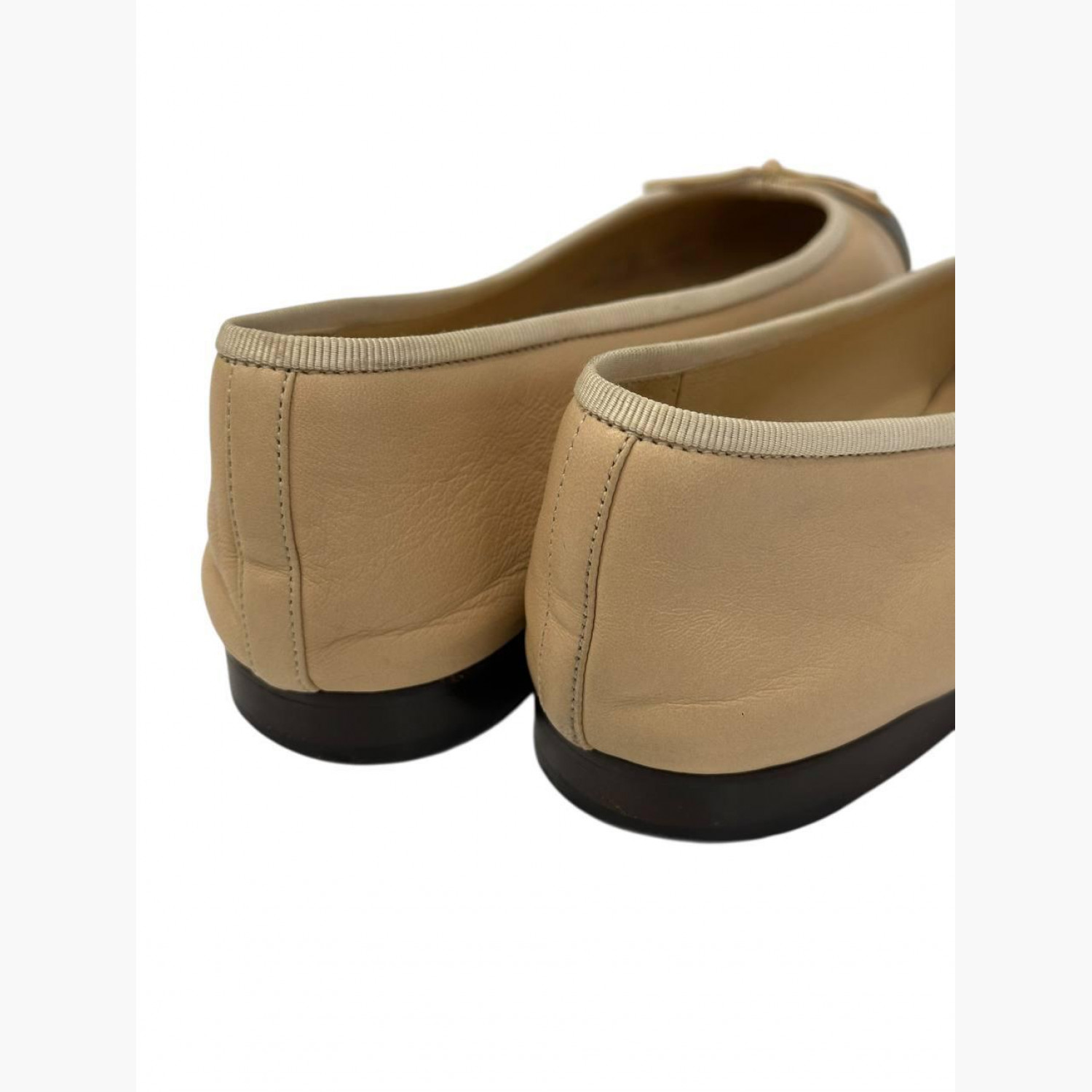Бежевые кожаные балетки с черным носком. В хорошем состоянии, есть потертости и небольшие царапины.