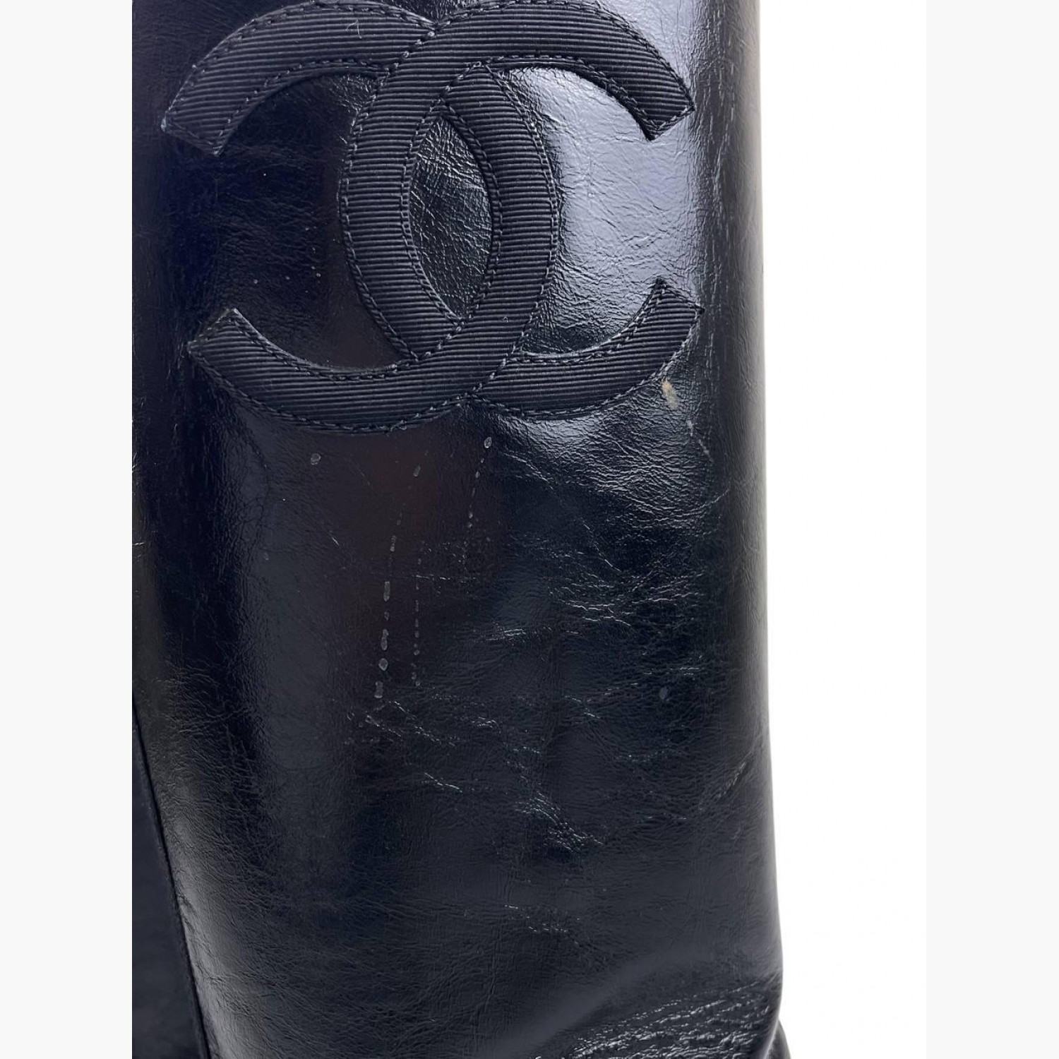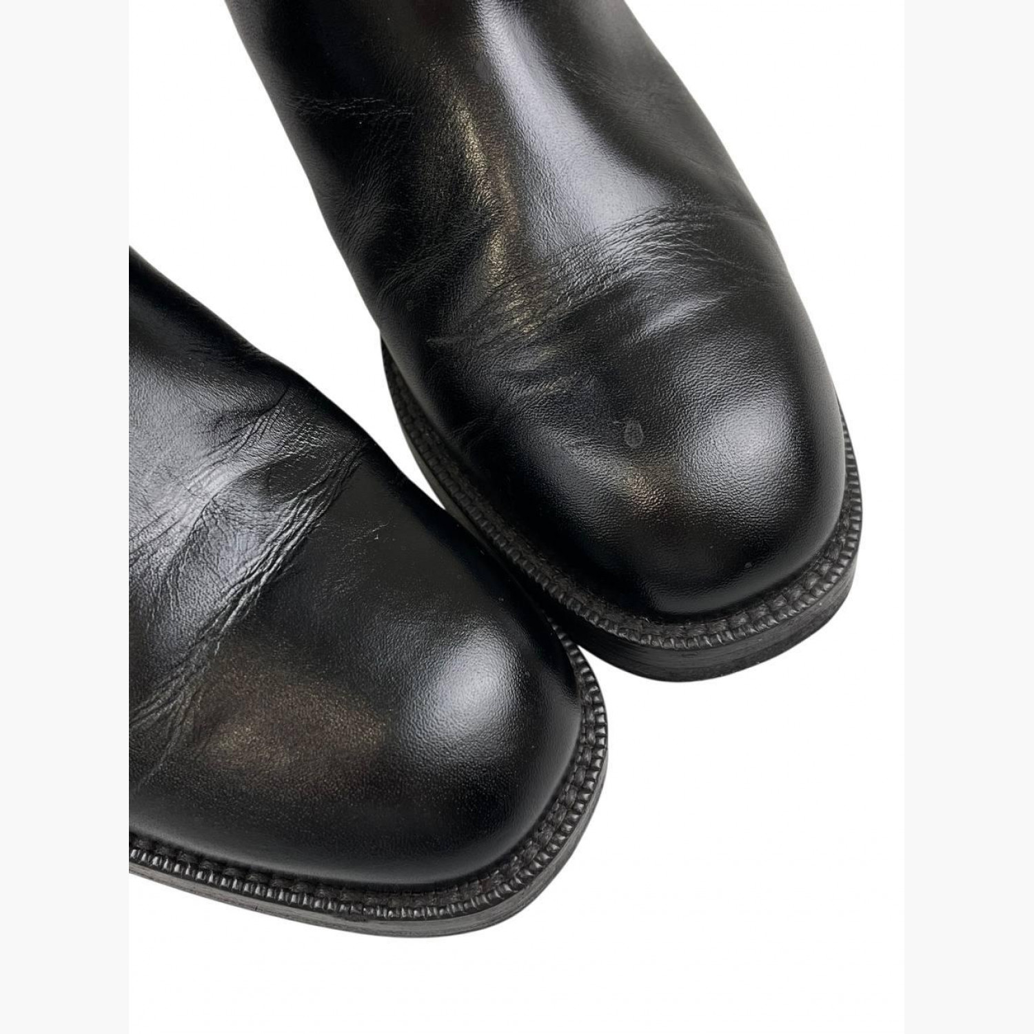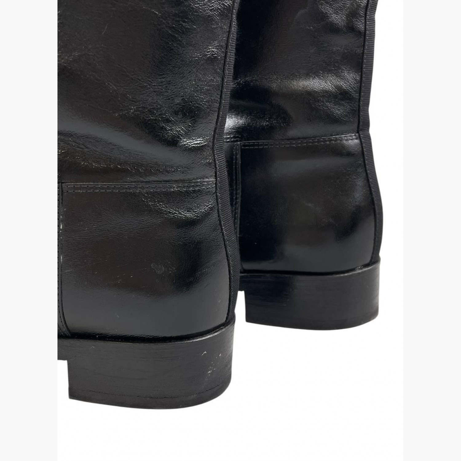 Высокие жокейские сапоги чёрного цвета с текстильным логотипом по бокам. В очень хорошем состоянии, имеются незначительные следы носки.