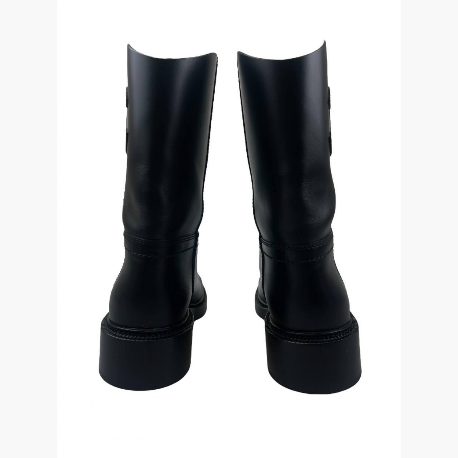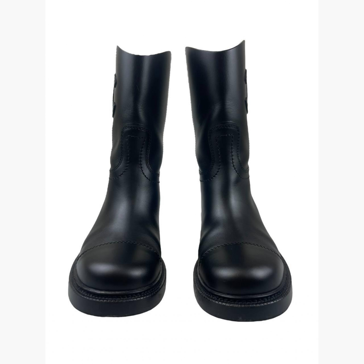 Чёрные кожаные ботинки с логотипом по бокам. В отличном состоянии, есть едва заметные потертости.