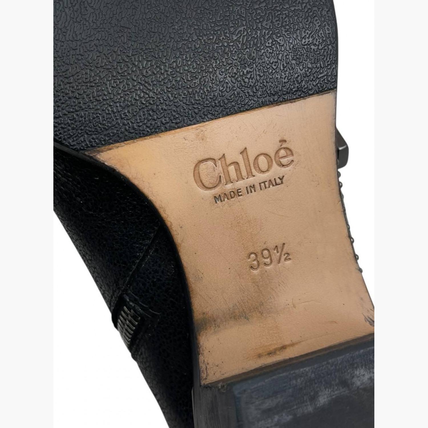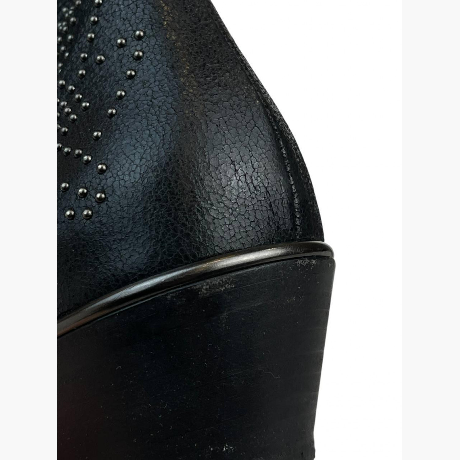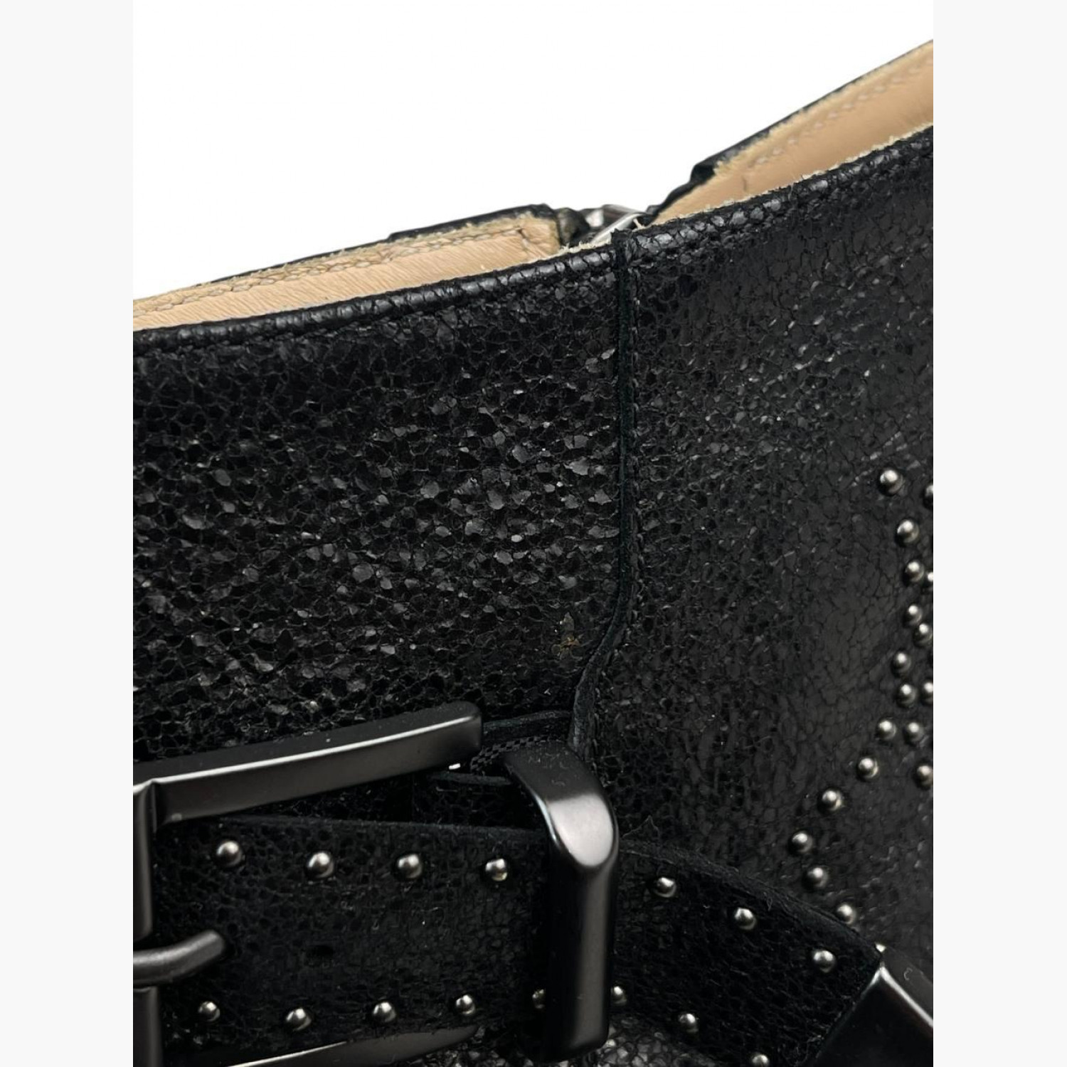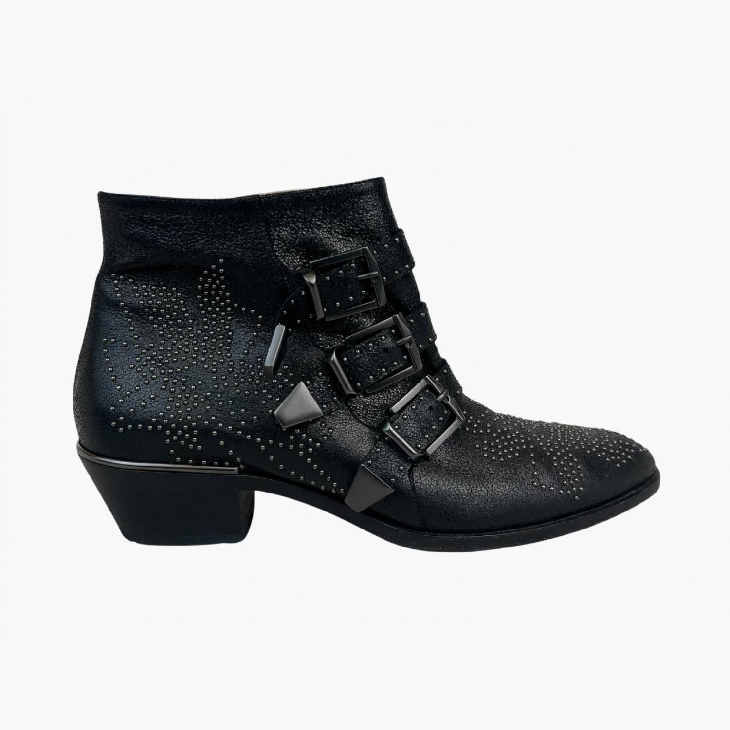 Чёрные кожаные ботильоны с металлической фурнитурой и декором. В очень хорошем состоянии, есть следы носки.