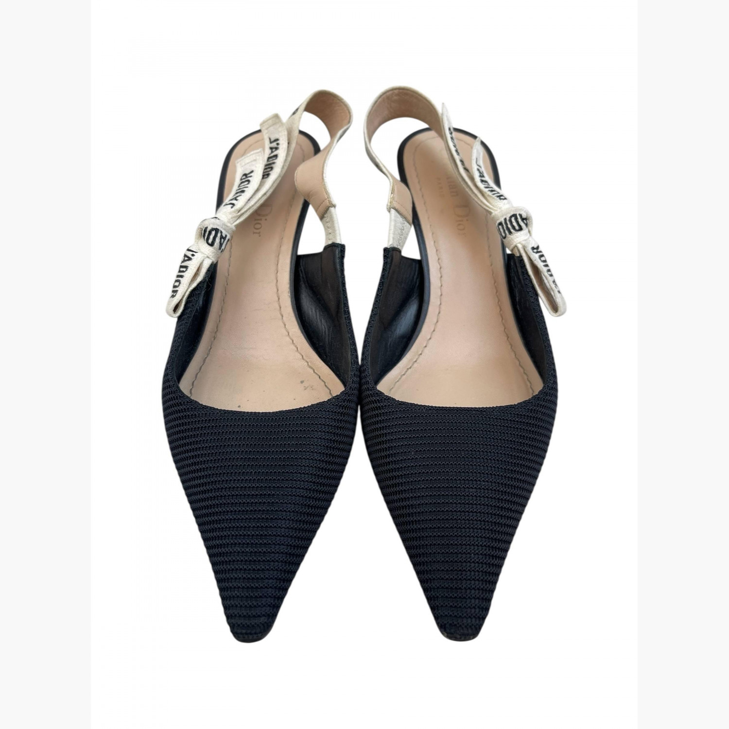 Чёрные текстильные слингбэки с бантиком. В хорошем состоянии, есть следы носки.