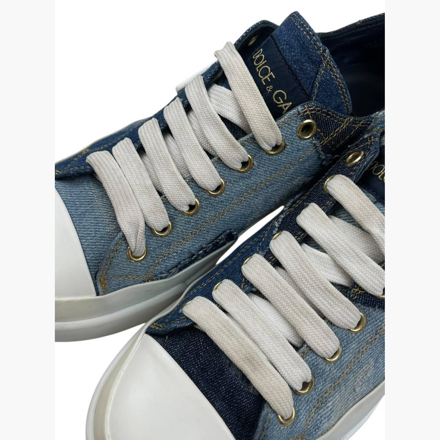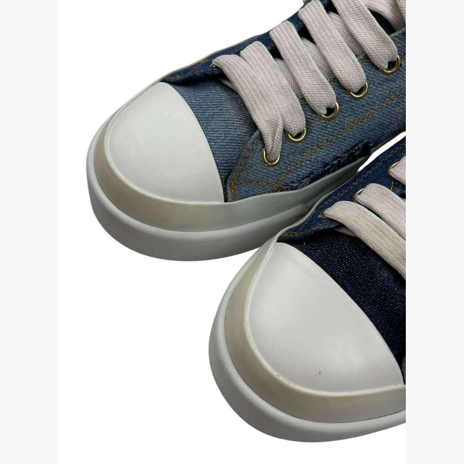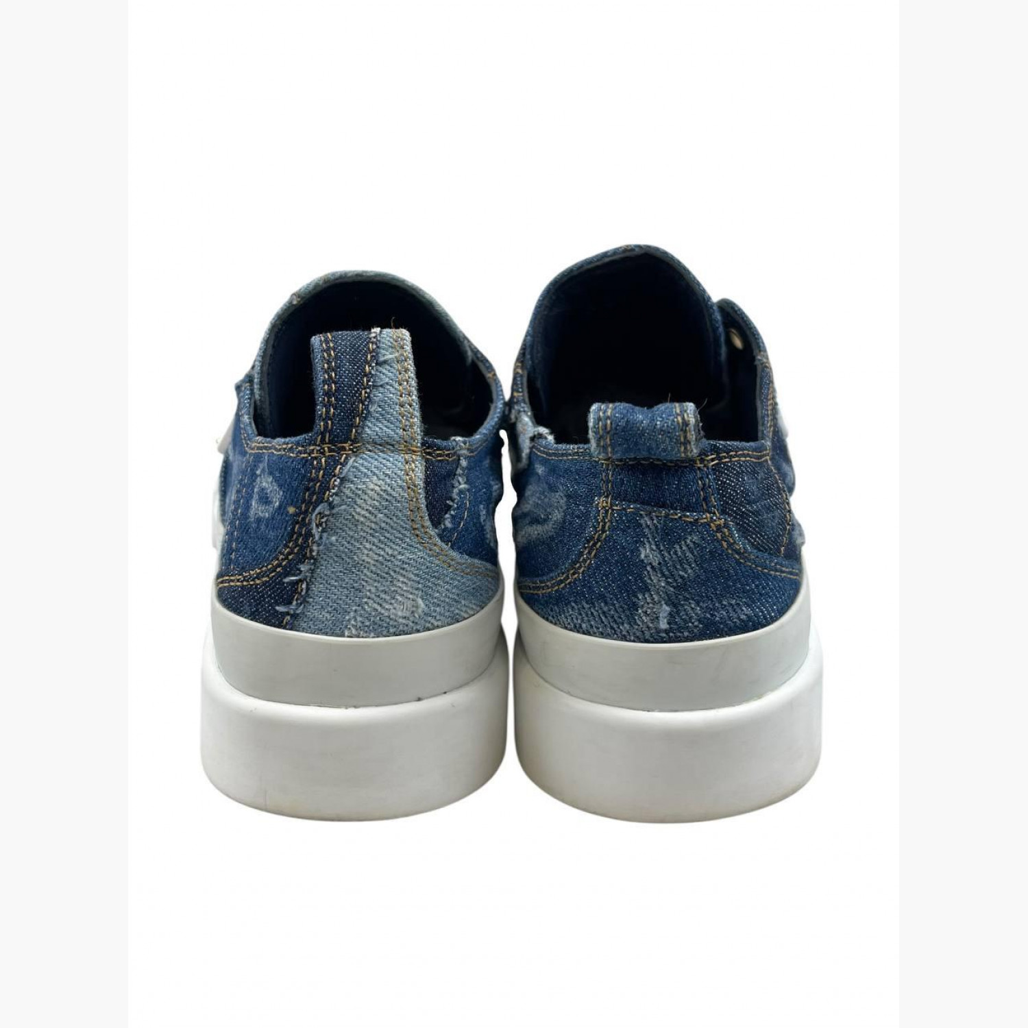 Голубые джинсовые кеды в лого. В хорошем состоянии, есть пятна.
