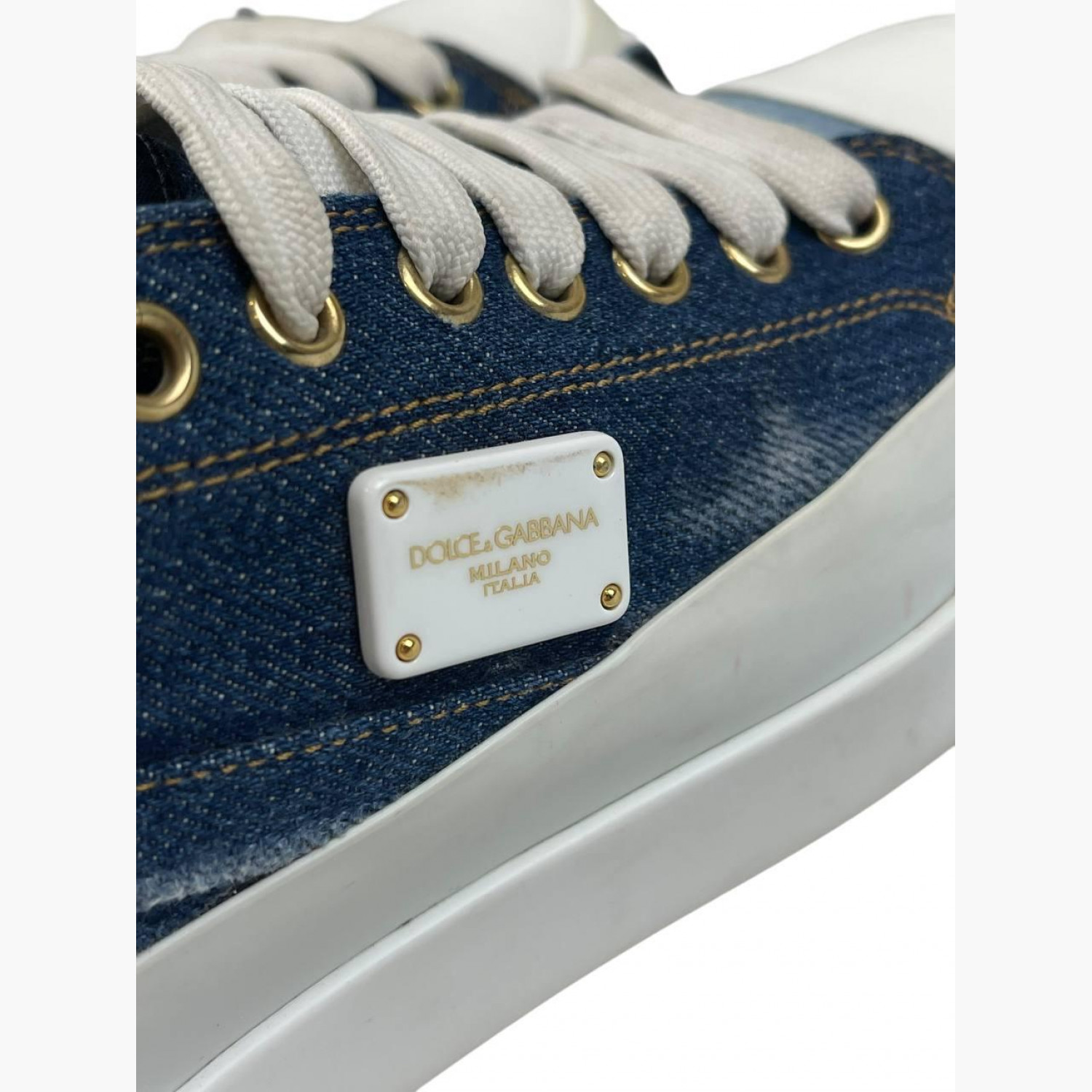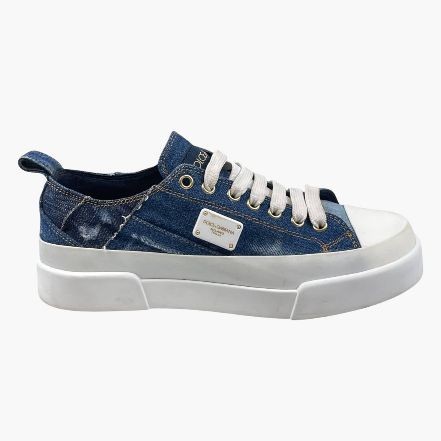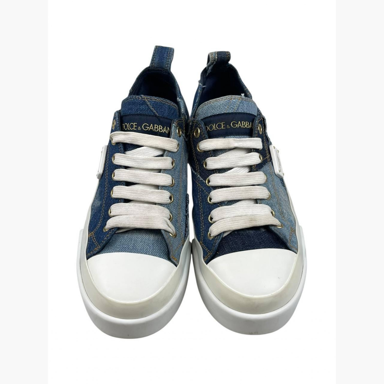 Голубые джинсовые кеды в лого. В хорошем состоянии, есть пятна.