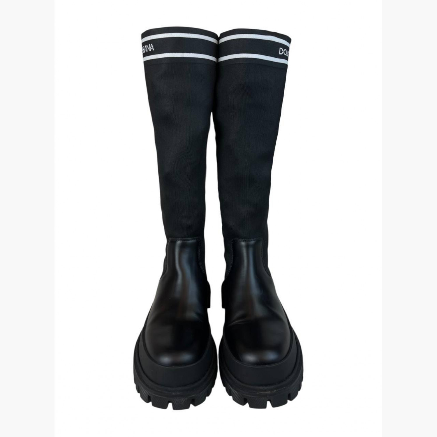 Черные текстильные сапоги с массивной подошвой. В отличном состоянии, есть незначительные следы носки.