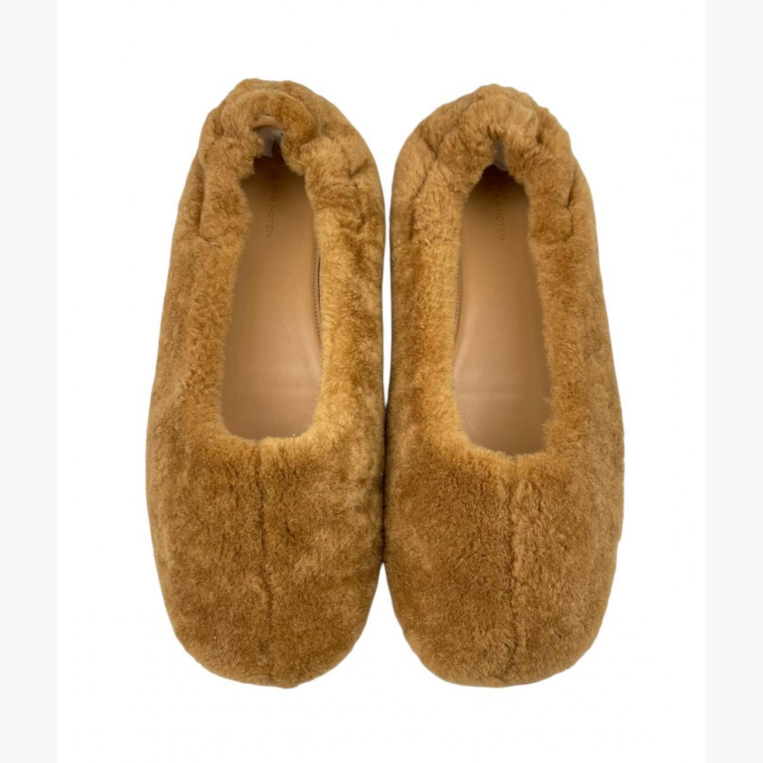 Плюшевые балетки горчичного цвета. В отличном состоянии, без дефектов.