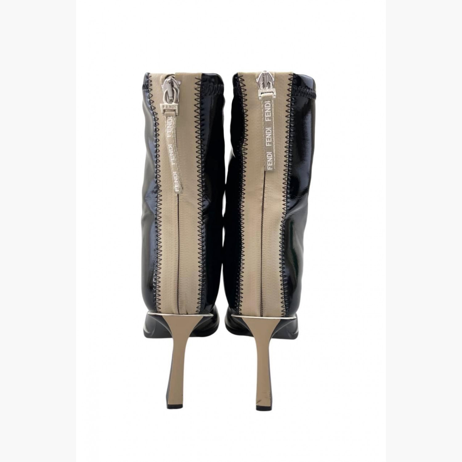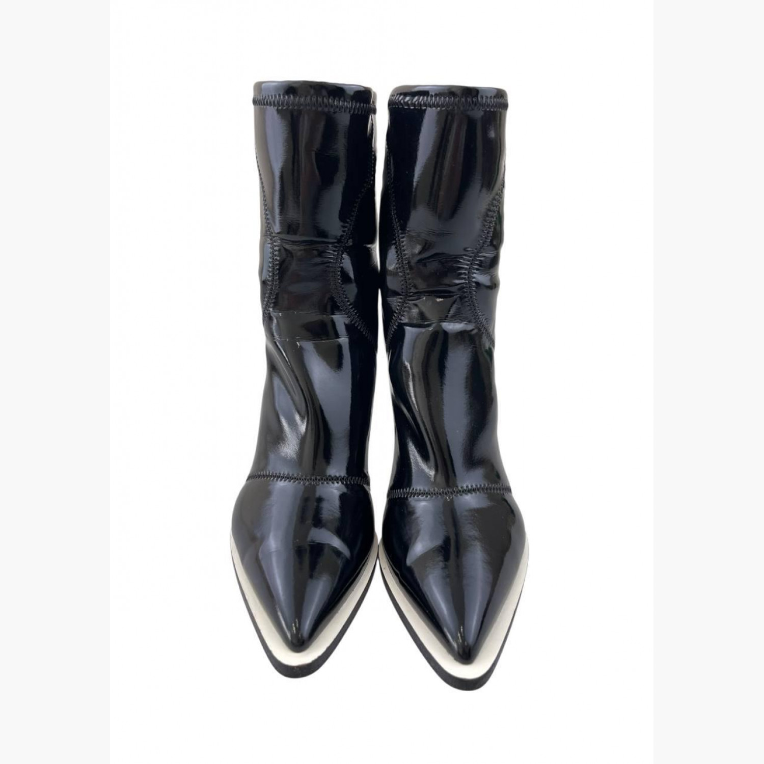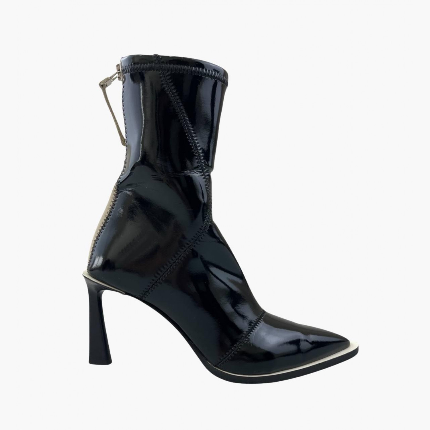 Черные ботильоны на молнии, выполнены из лаковой кожи. В хорошем состоянии, есть следы носки.