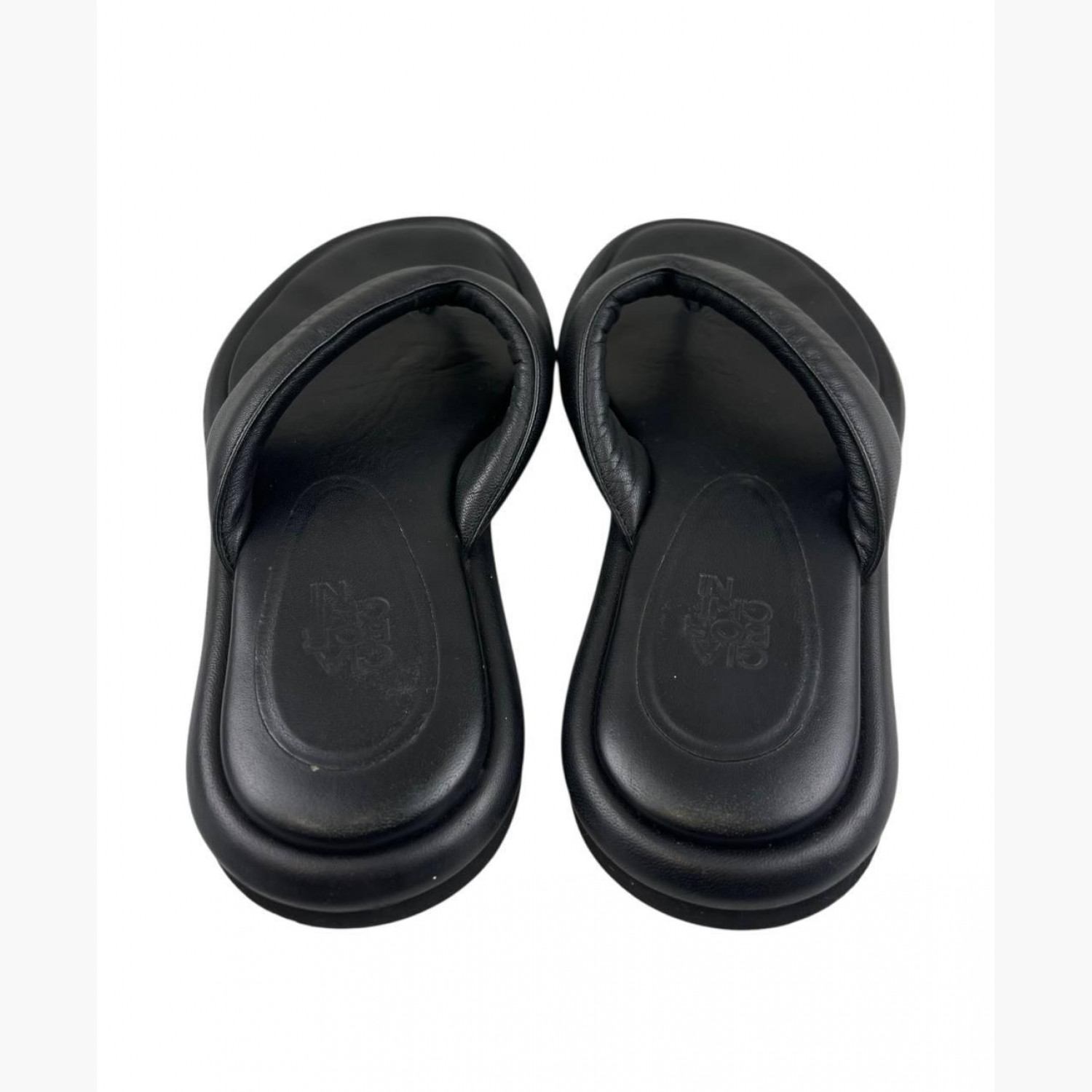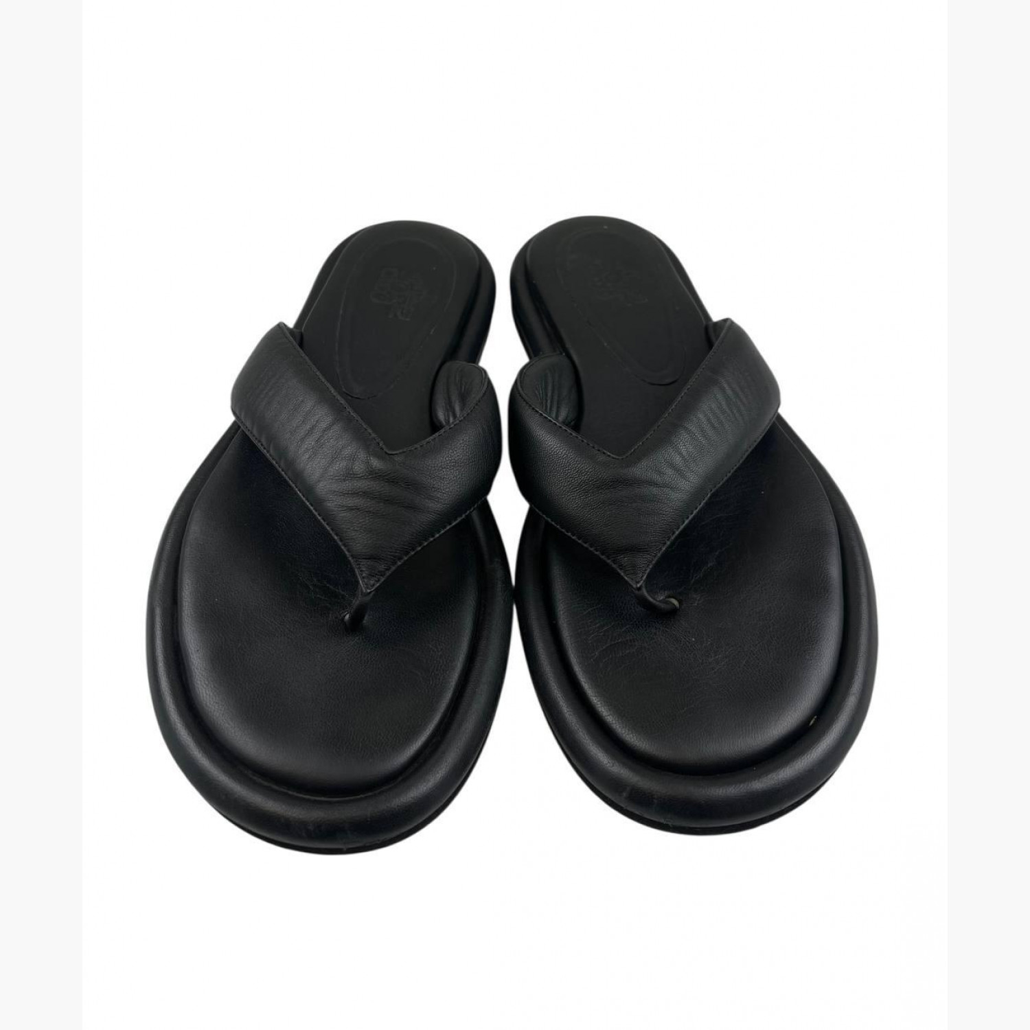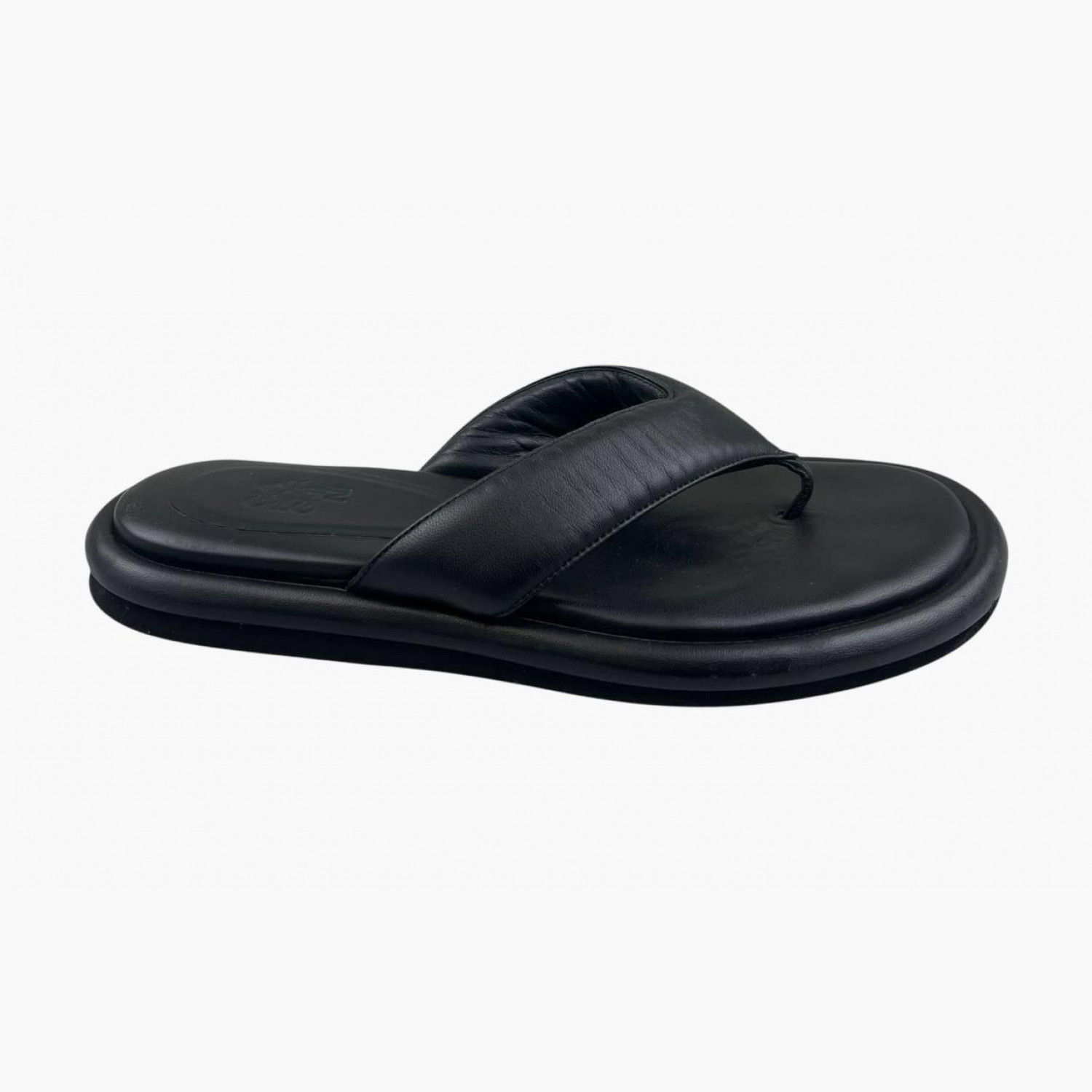 Чёрные кожаные дутые вьетнамки. В хорошем состоянии, есть следы носки.