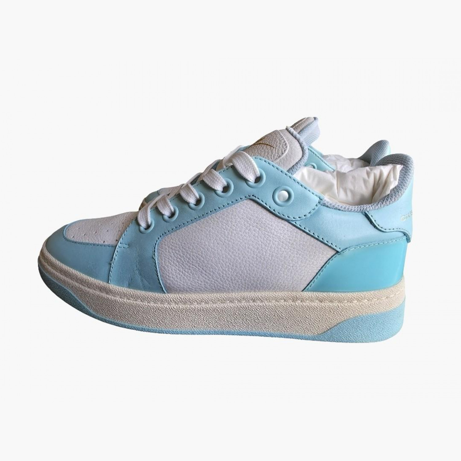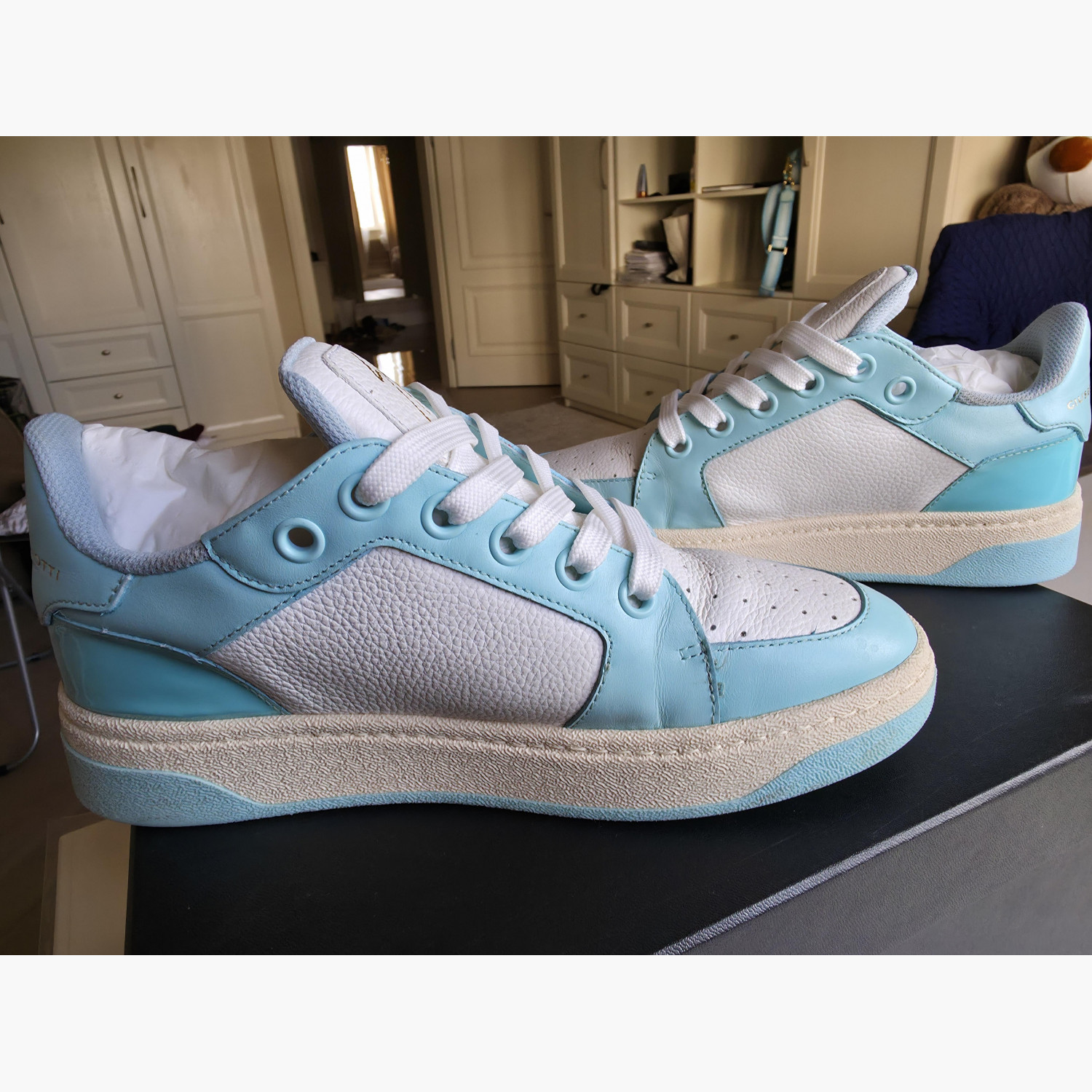 Кожаные кроссовки с лакированными вставками в отличном состоянии. Коробка, чек, пыльник в наличии.