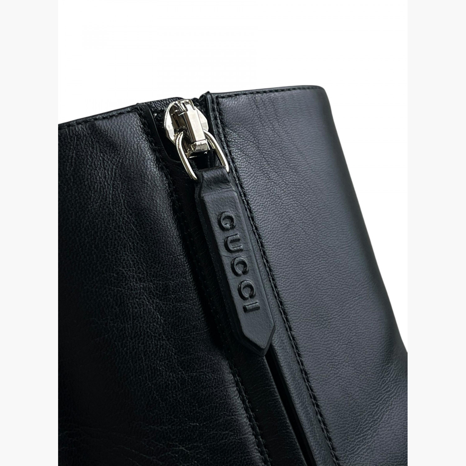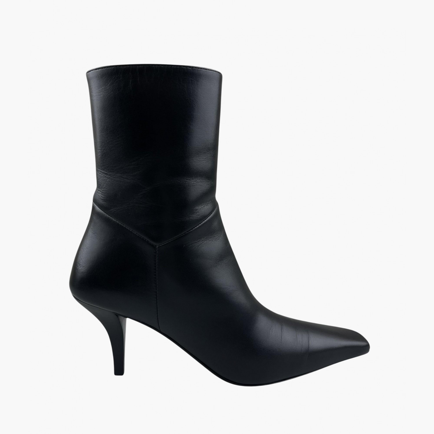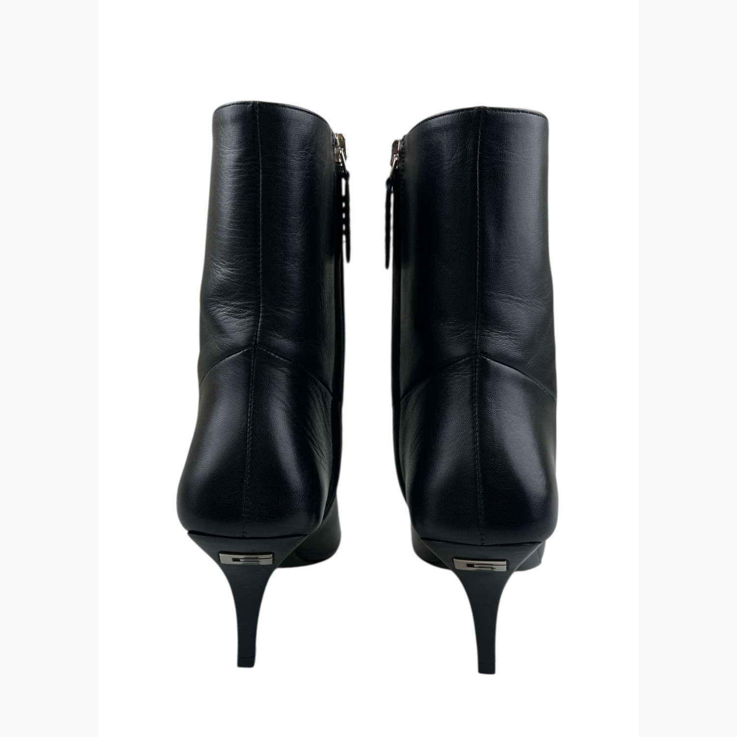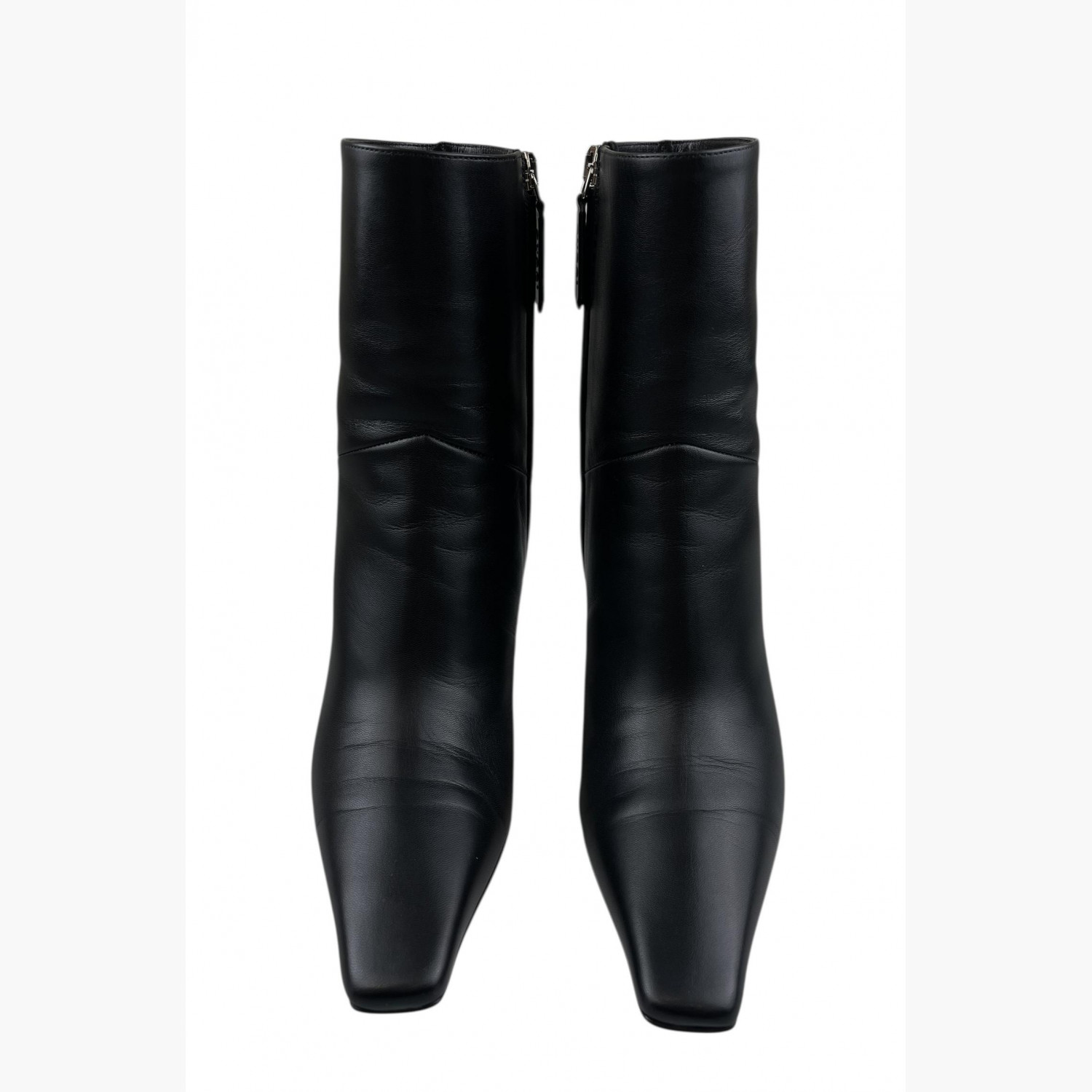 Чёрные кожаные ботильоны на молнии с вытянутым квадратным носком. В отличном состоянии, без значительных следов носки.