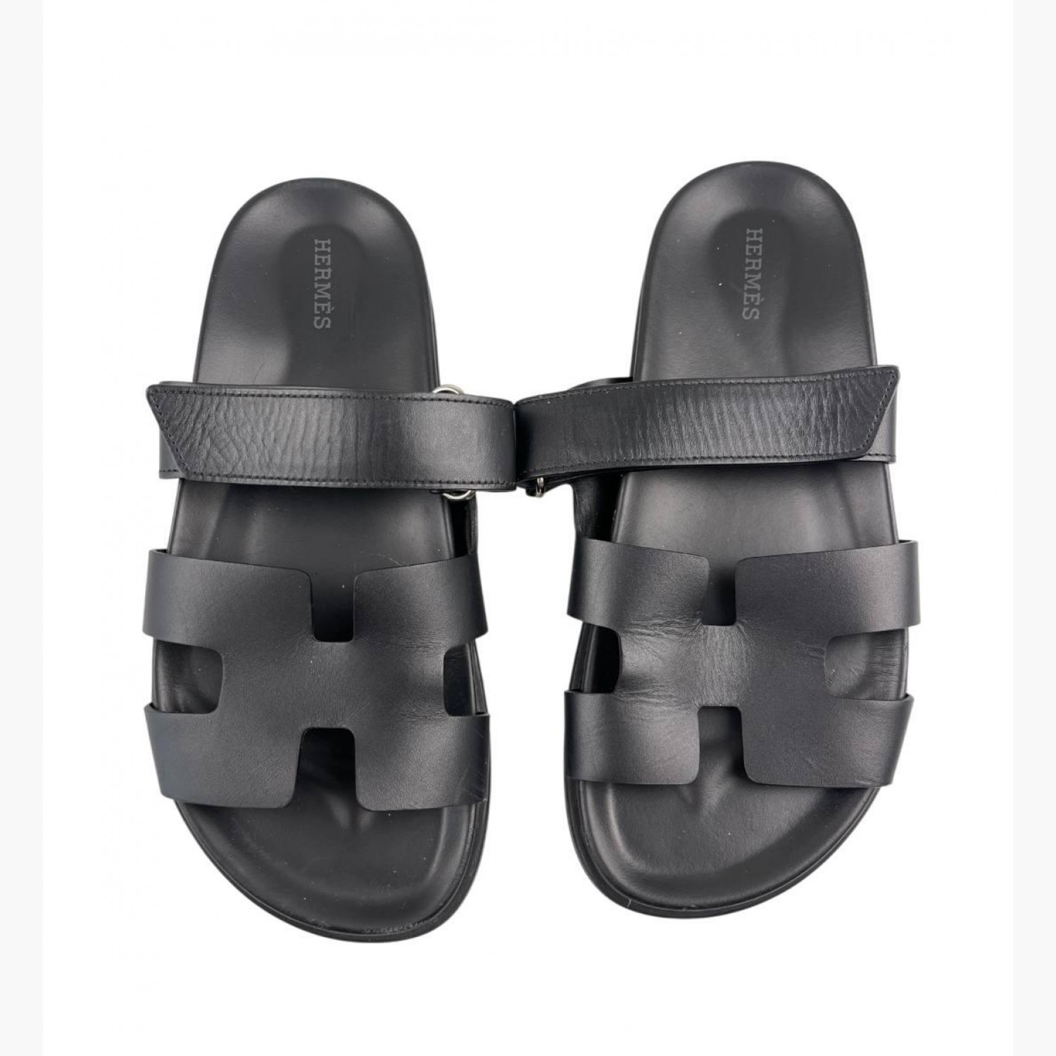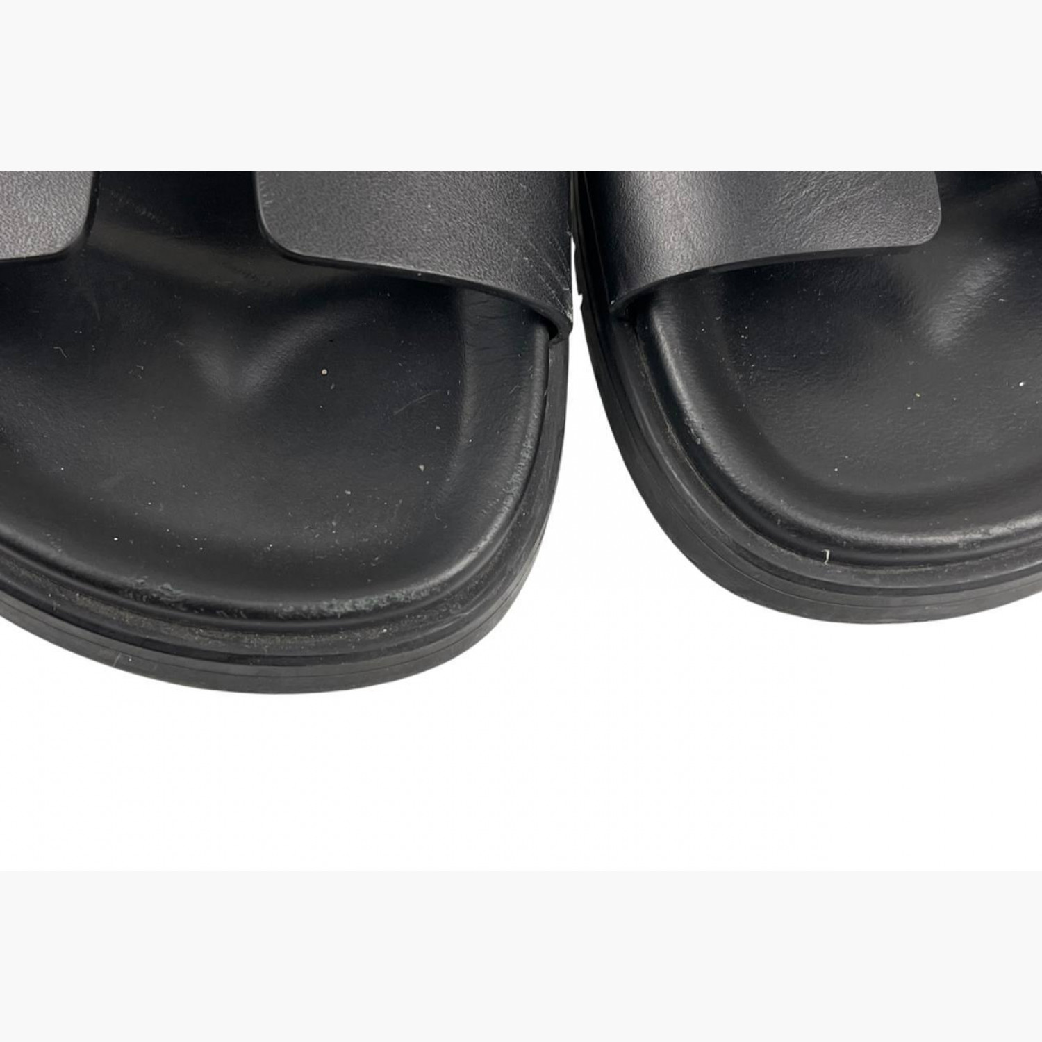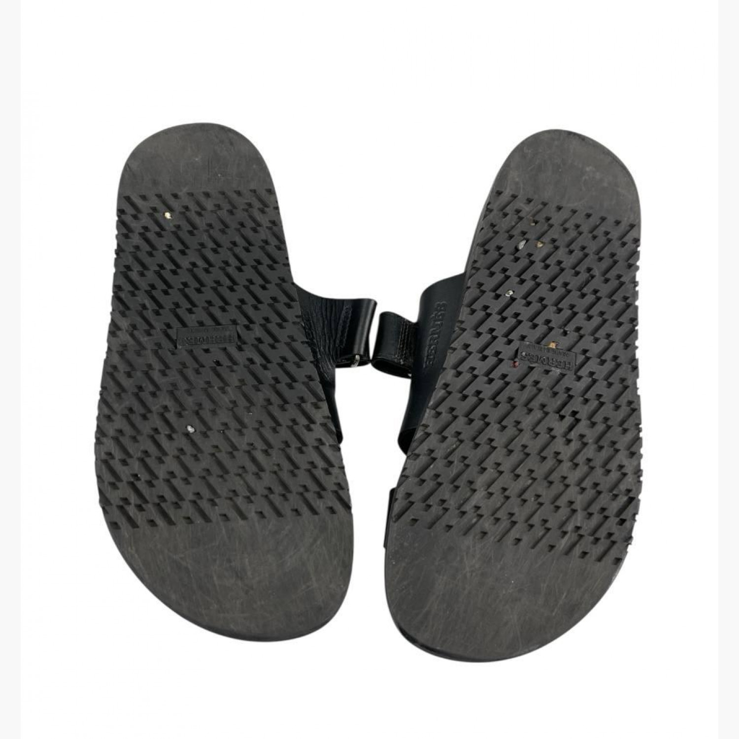 Черные кожаные шлепанцы на липучке. В хорошем состоянии, есть следы носки.