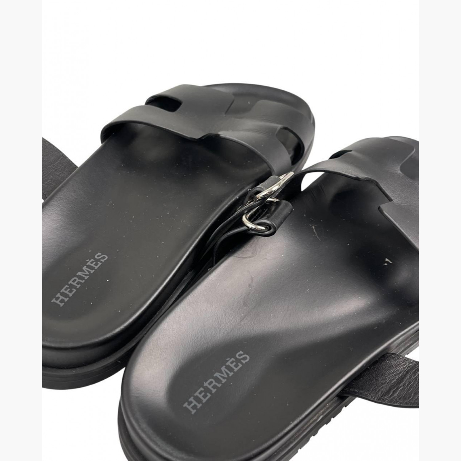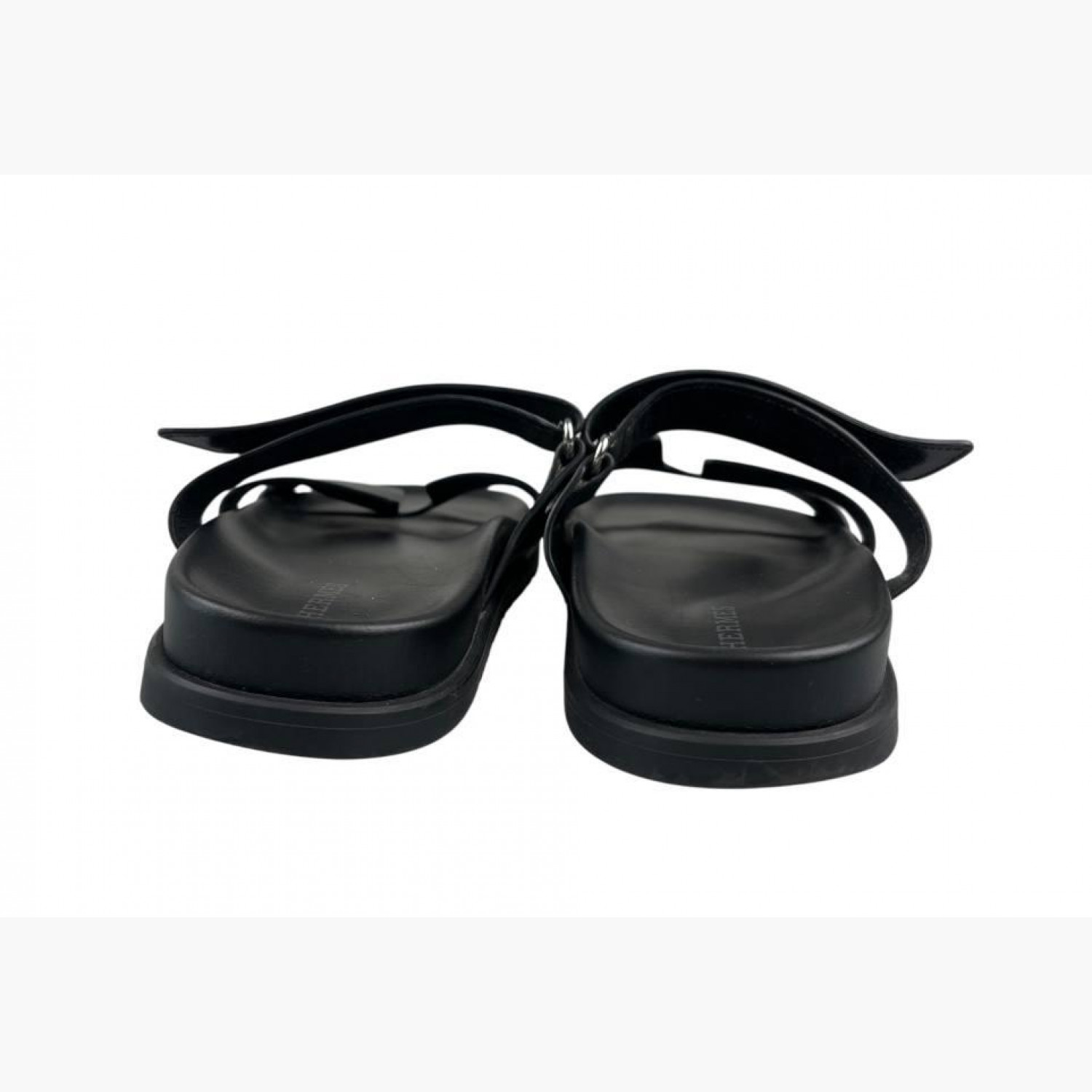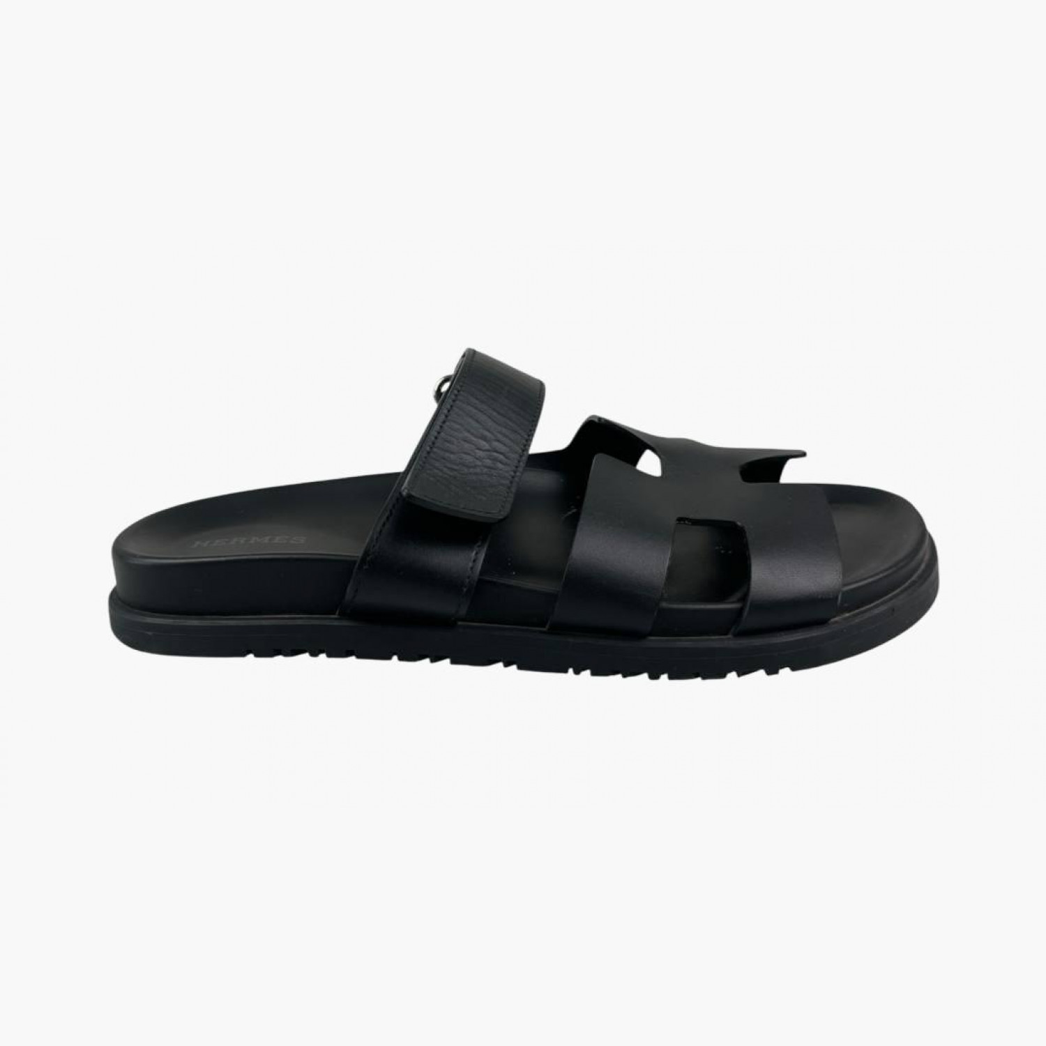 Черные кожаные шлепанцы на липучке. В хорошем состоянии, есть следы носки.