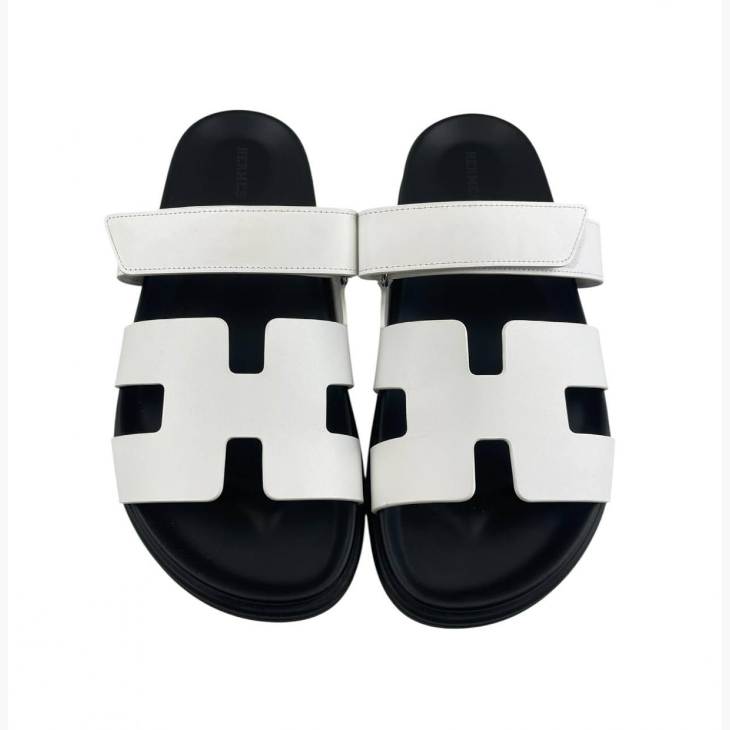 Белые кожаные шлёпанцы. В отличном состоянии, с незначительными следами носки.