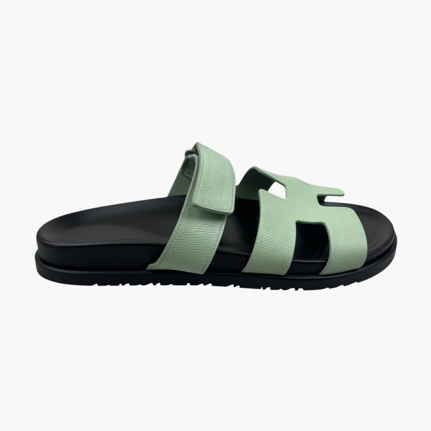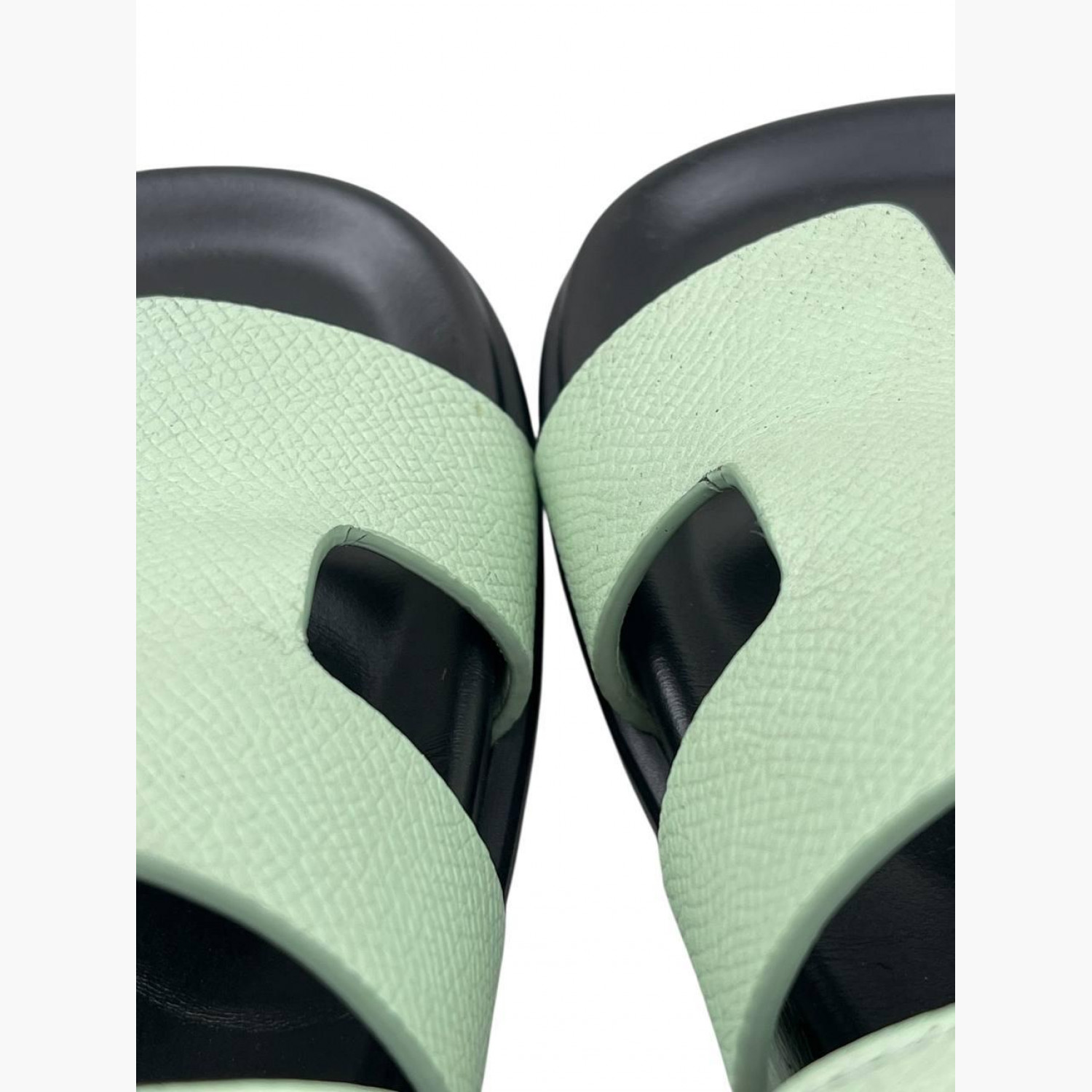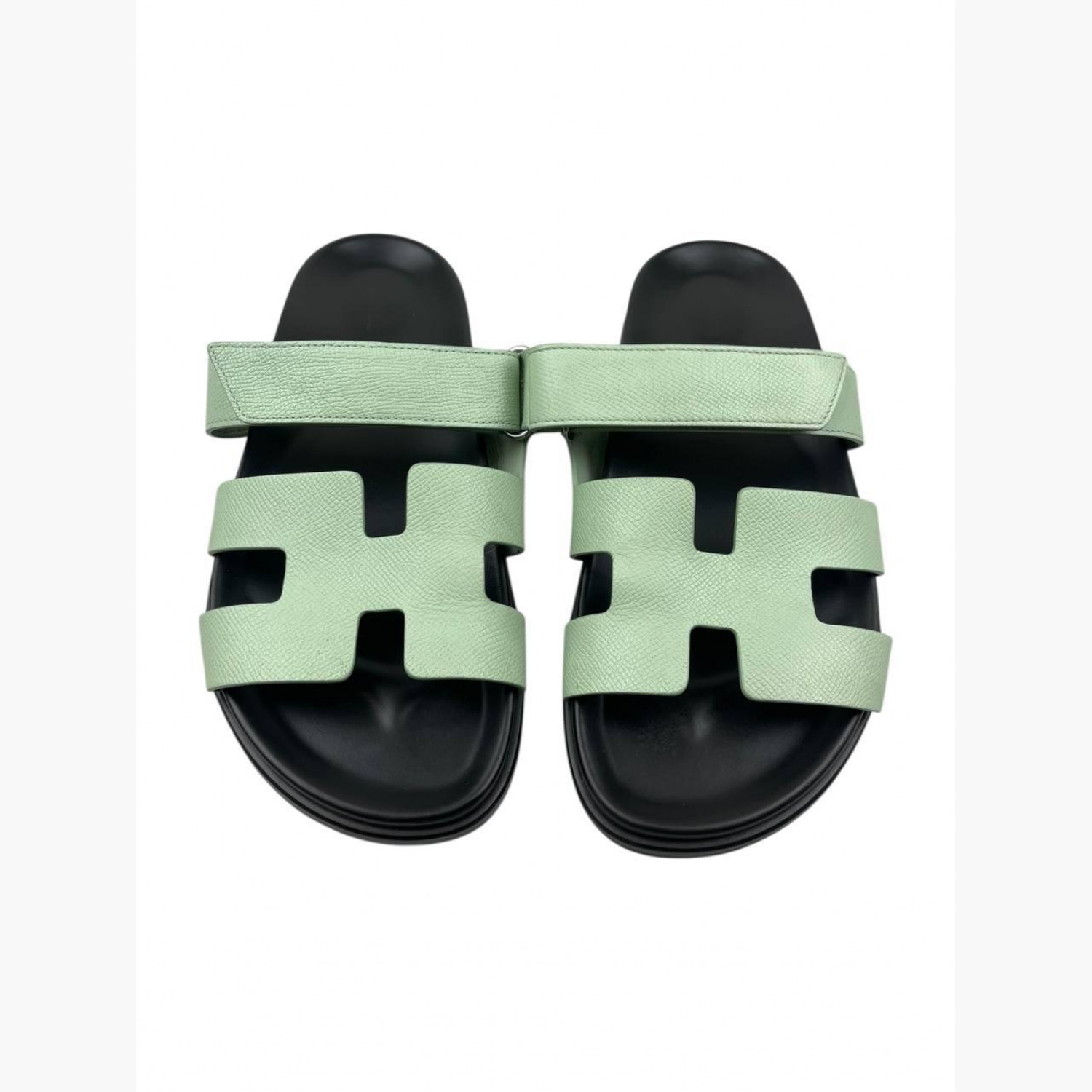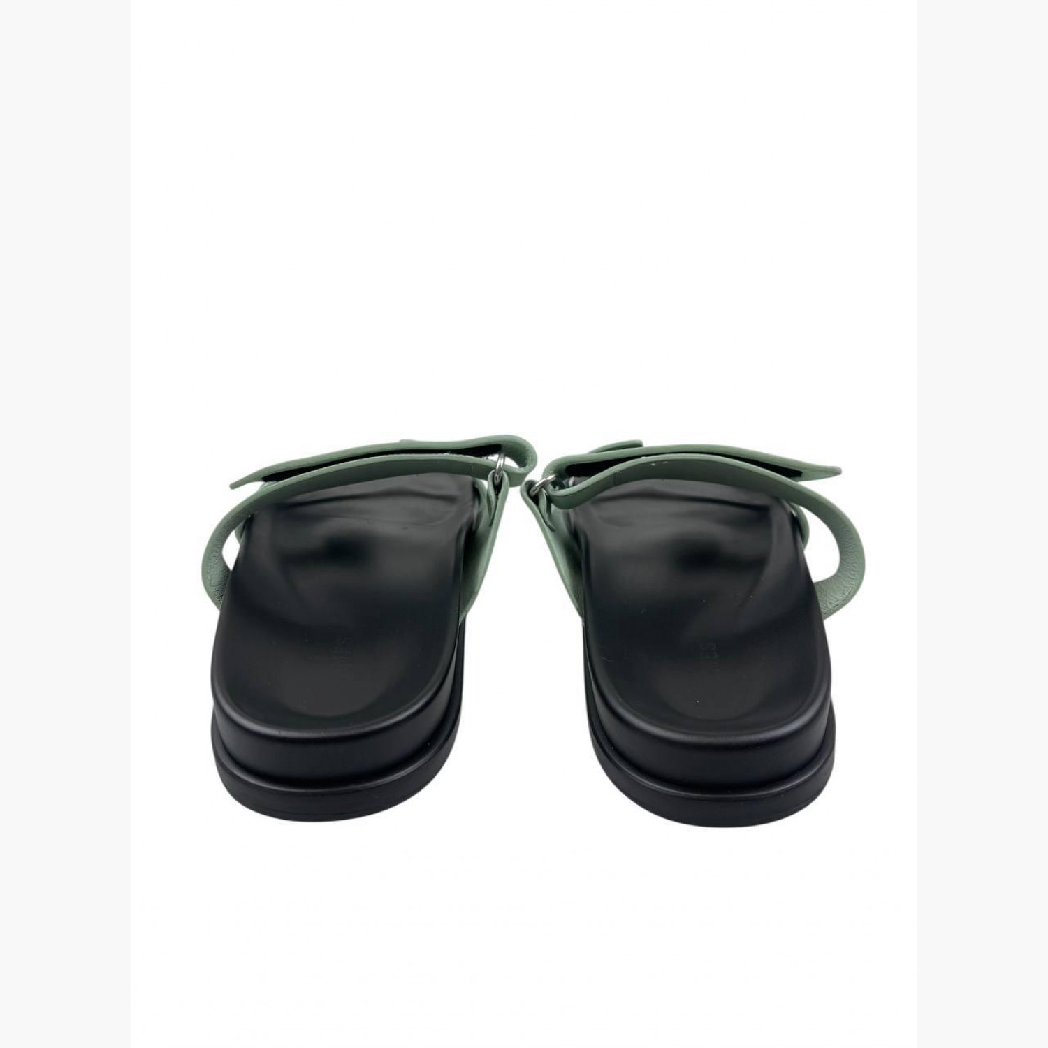 Кожаные шлёпанцы мятного цвета. В хорошем состоянии, есть следы носки.