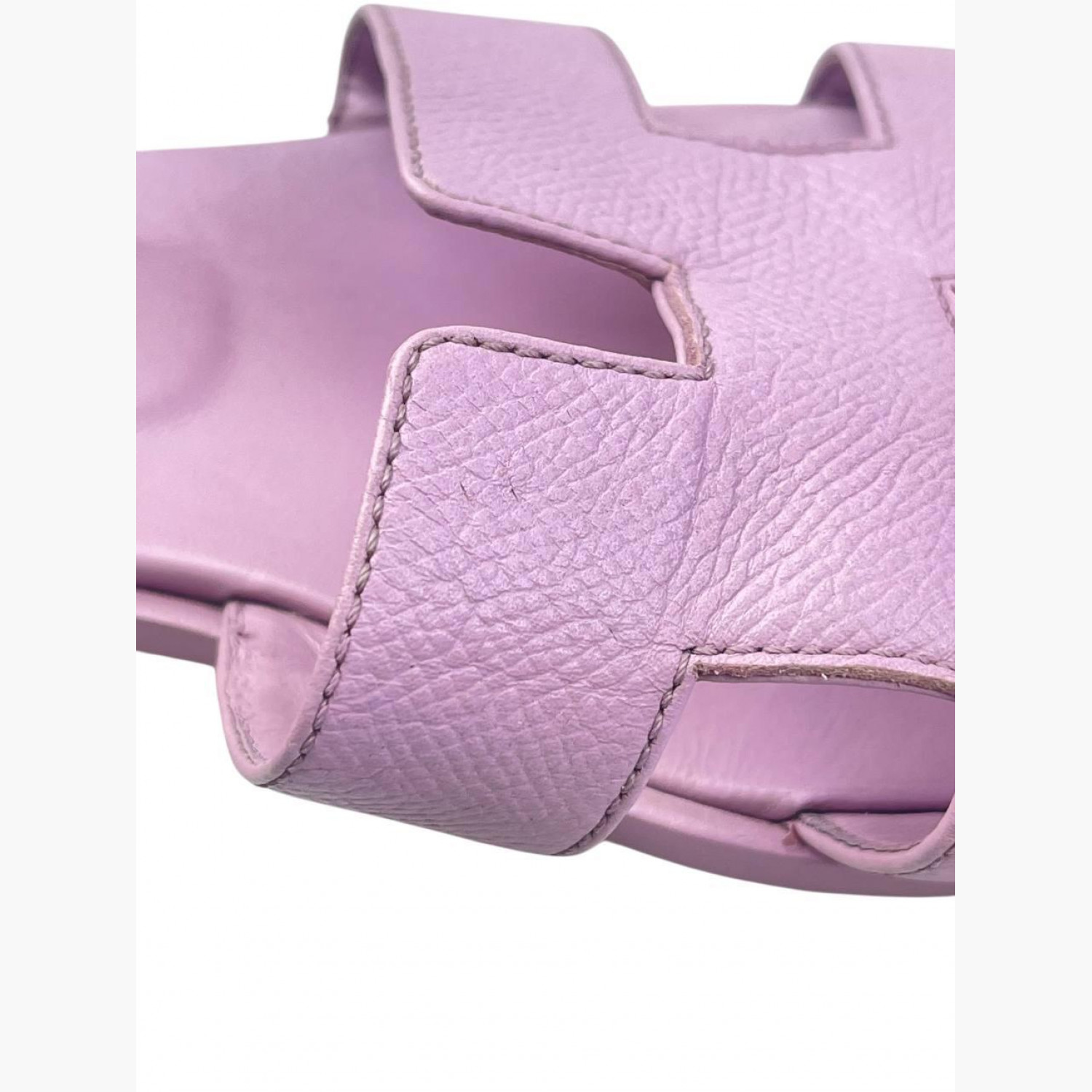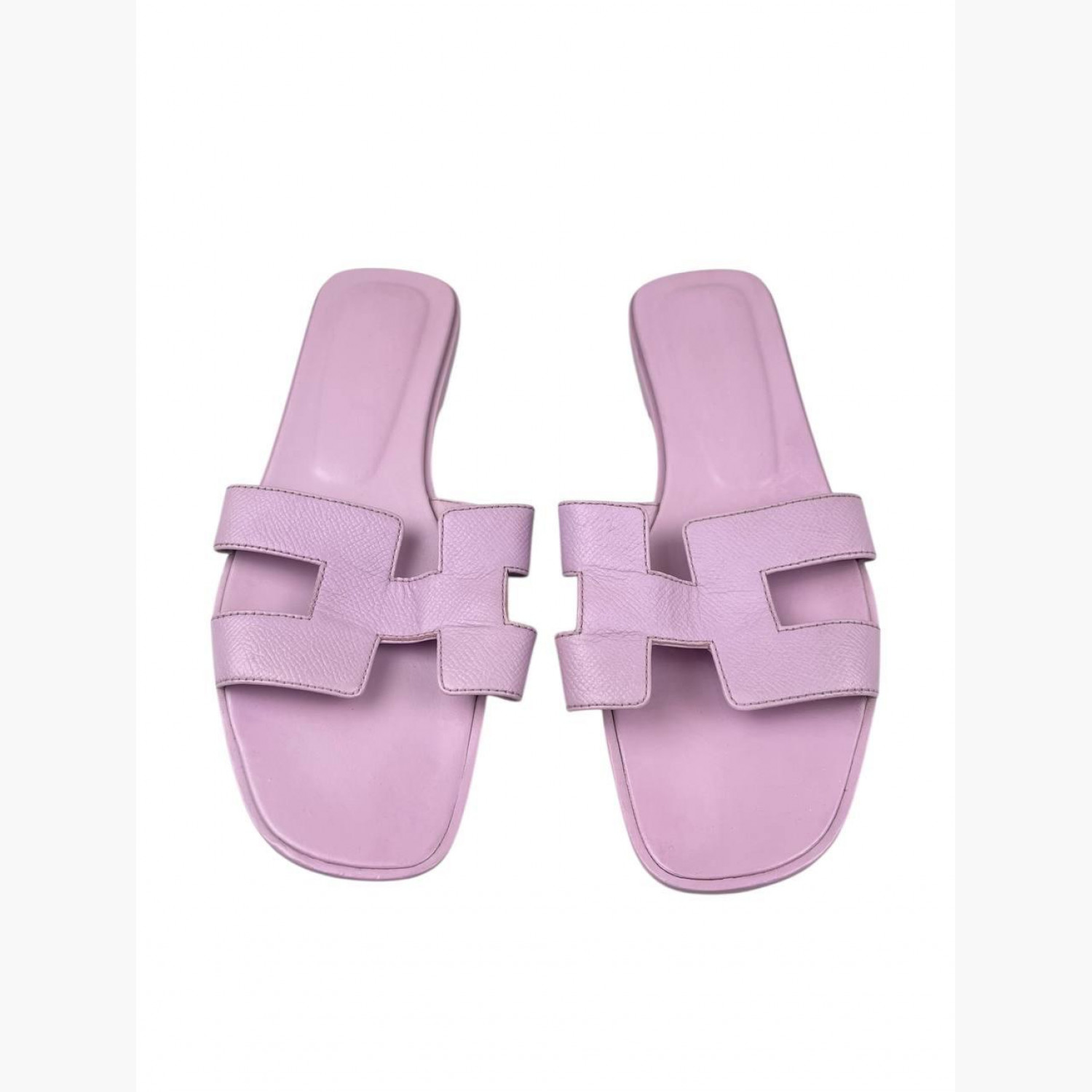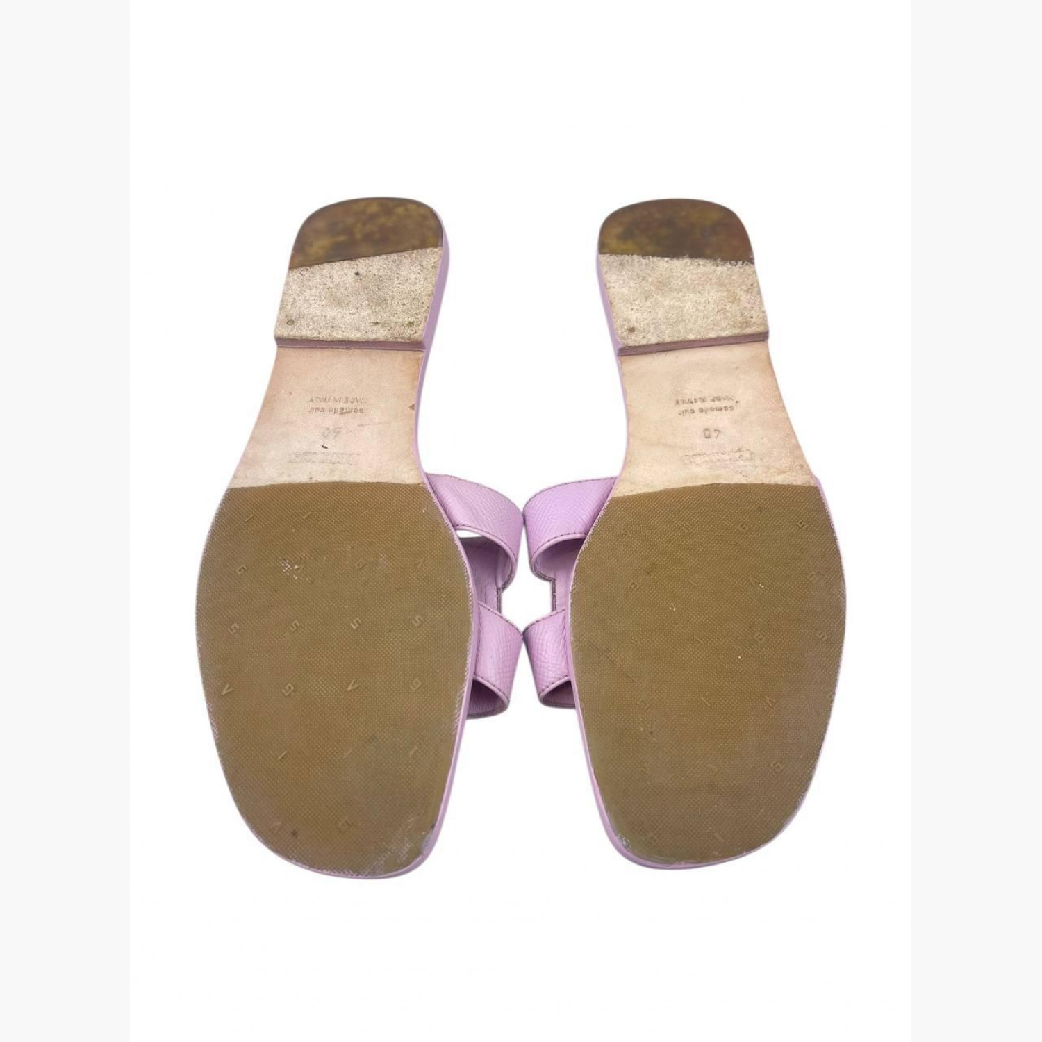 Кожаные шлёпанцы нежно-сиреневого цвета. В хорошем состоянии, есть следы носки.