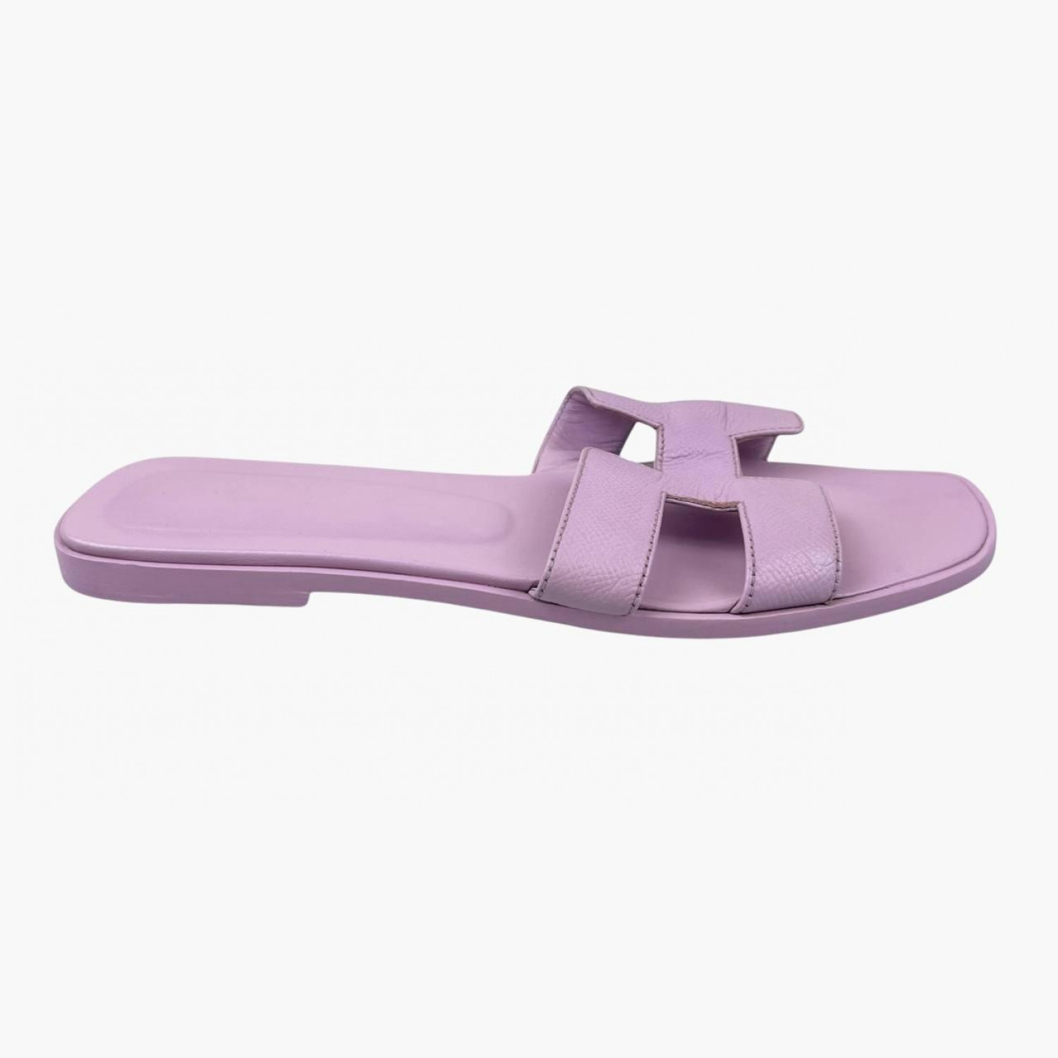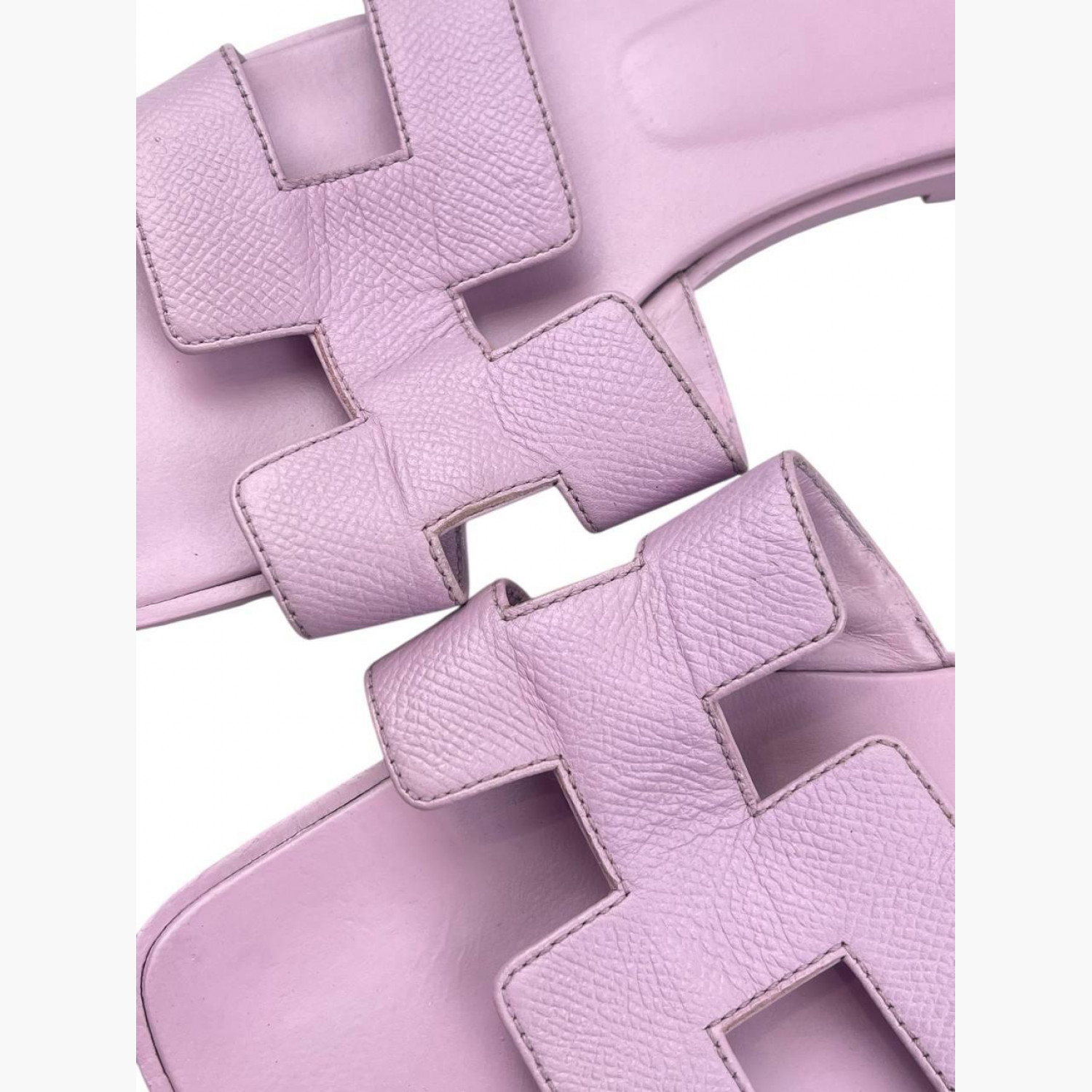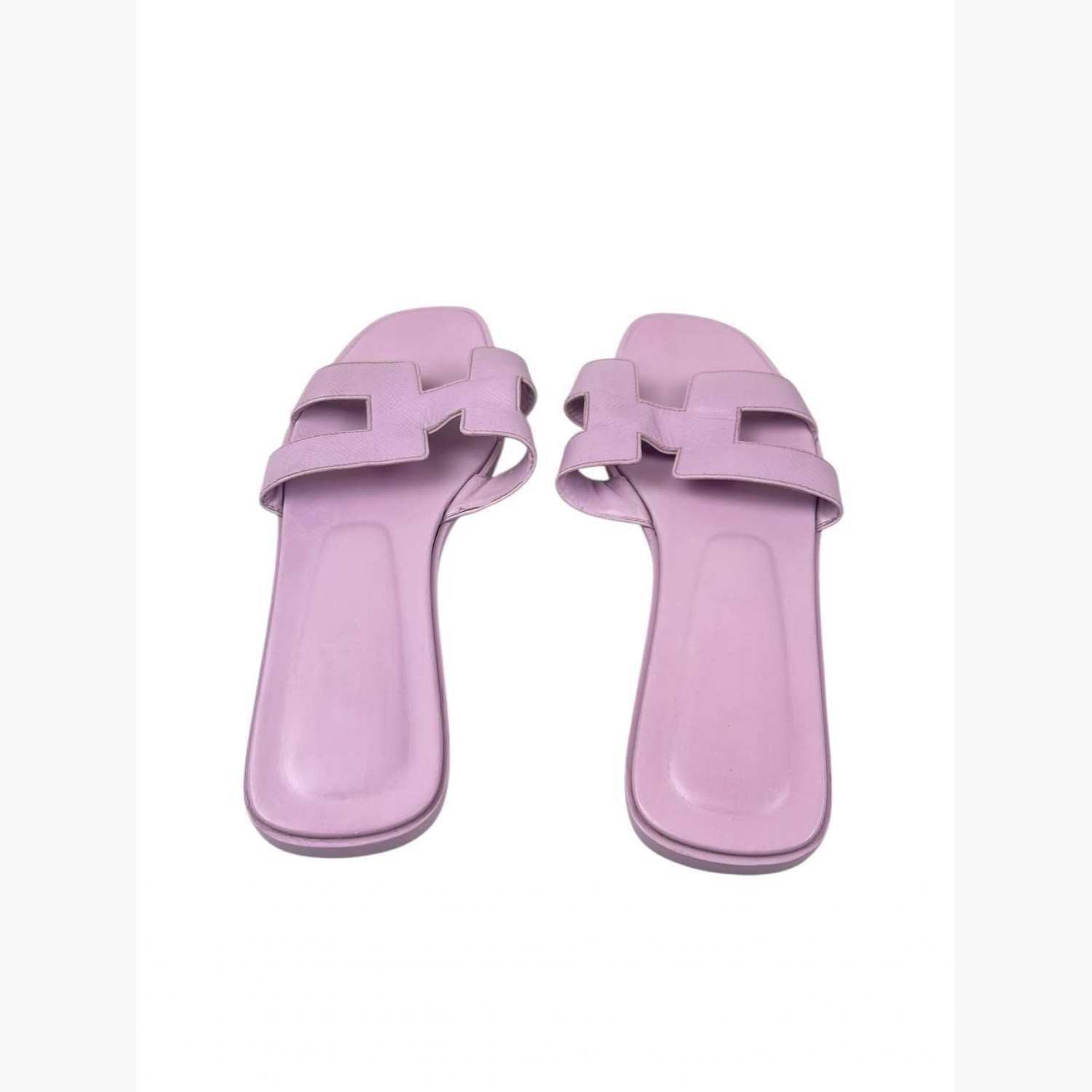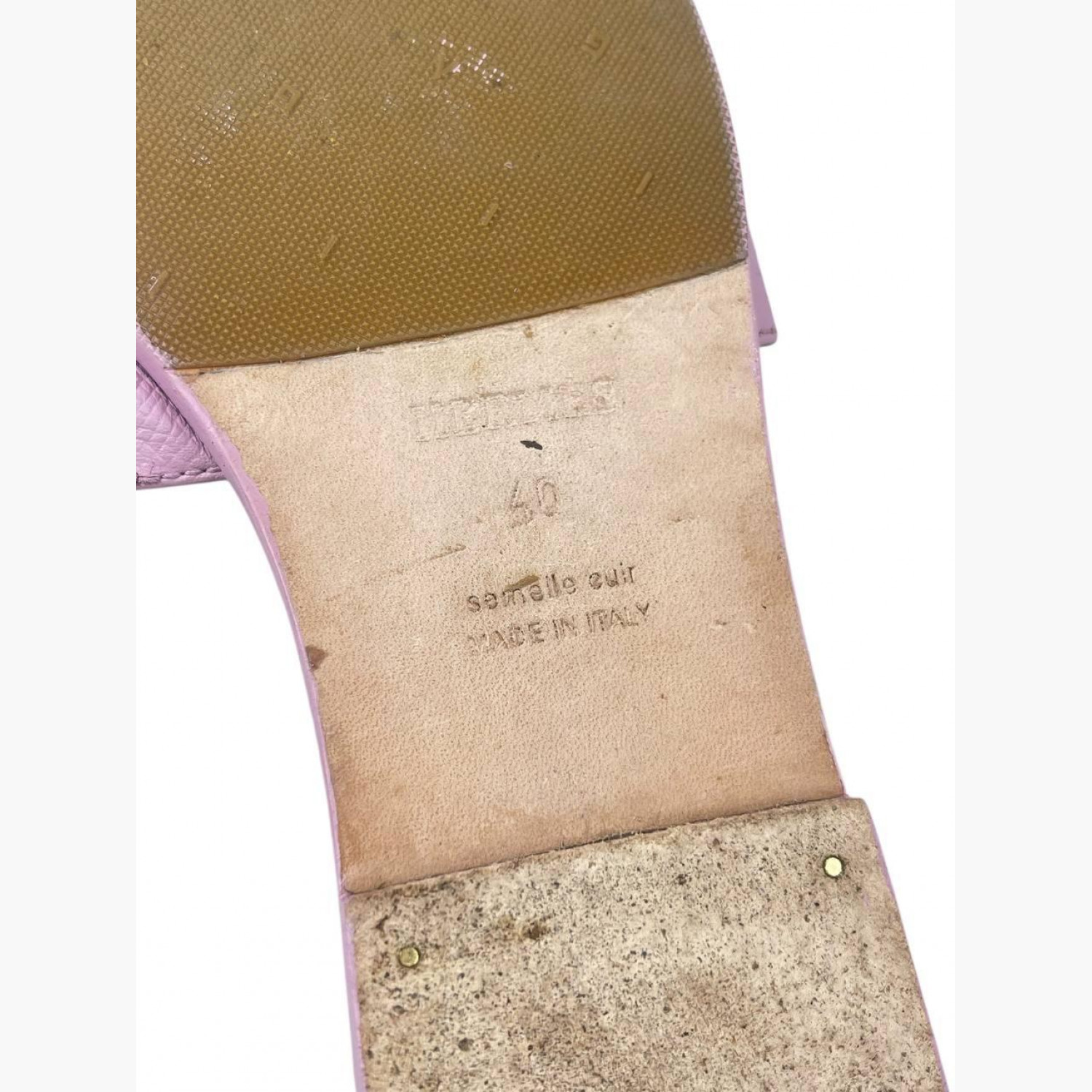 Кожаные шлёпанцы нежно-сиреневого цвета. В хорошем состоянии, есть следы носки.