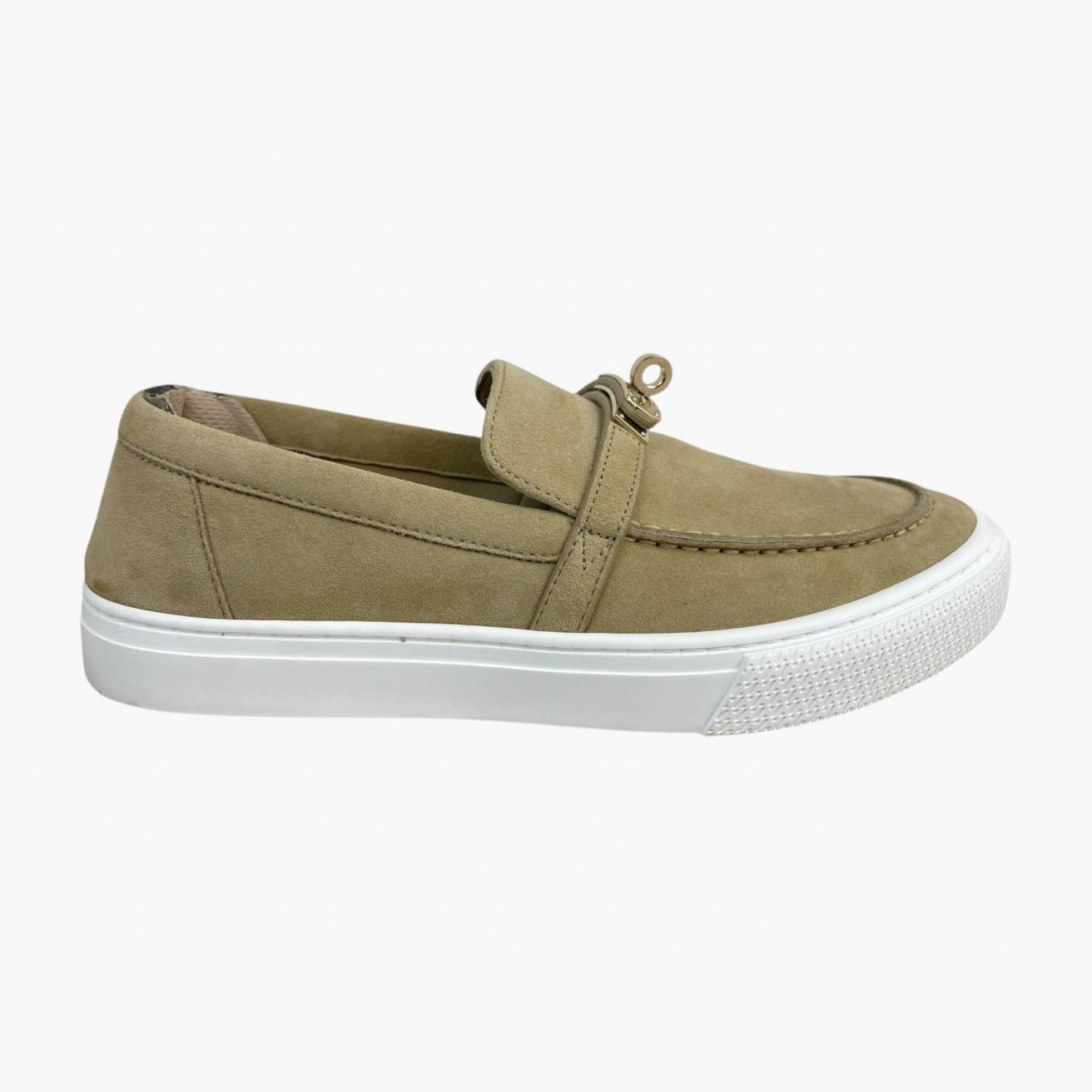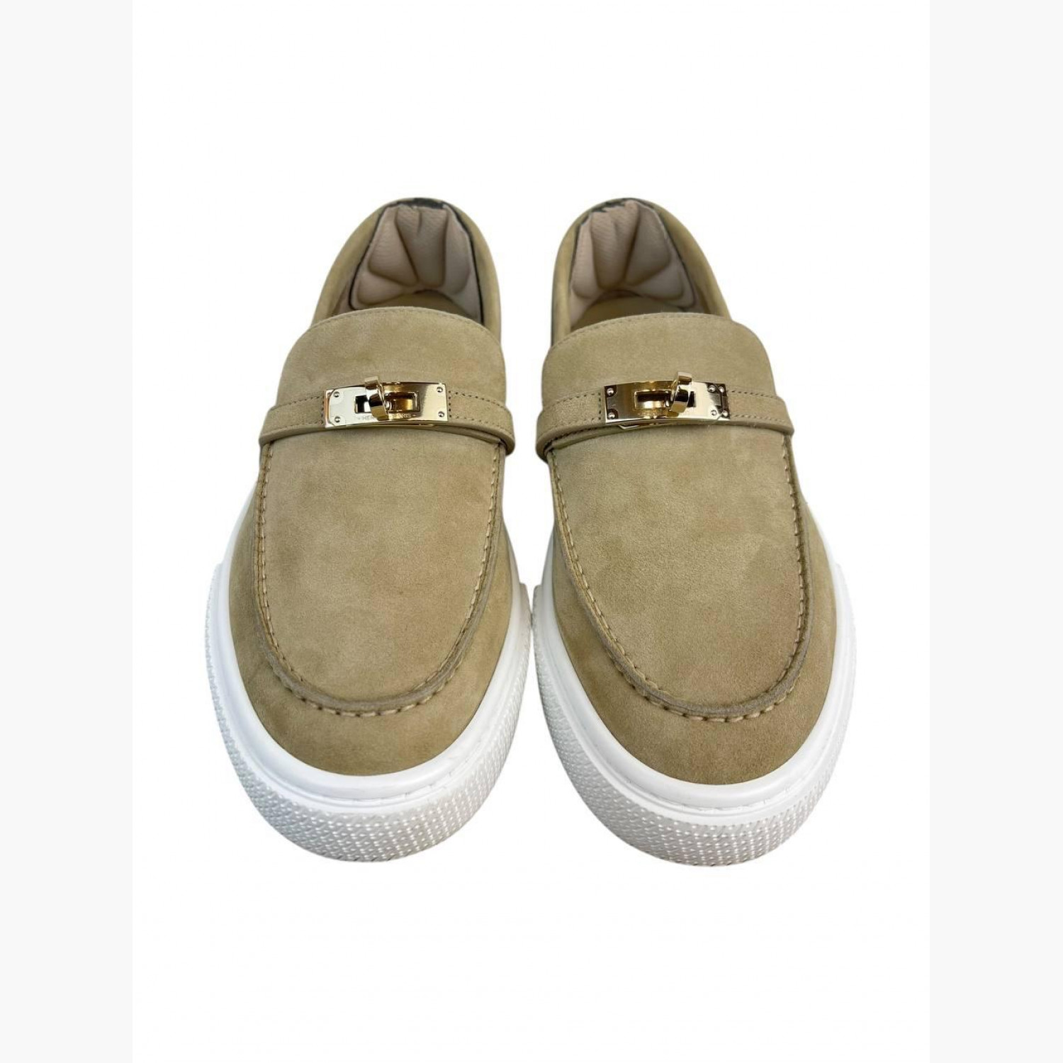 Бежевые замшевые слипоны с замком Kelly. В отличном состоянии, есть незначительные следы носки.