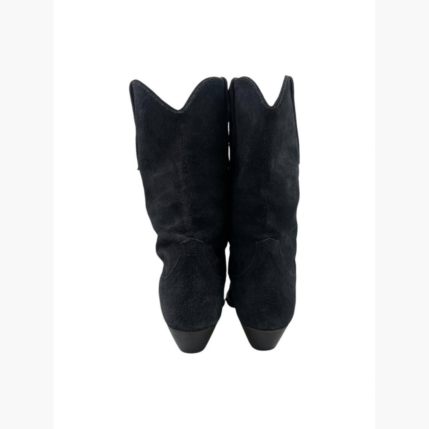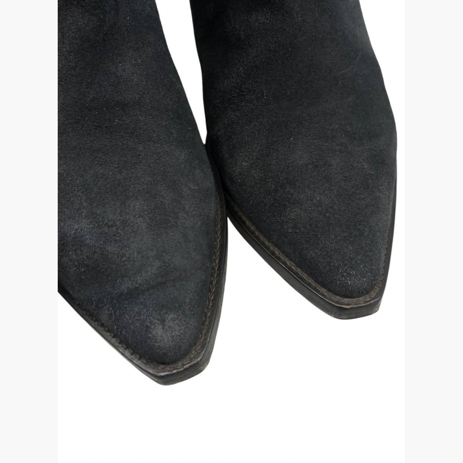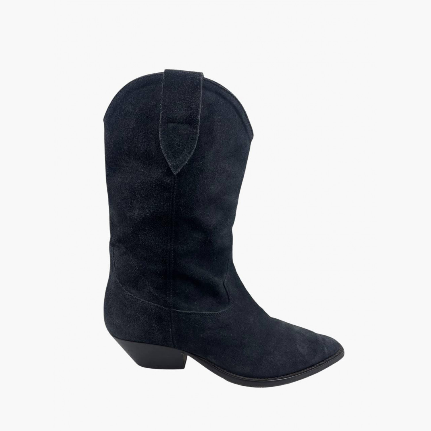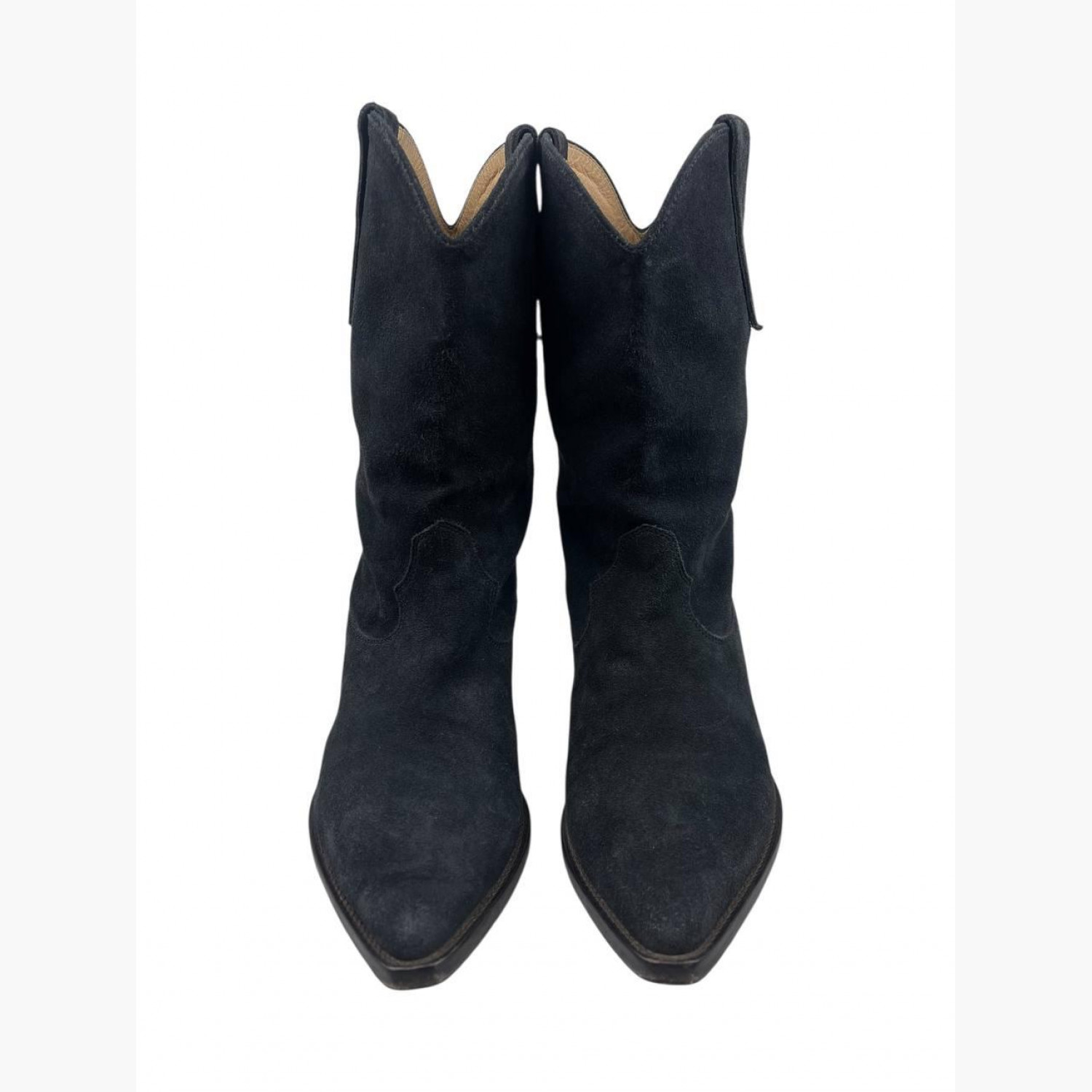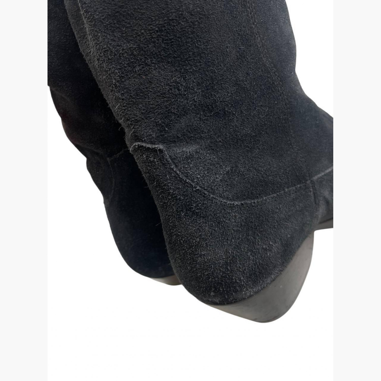 Тёмно-синие замшевые короткие казаки. В хорошем состоянии, есть потёртости.