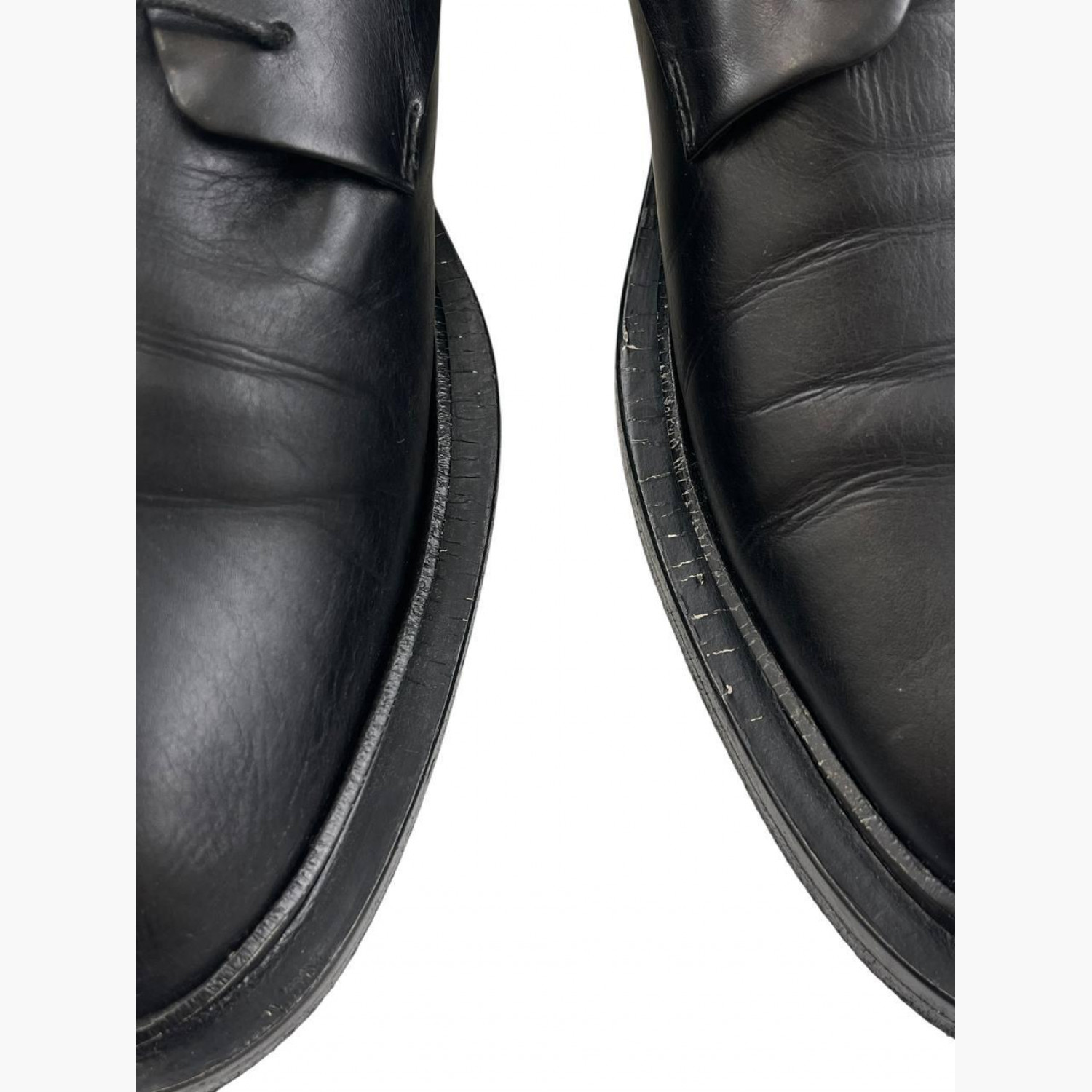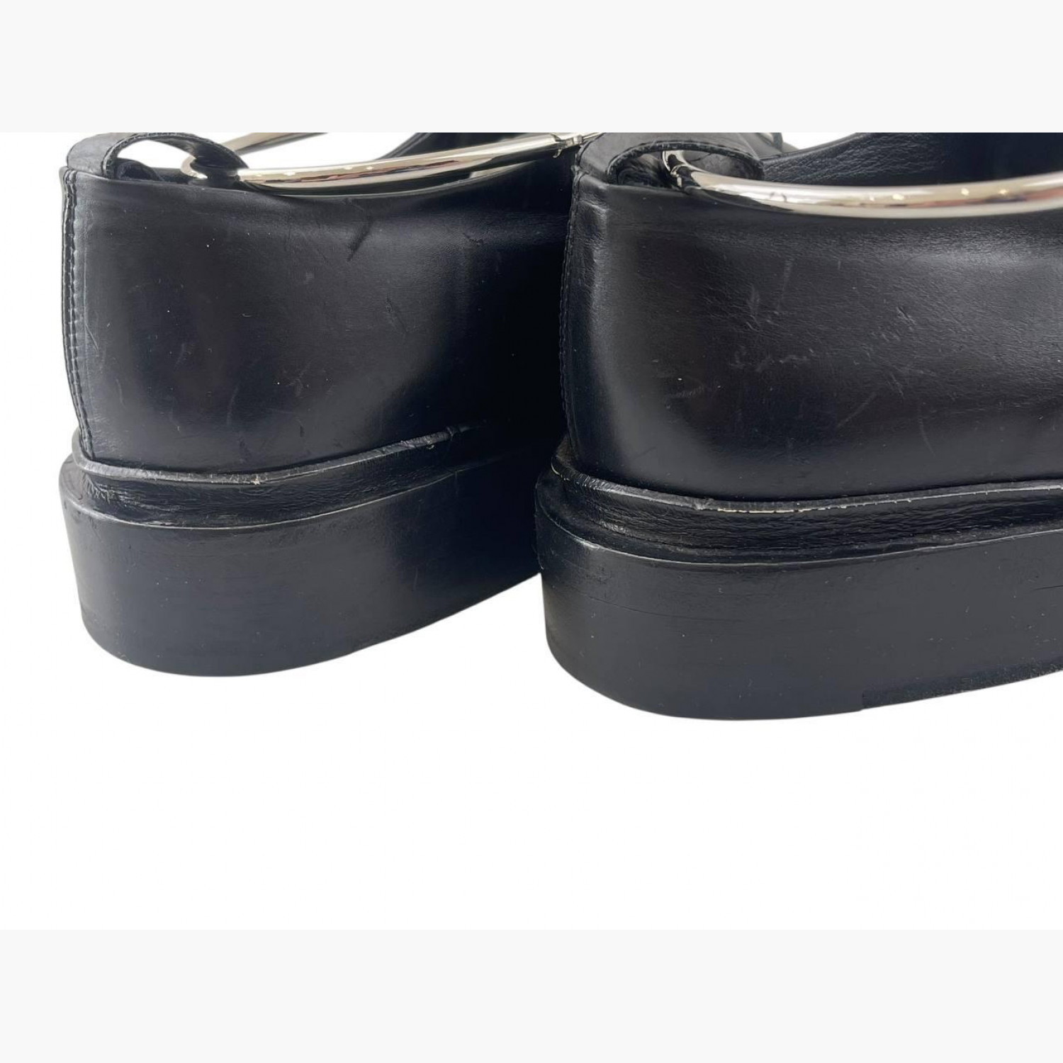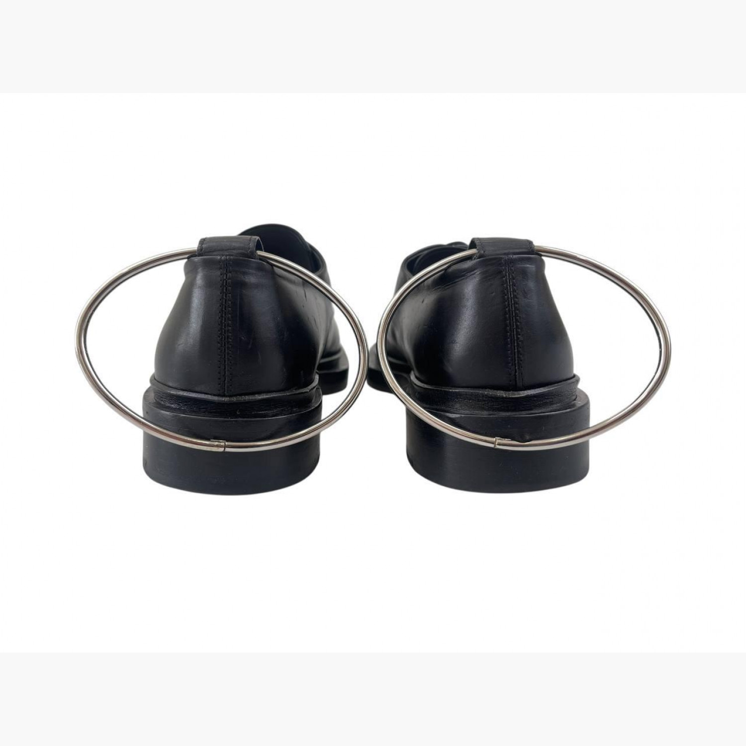 Чёрные кожаные броги с металлическим кольцом вокруг лодыжки. В хорошем состоянии, есть следы носки и потёртости.