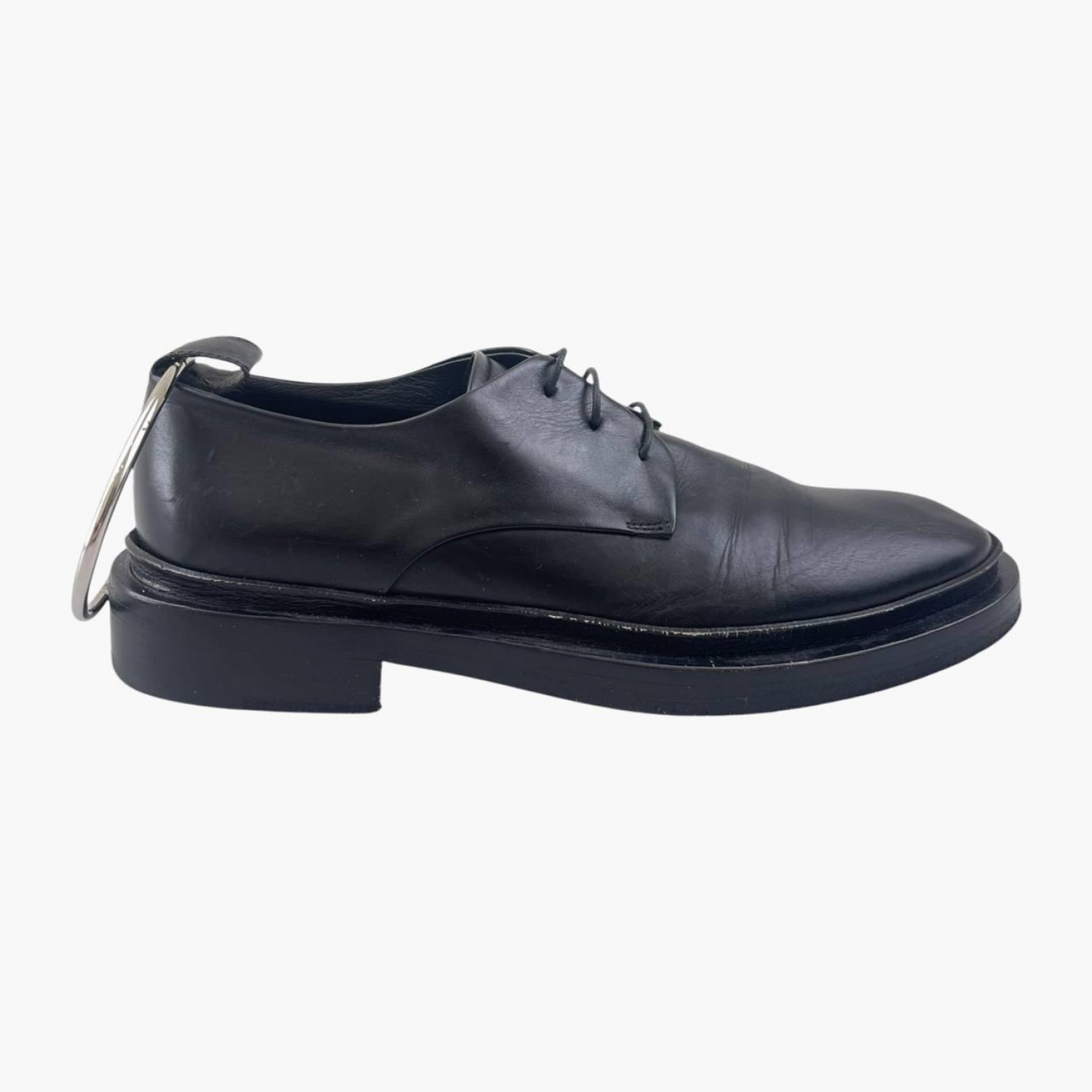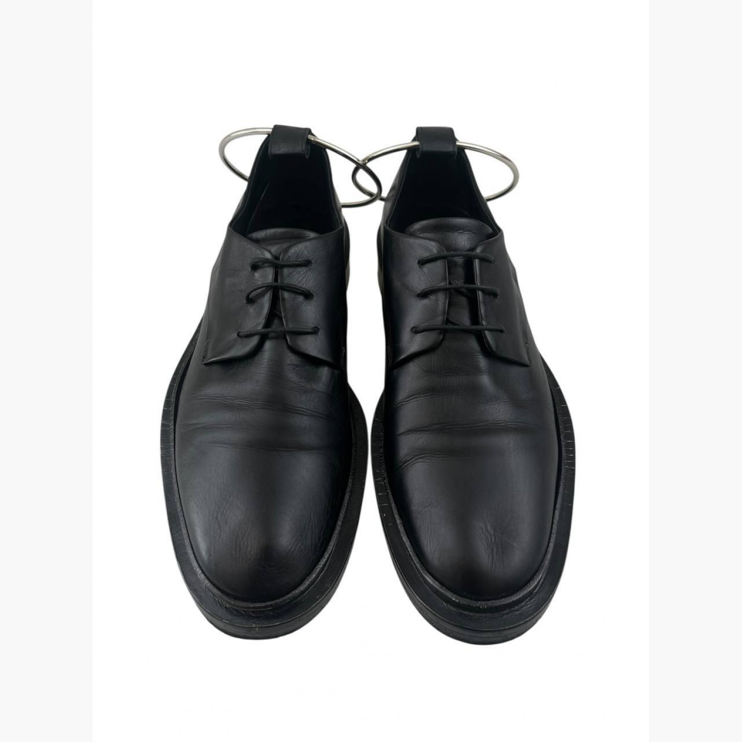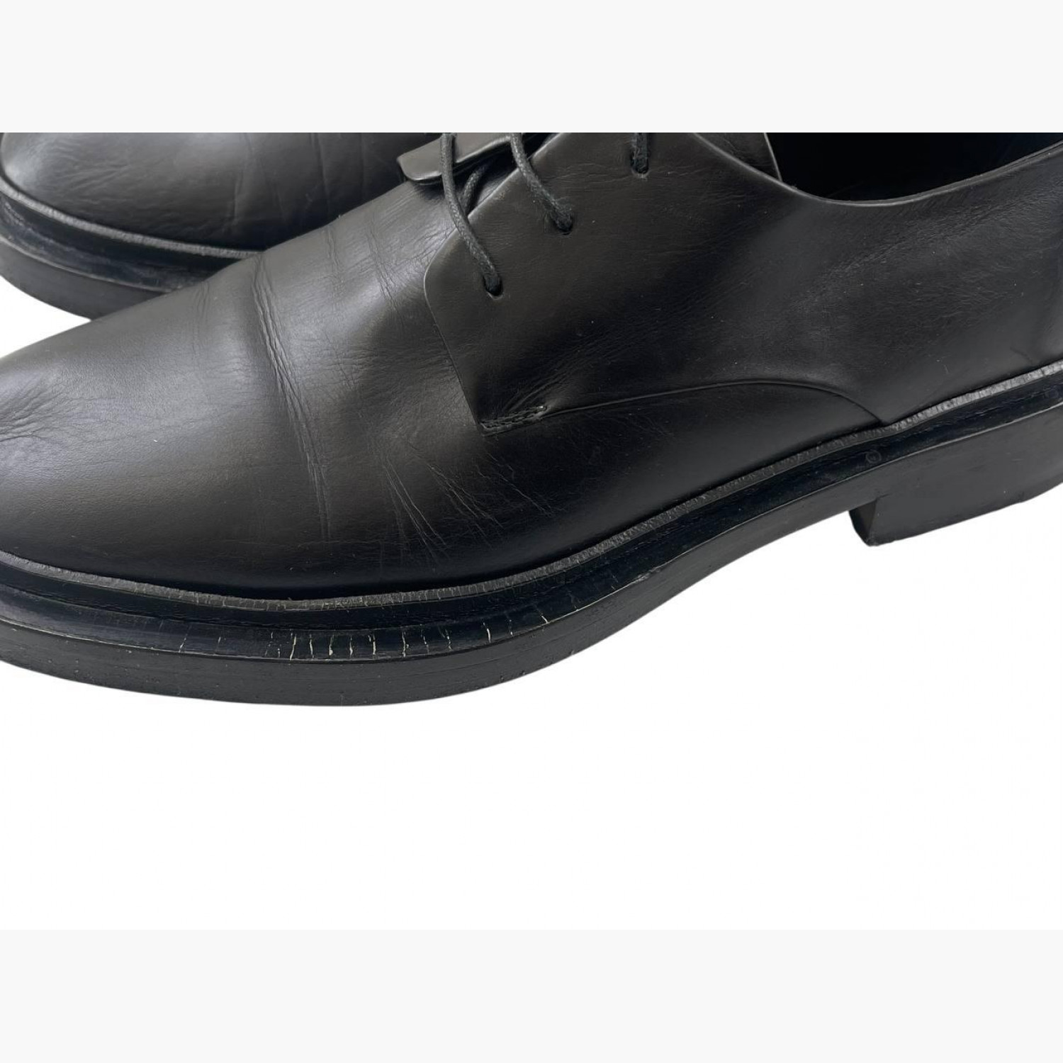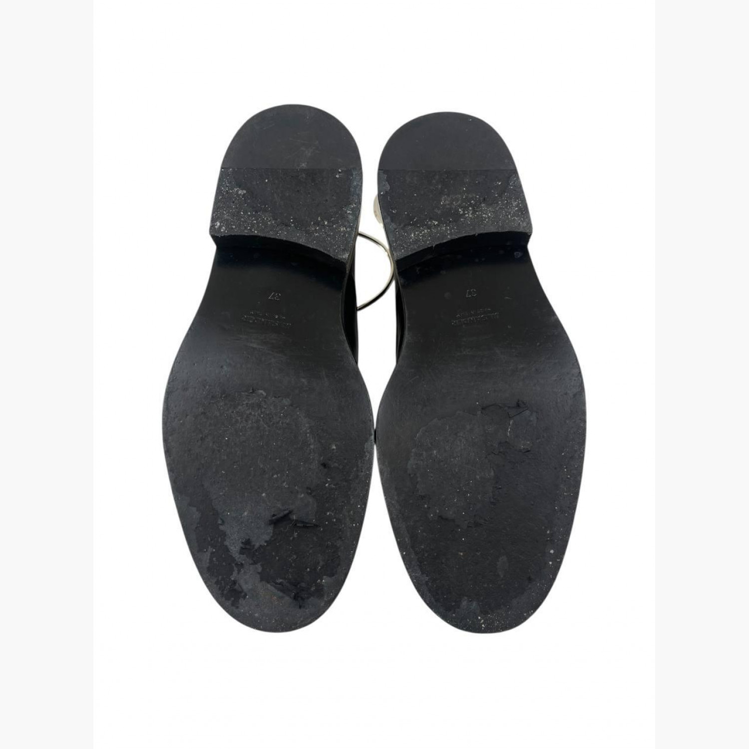 Чёрные кожаные броги с металлическим кольцом вокруг лодыжки. В хорошем состоянии, есть следы носки и потёртости.