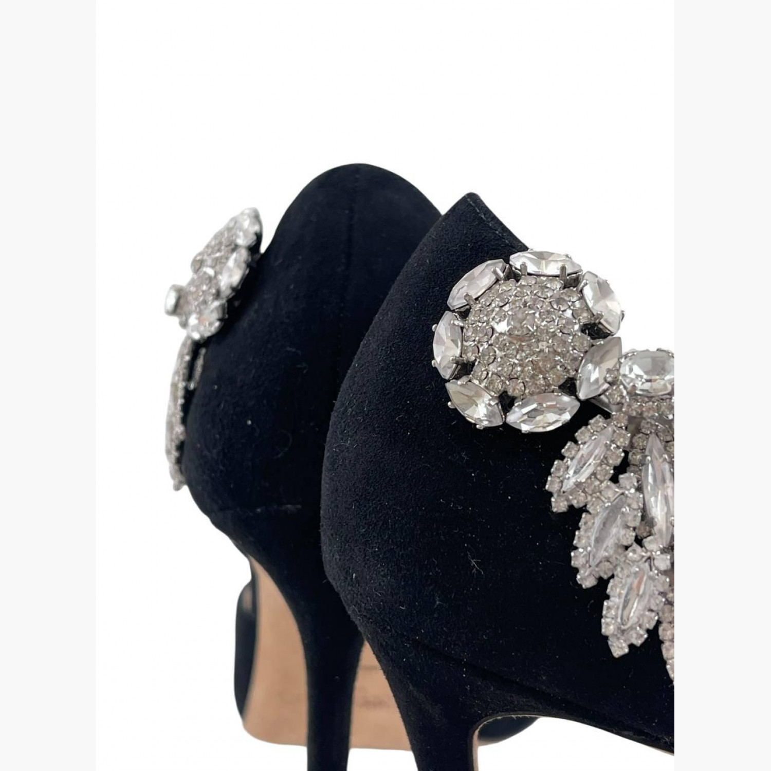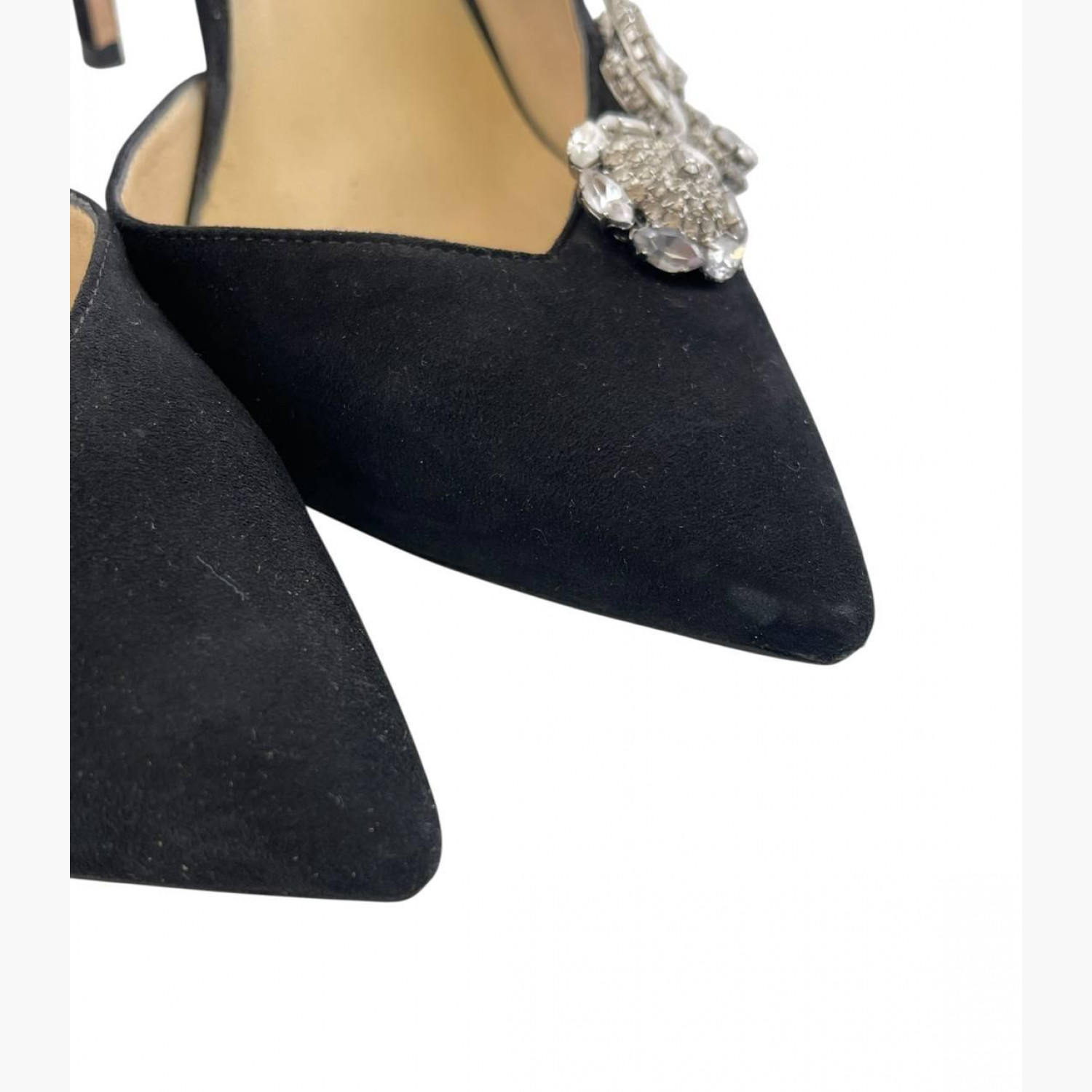 Чёрные замшевые туфли с вышитым декором. В хорошем состоянии, есть следы носки и потёртости.
