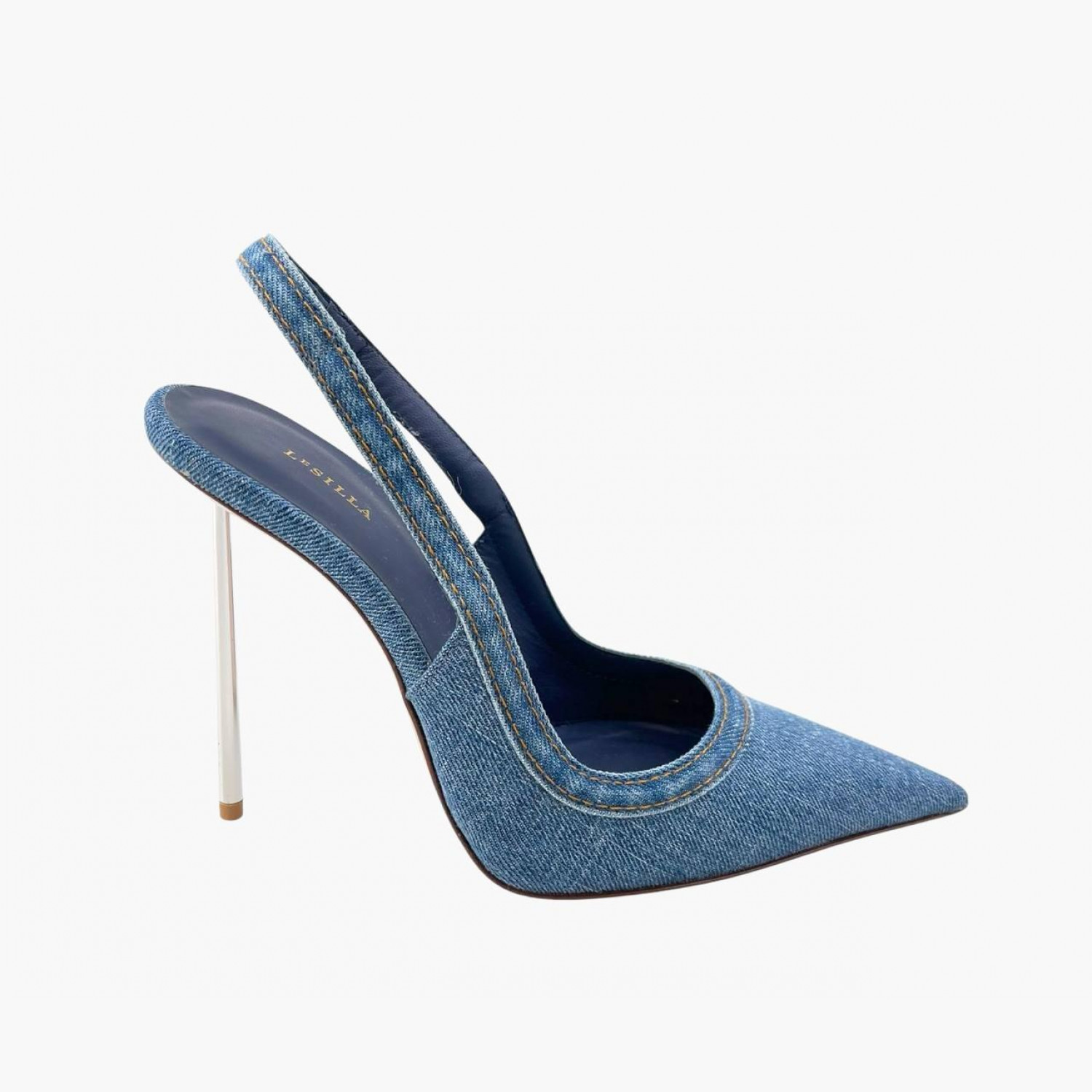 Джинсовые туфли на металлическом каблуке. В отличном состоянии, есть незначительные следы носки.