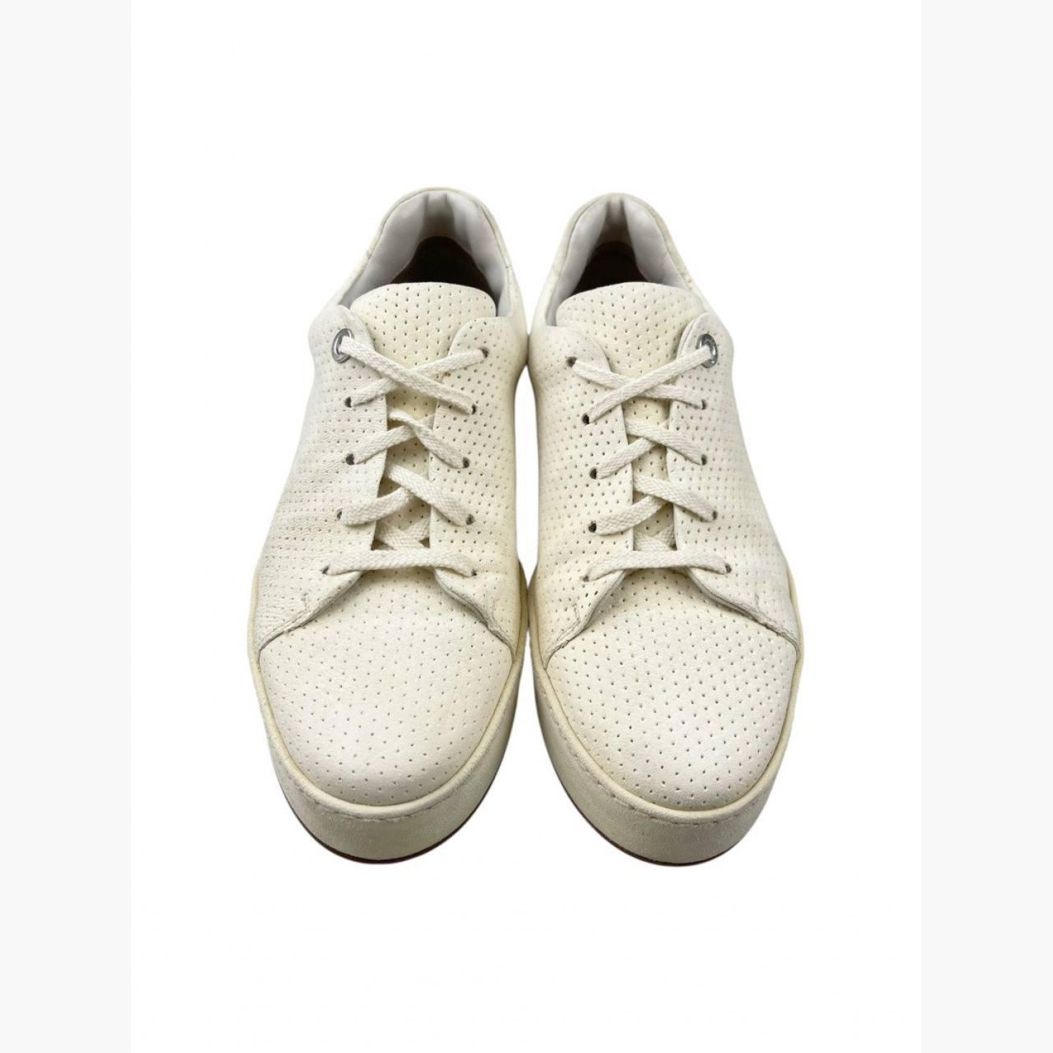 Бежевые замшевые кеды с перфорацией. В хорошем состоянии, есть следы носки.