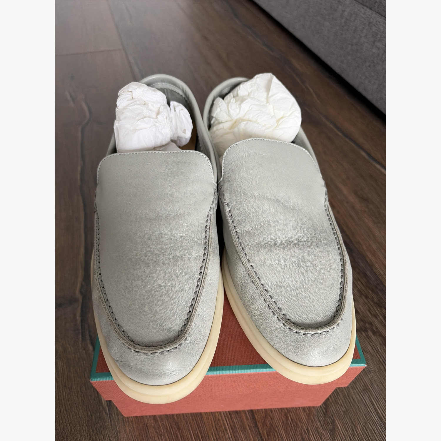 Кожаные лоферы серого цвета.В отличном состоянии, без следов носки.Приобретены в Германии, во Франкфурте-на-Майне.