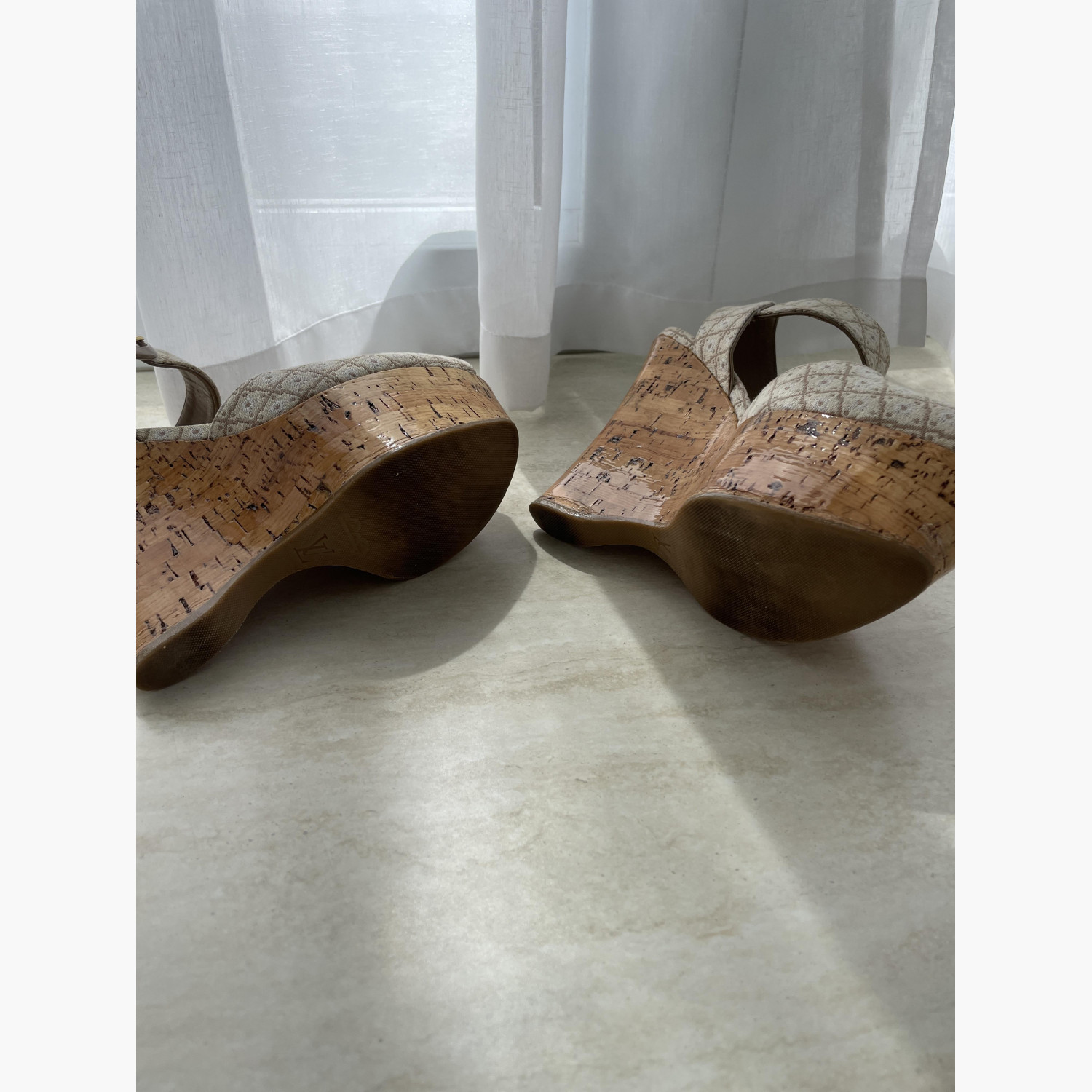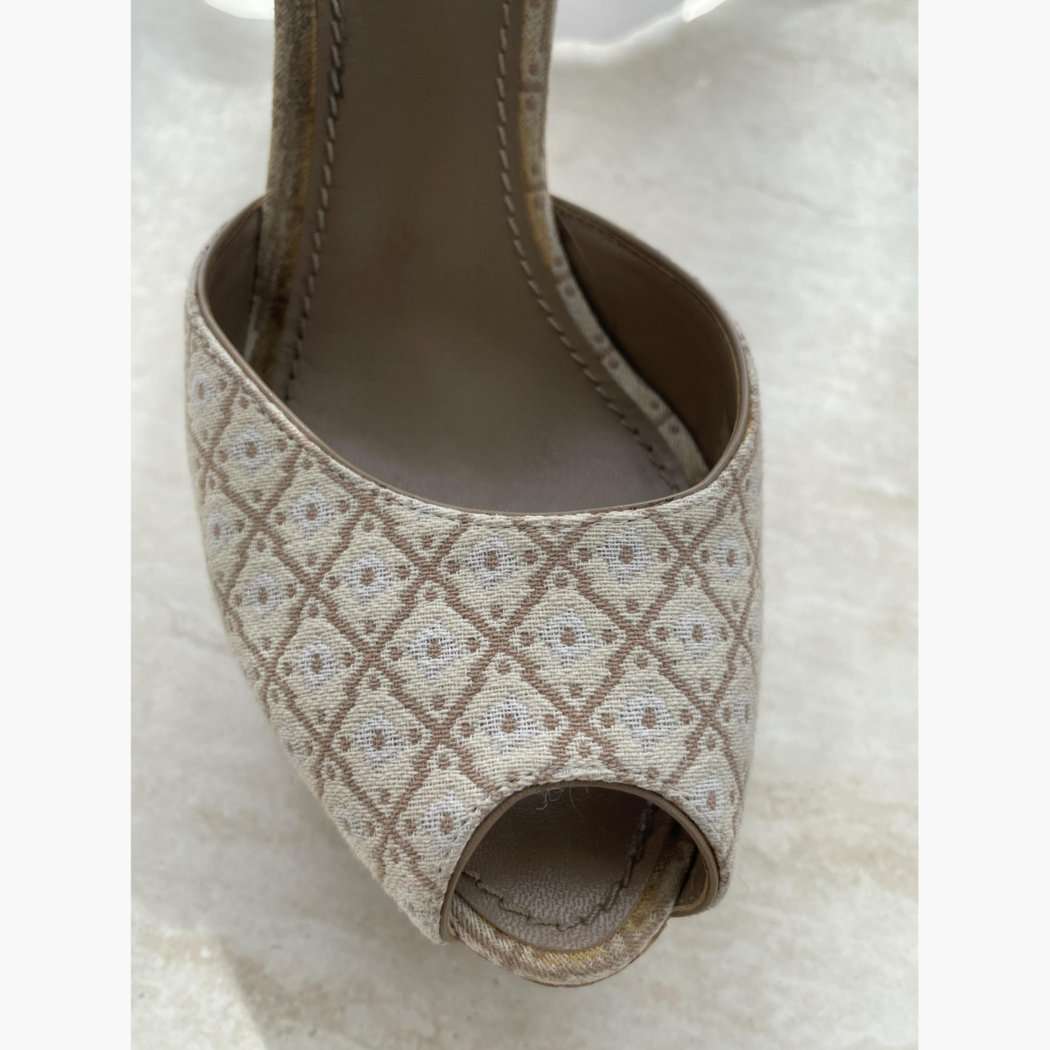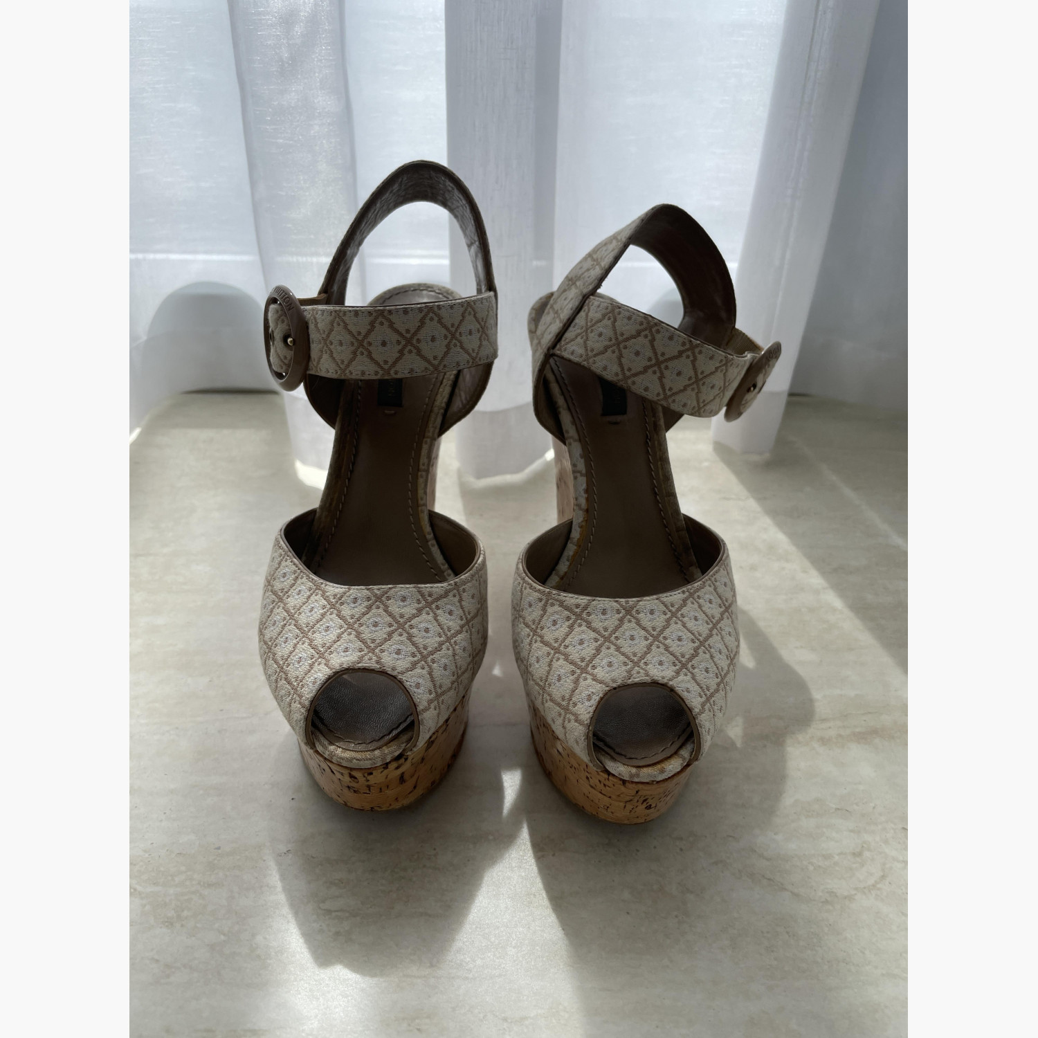 Бежевые босоножки на танкетке с цветочным орнаментом, на пробковой подошве. В хорошем состоянии. Натуральная кожа. Редкая модель из коллекции 2018 года.