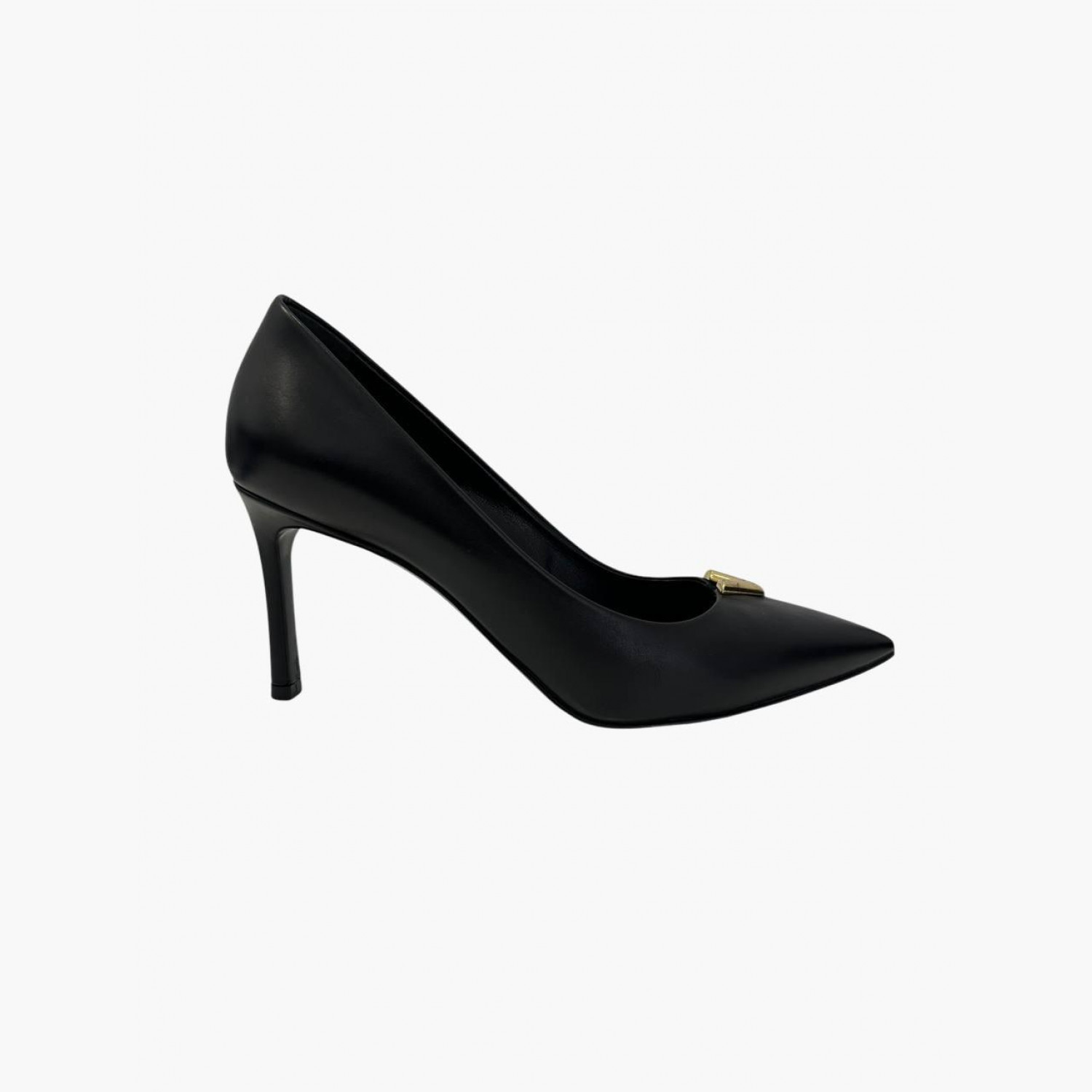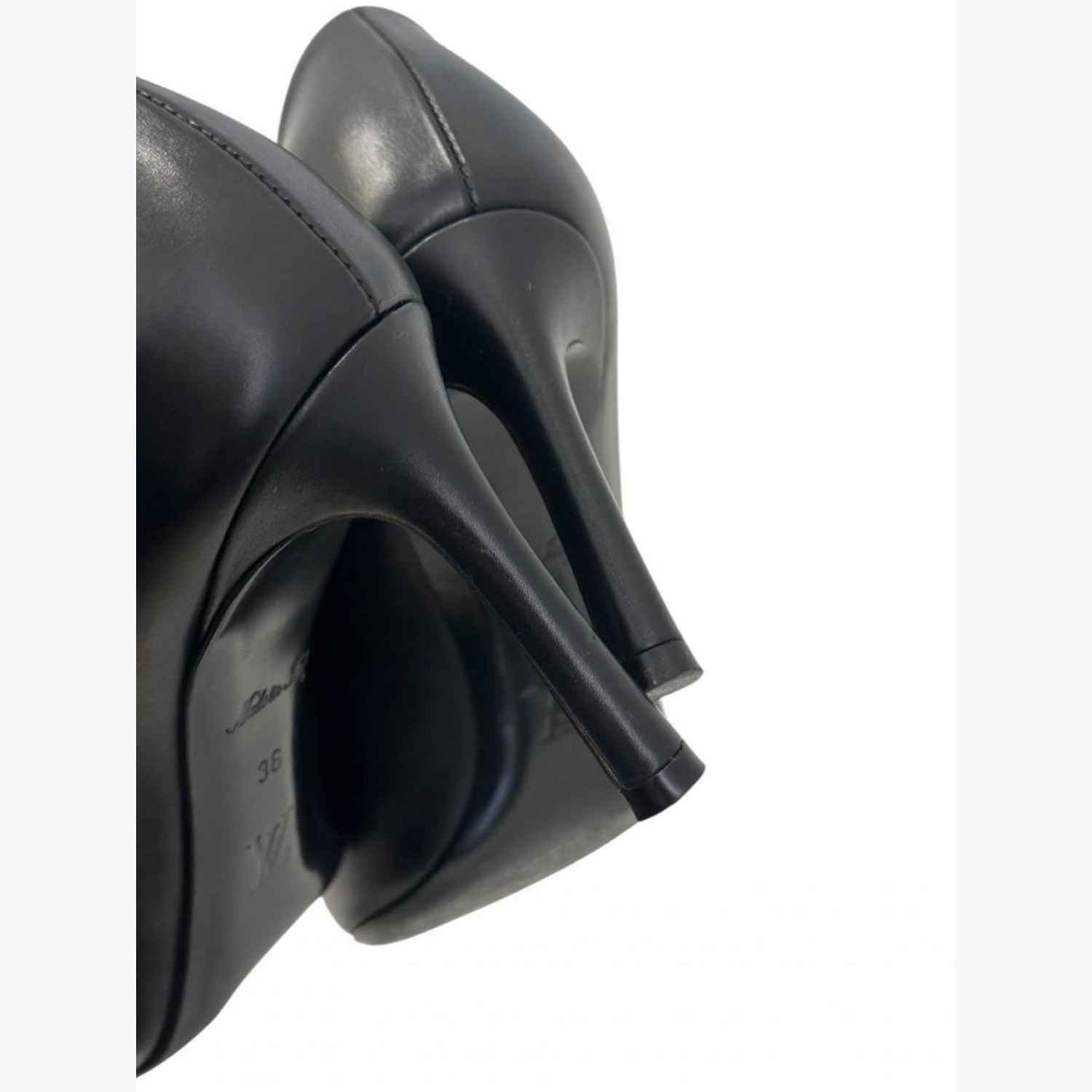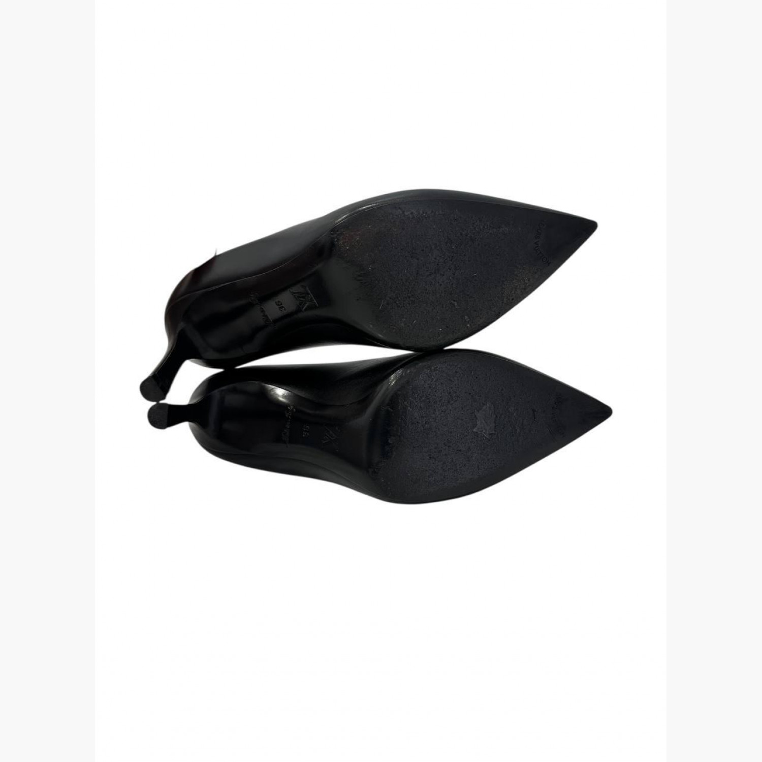 Черные кожаные туфли на каблуке. В хорошем состоянии, есть незначительные потертости.