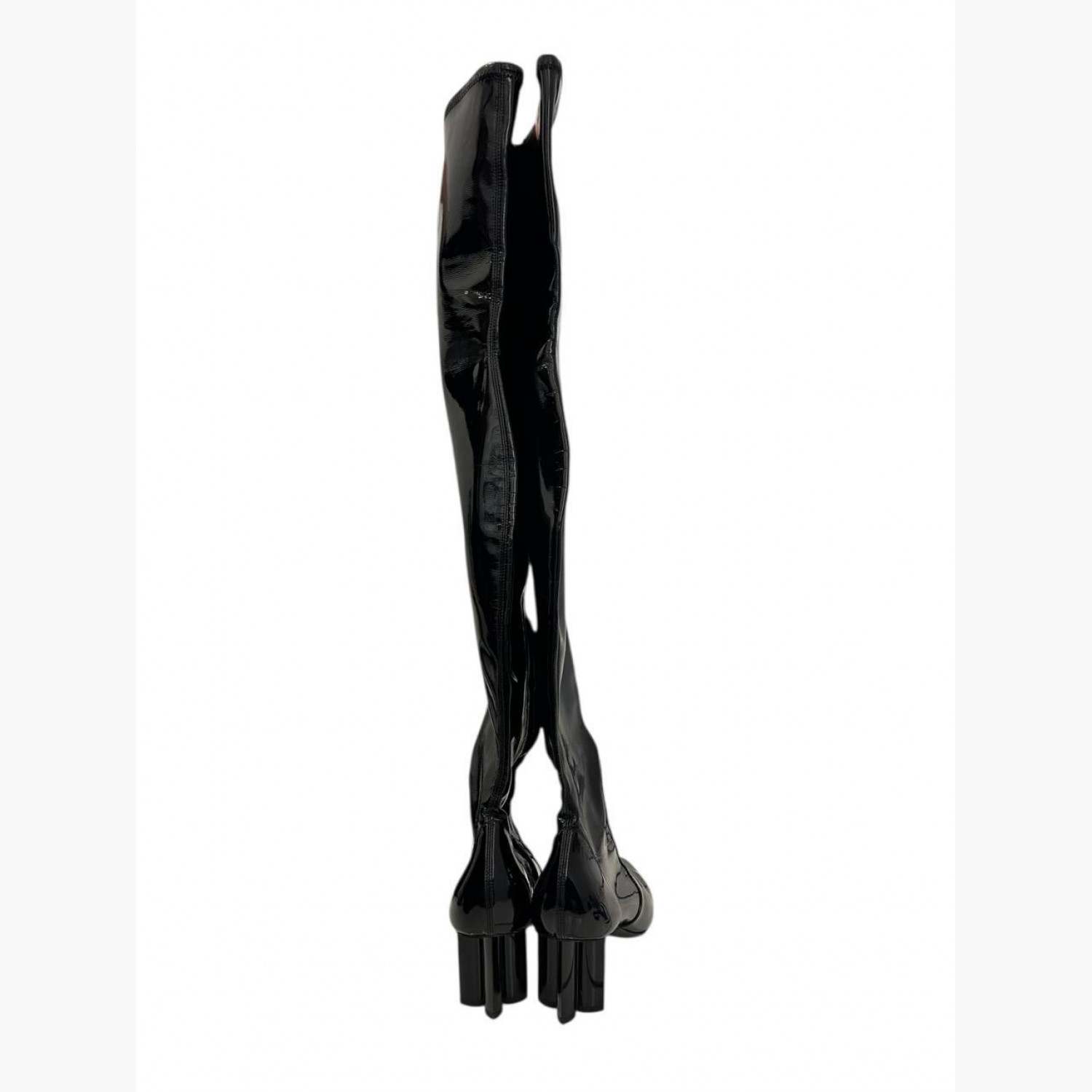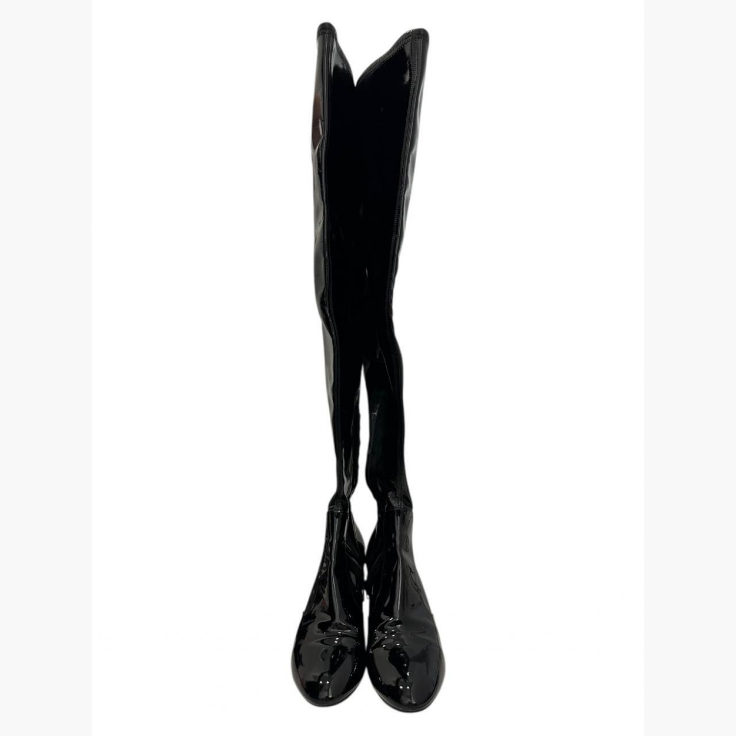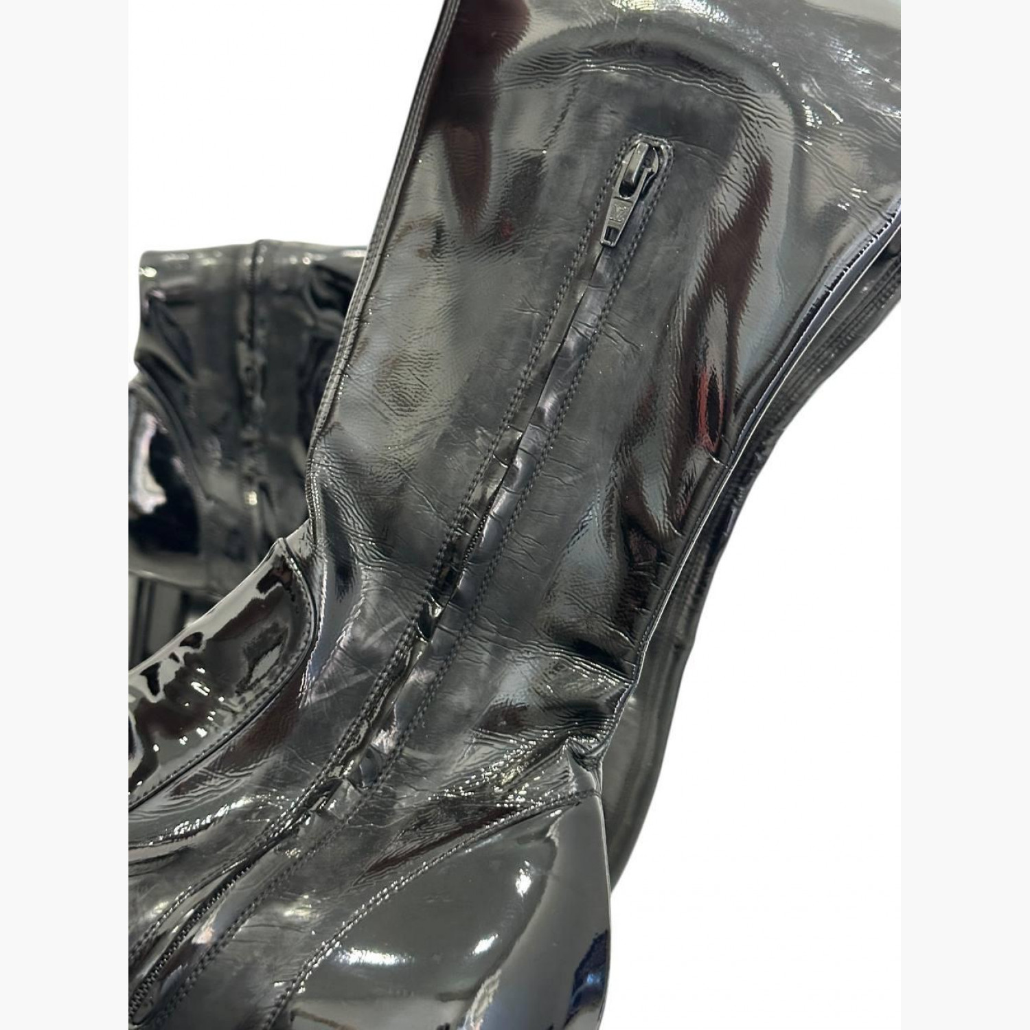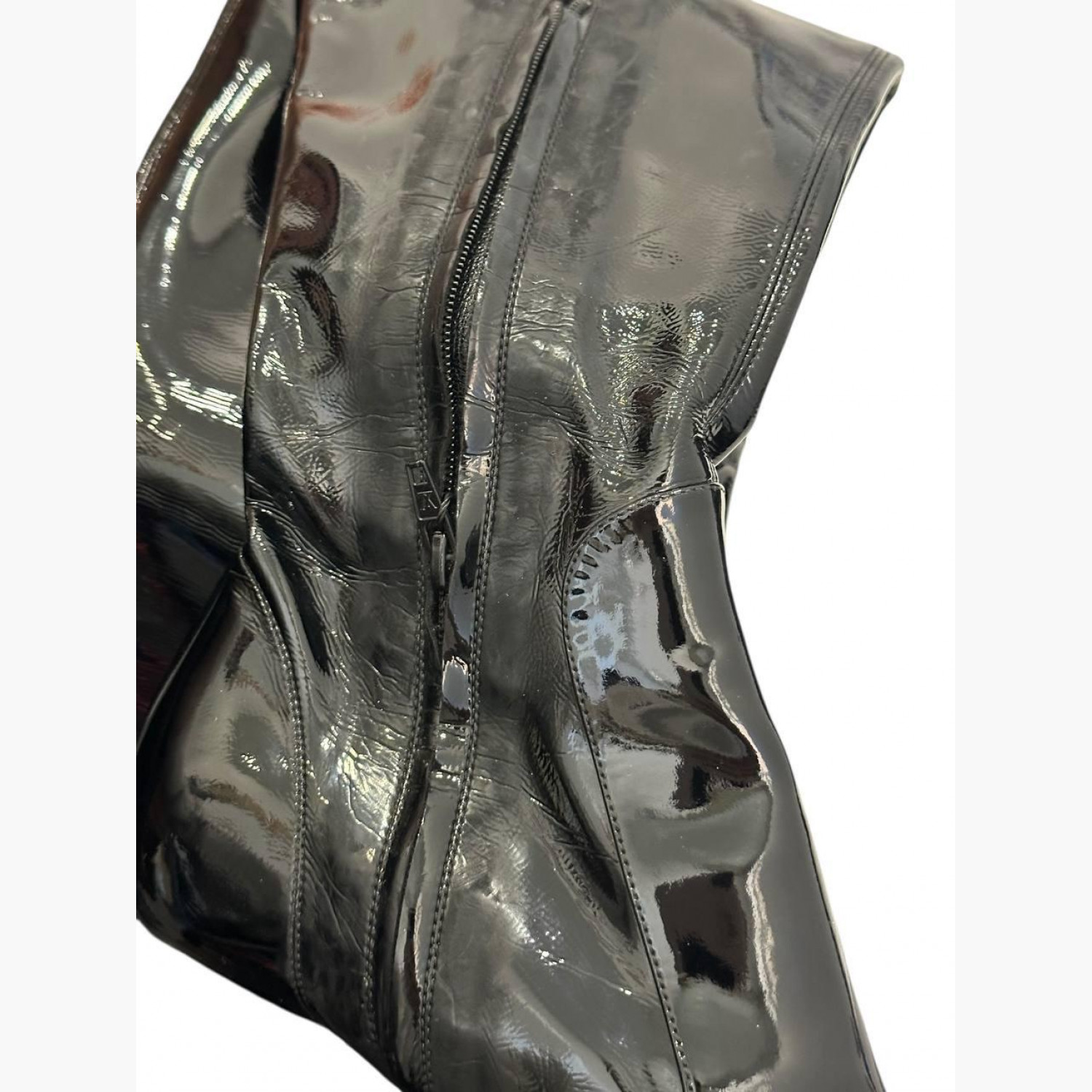 Черные лакированные ботфорты. В хорошем состоянии, есть потертости на коже и подошве.