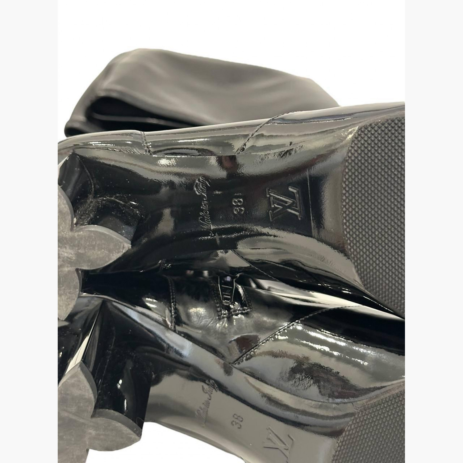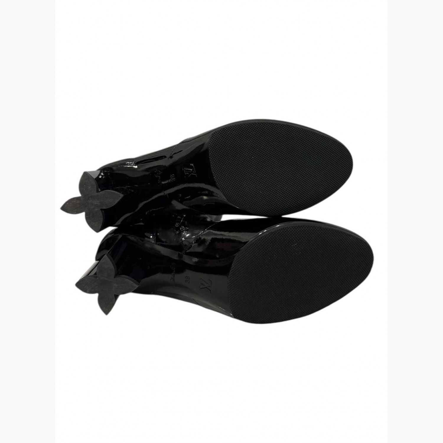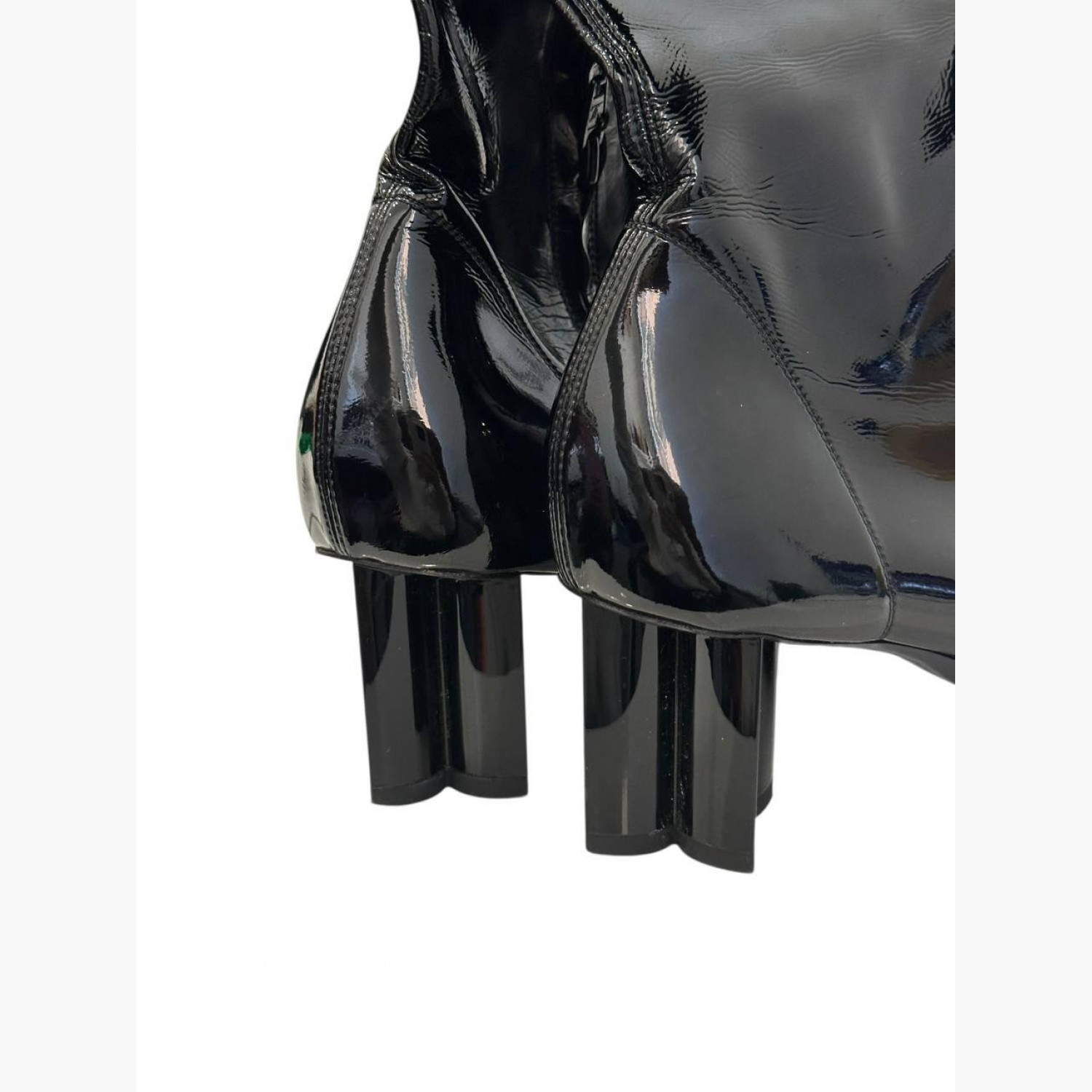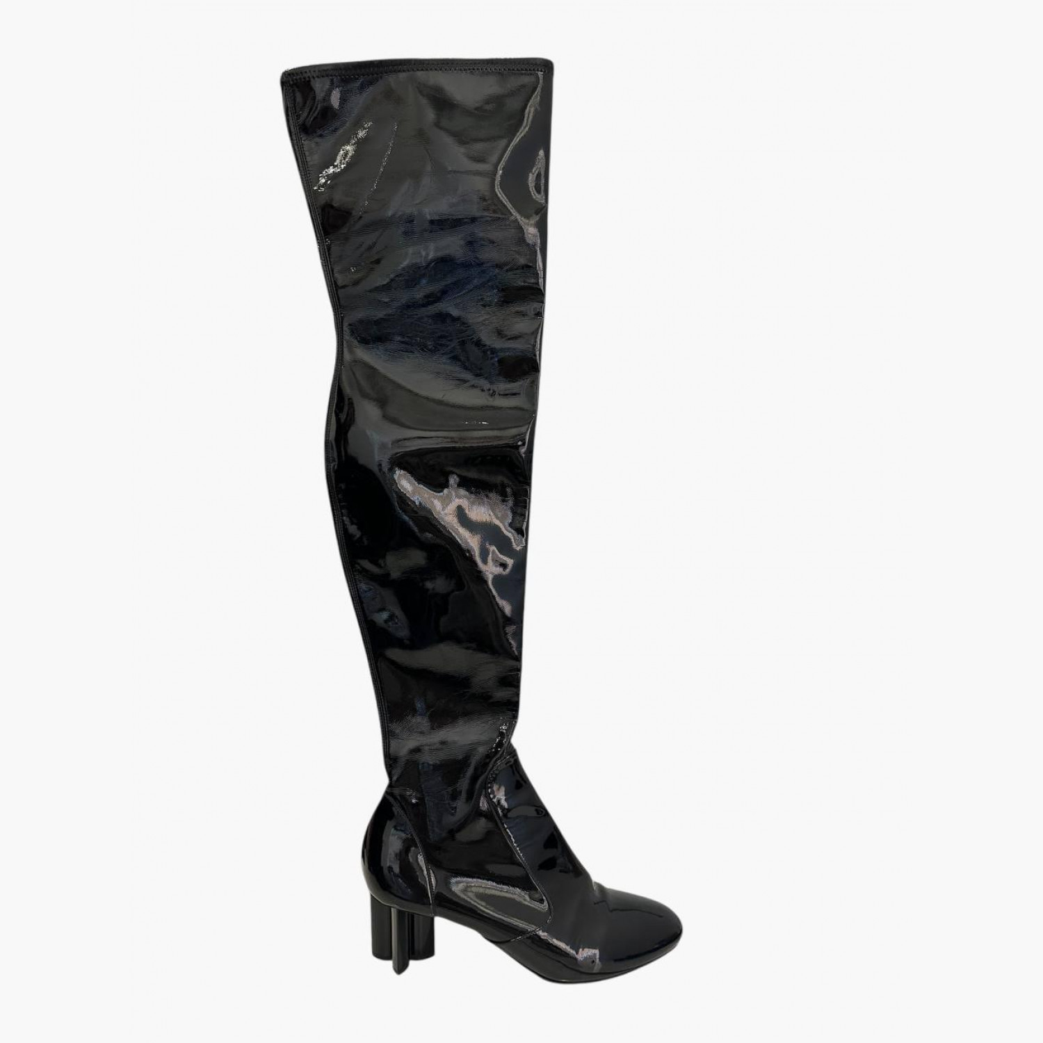 Черные лакированные ботфорты. В хорошем состоянии, есть потертости на коже и подошве.