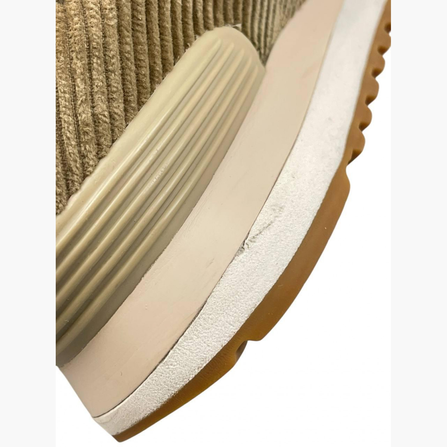 Вельветовые кроссовки бежевого цвета. В отличном состоянии, есть незначительные следы носки.