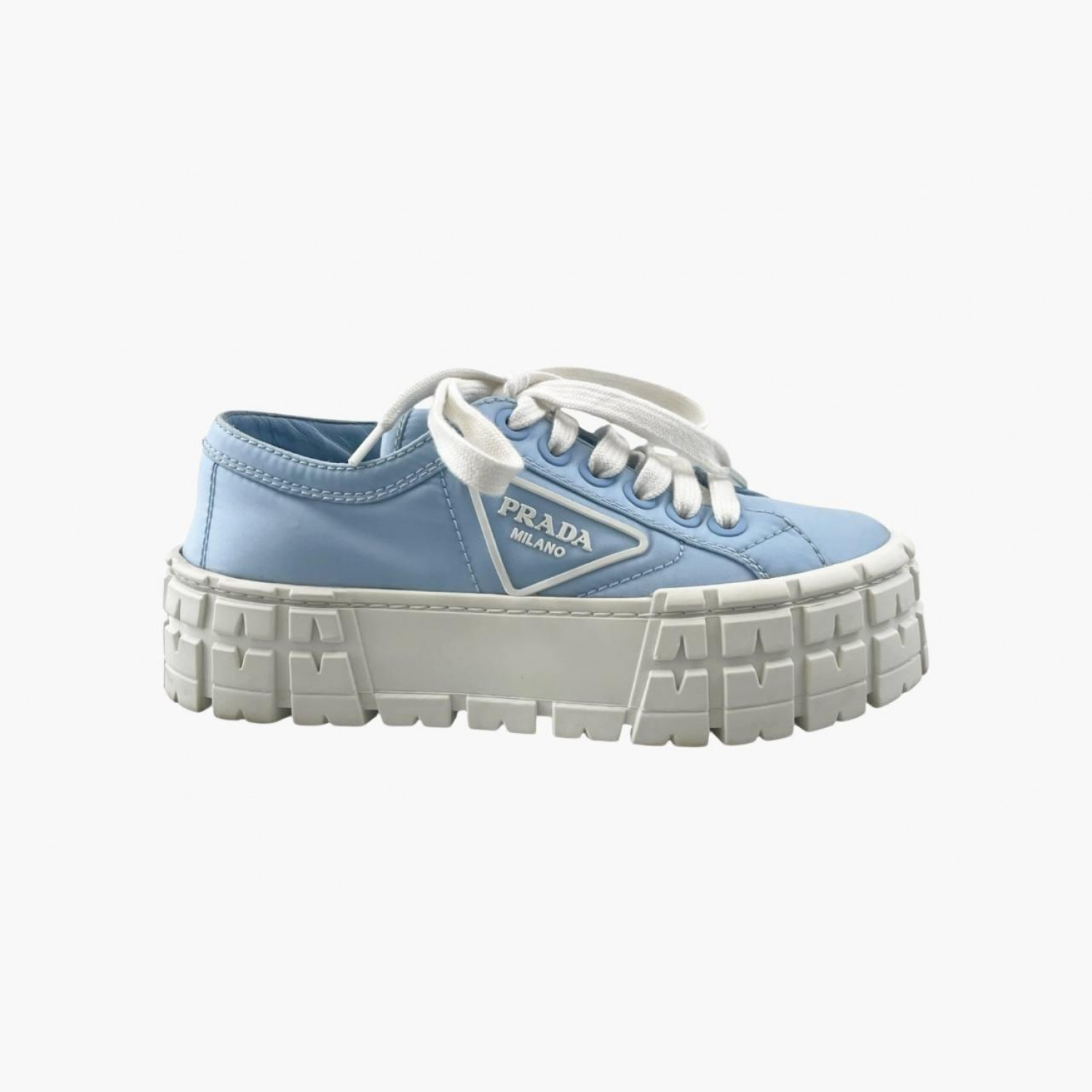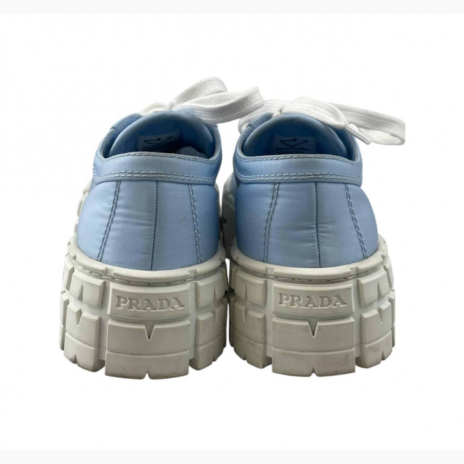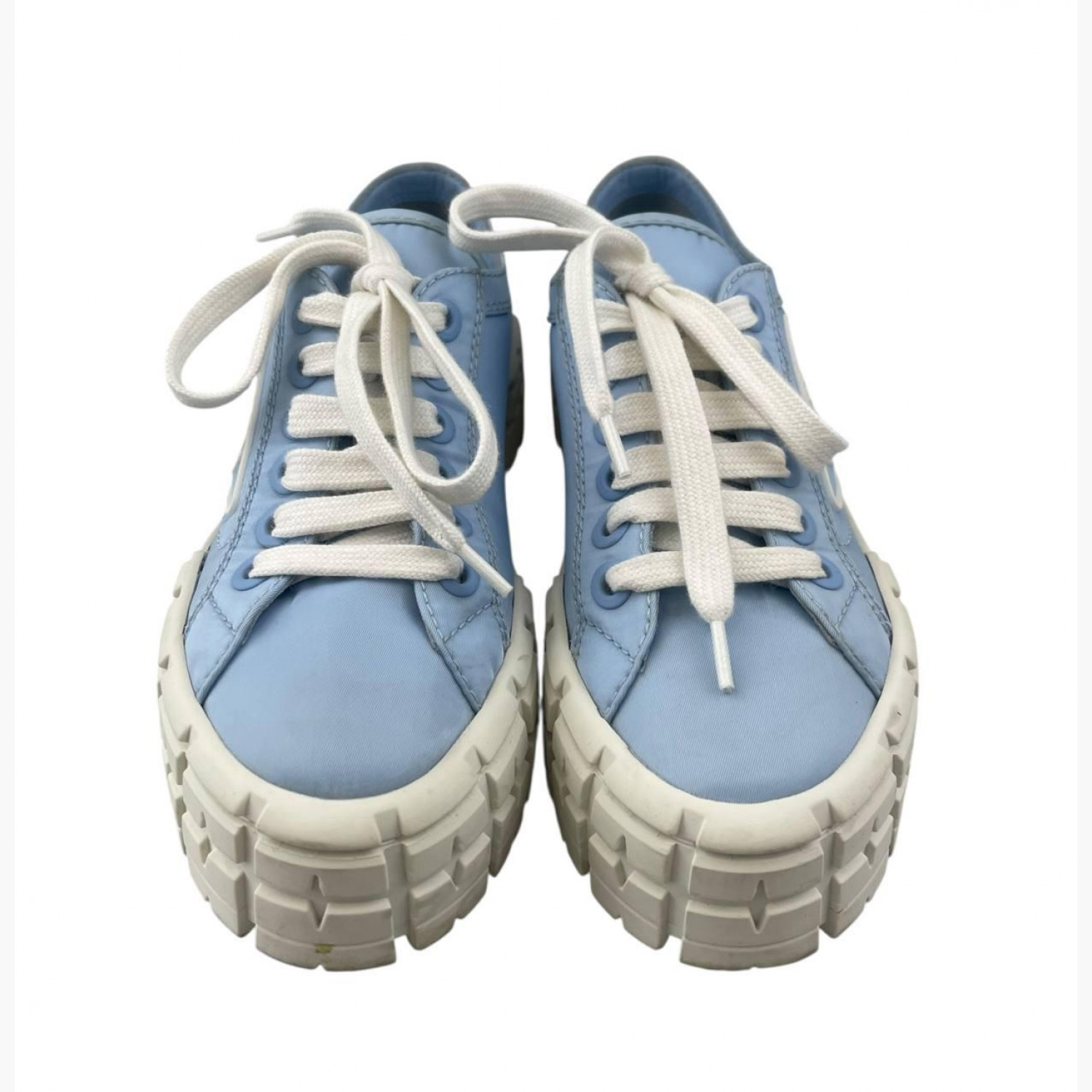 Голубые нейлоновые кеды на высокой платформе. В хорошем состоянии, есть следы носки.