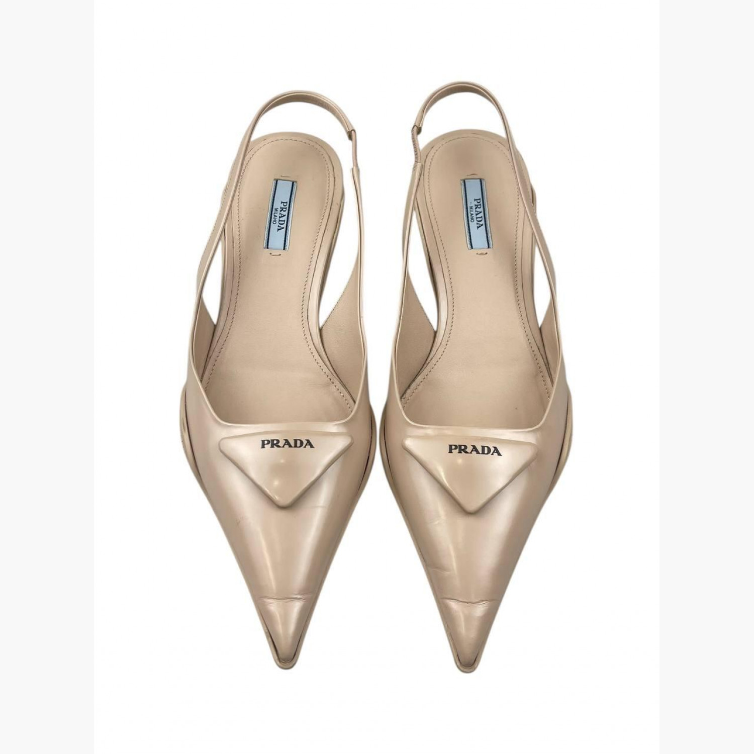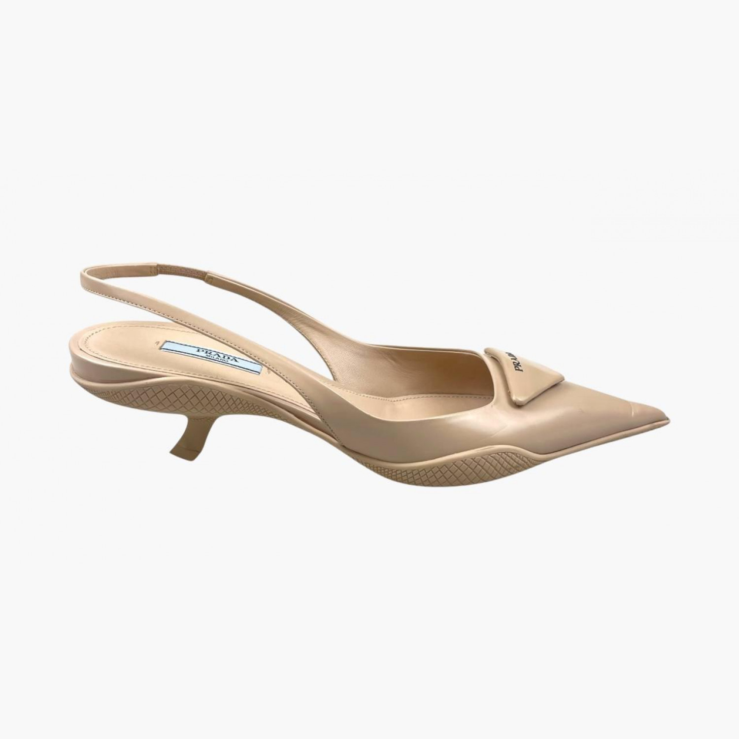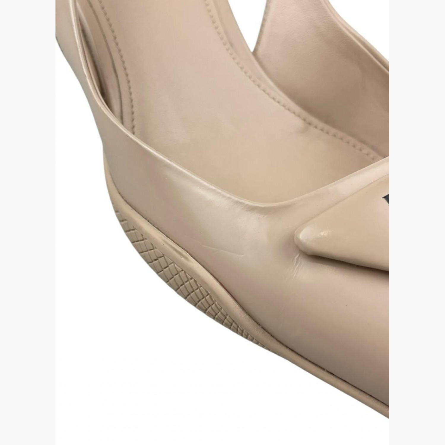 Бежевые слингбэки на низком каблуке из лакированной кожи. В хорошем состоянии, есть следы носки.