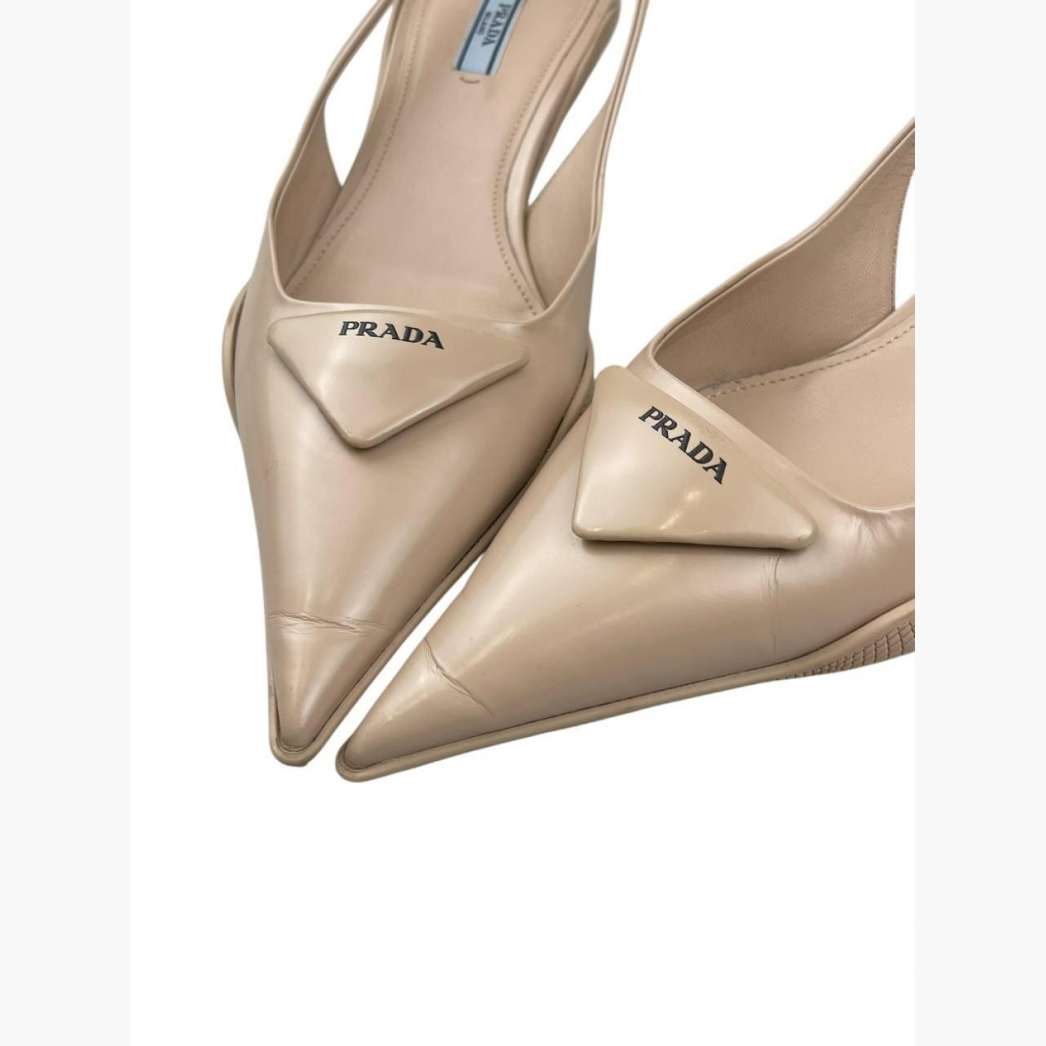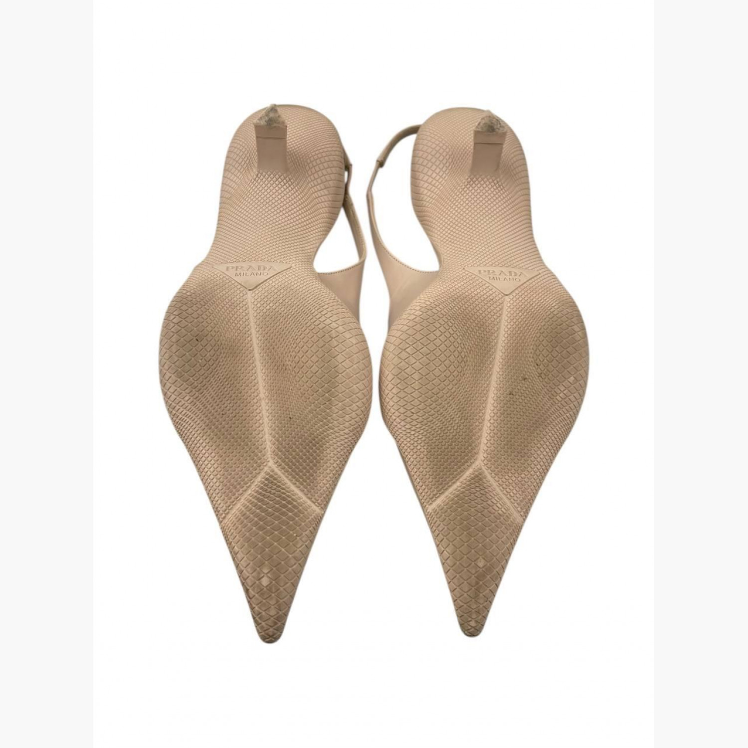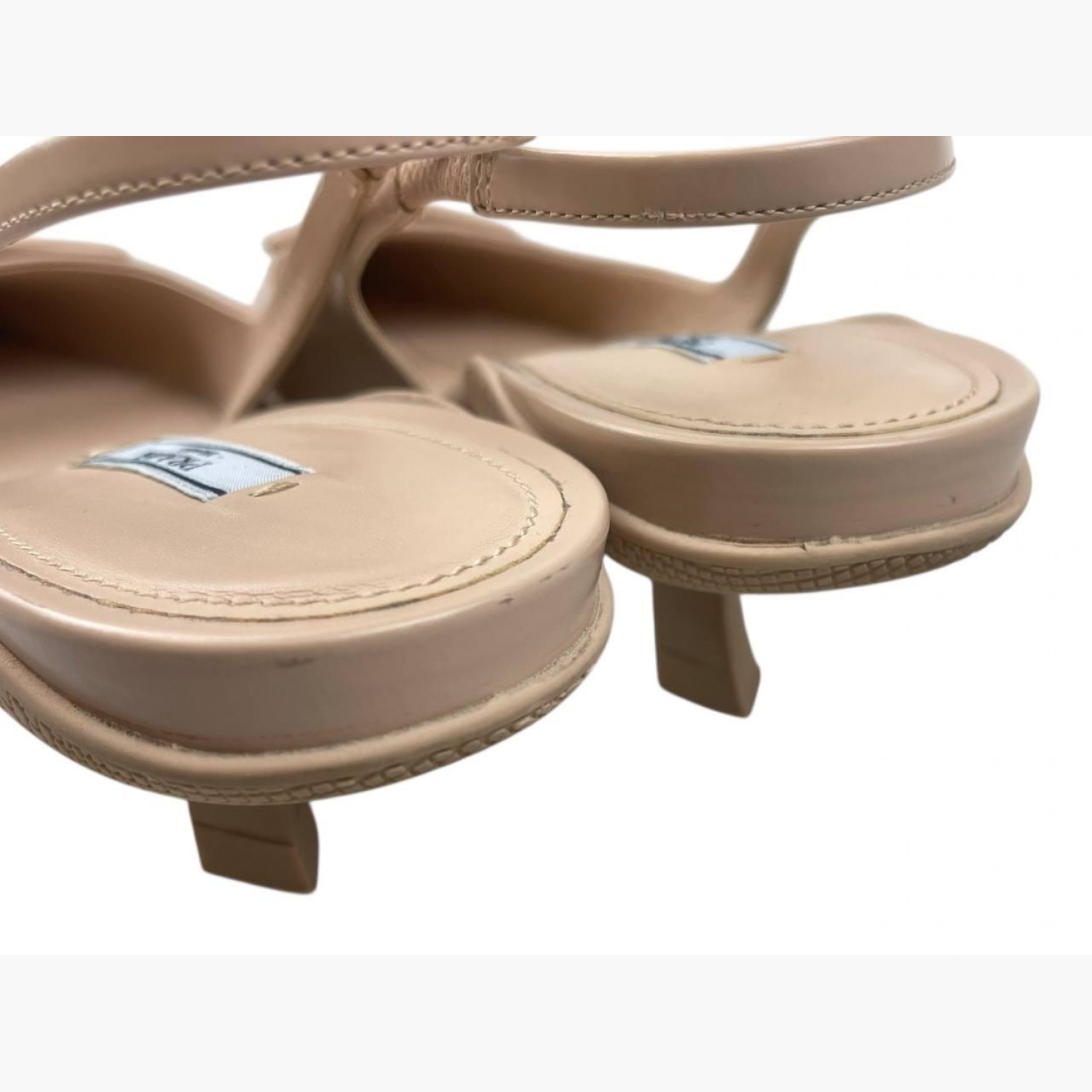 Бежевые слингбэки на низком каблуке из лакированной кожи. В хорошем состоянии, есть следы носки.