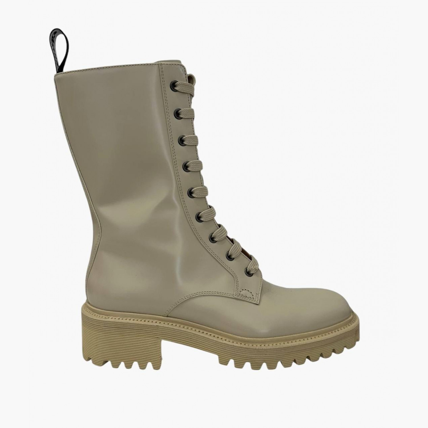 Бежевые кожаные ботинки на шнуровке. В идеальном состоянии, с незначительными следами носки.