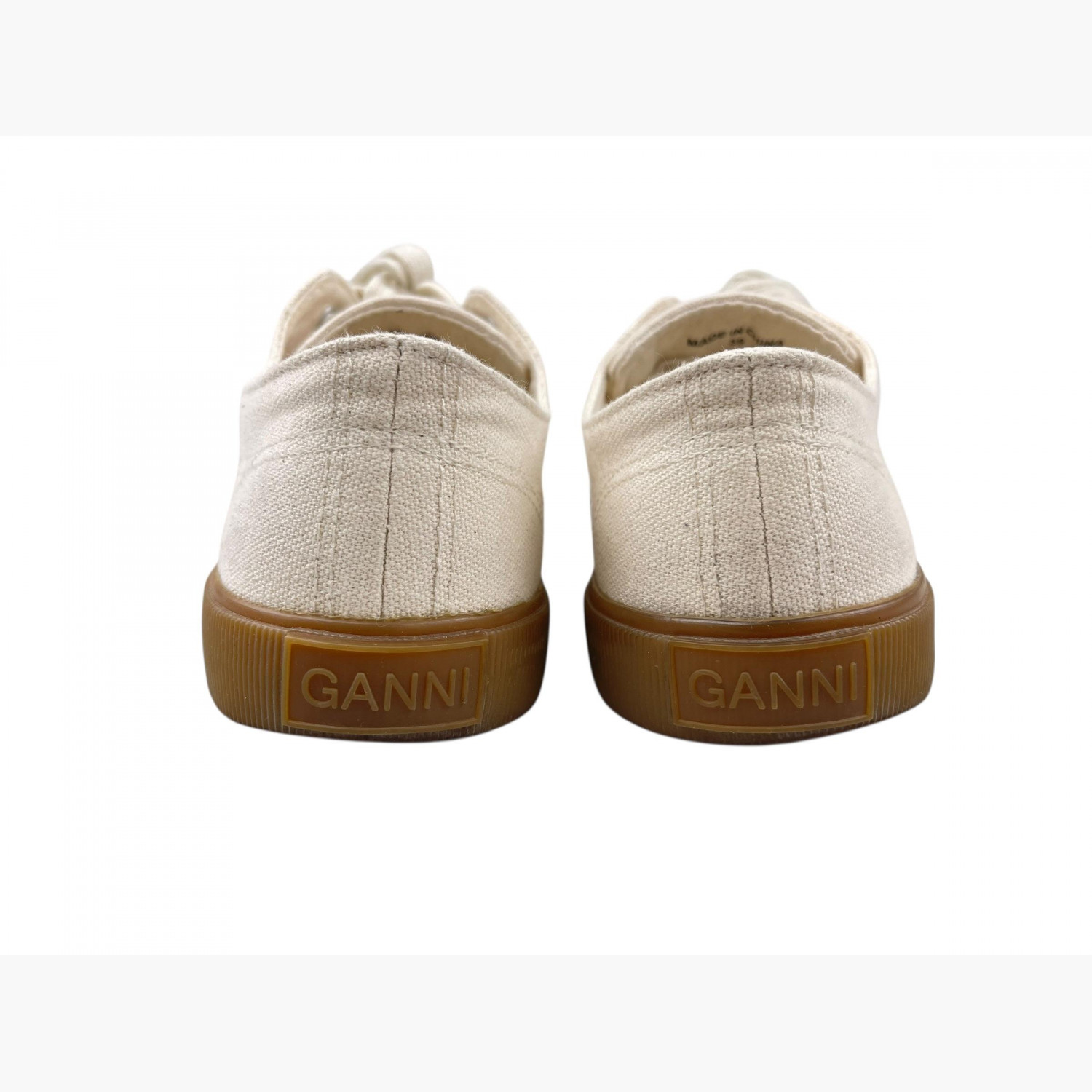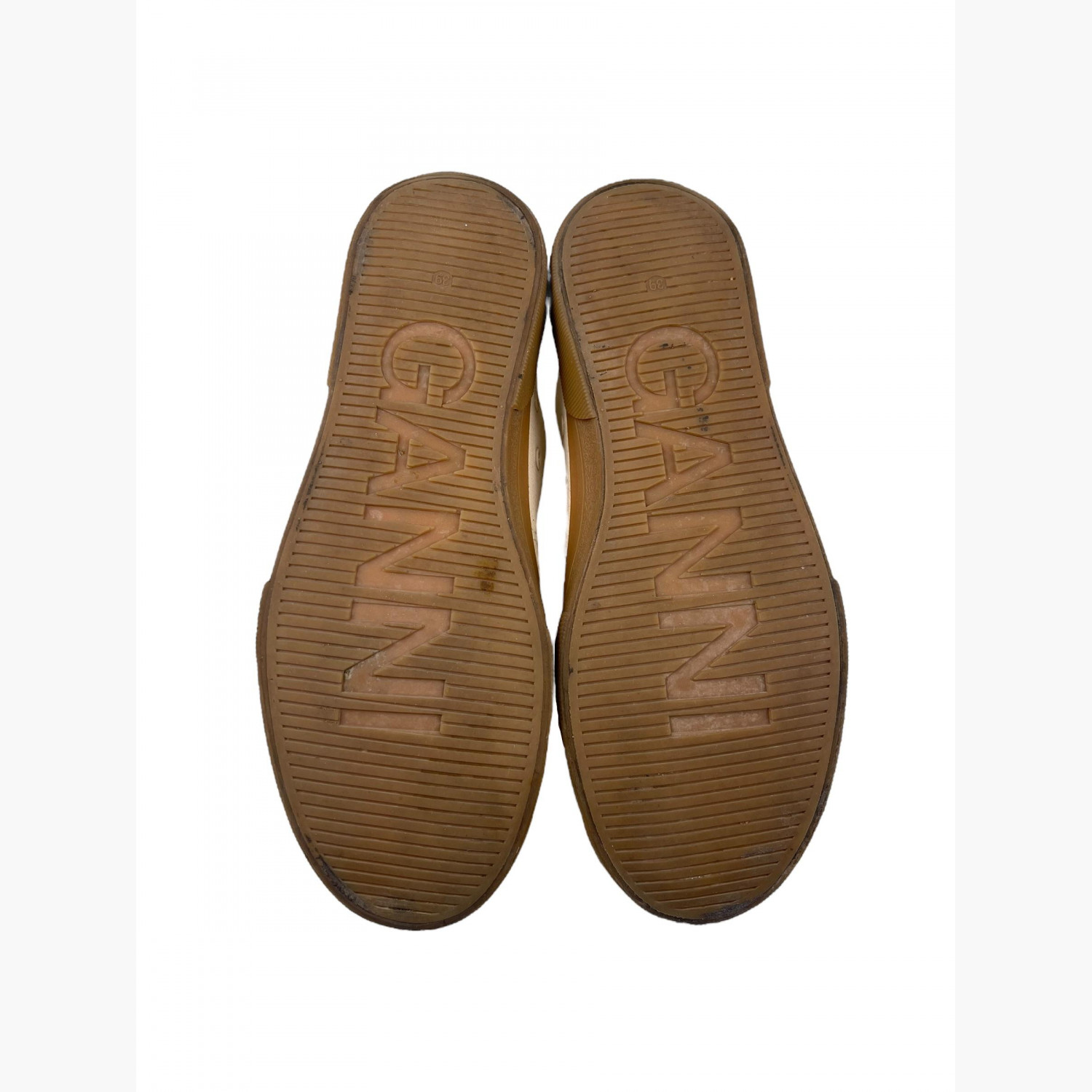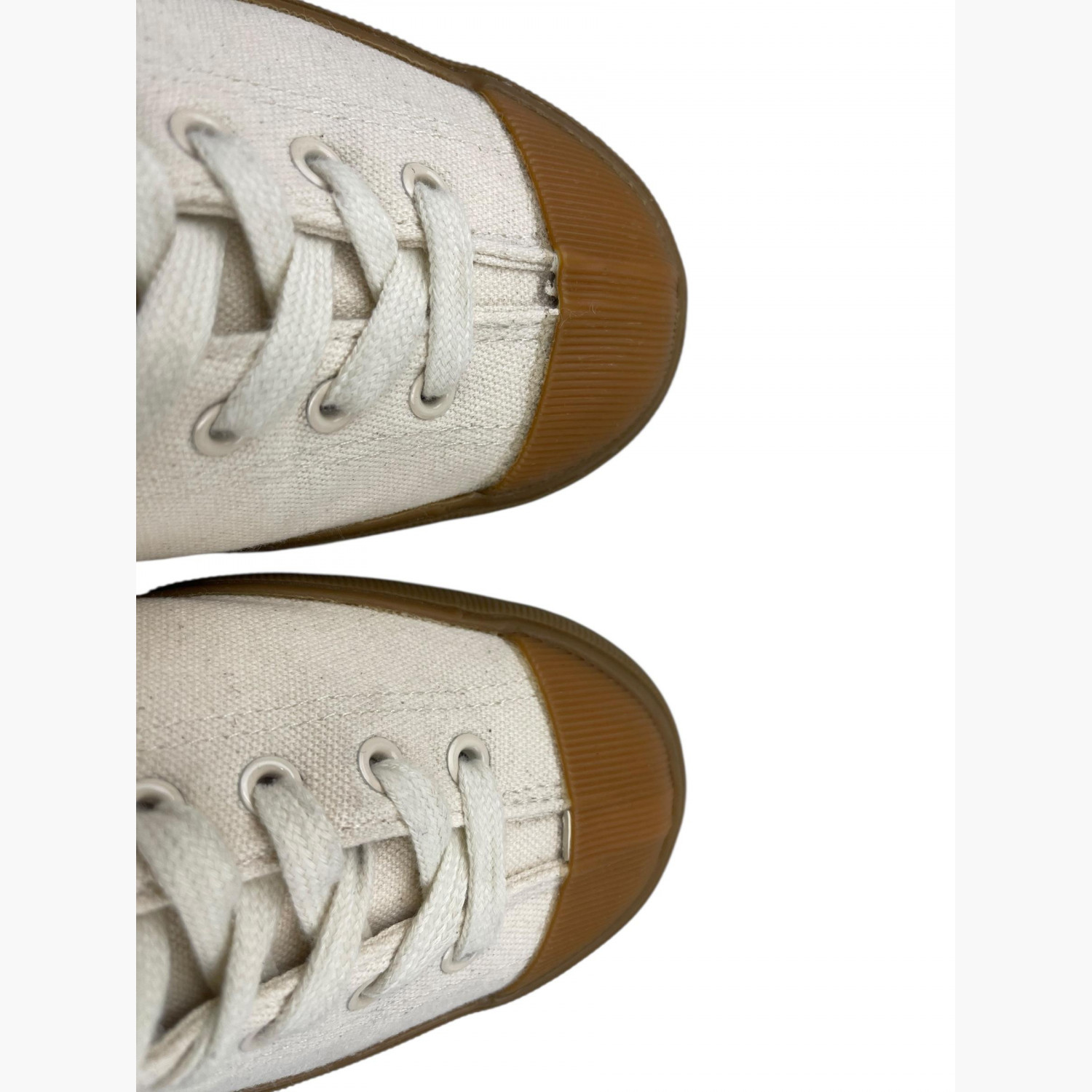 Бежевые текстильные кеды с вышитым лого по бокам .В хорошем состоянии, есть незначительные следы носки.