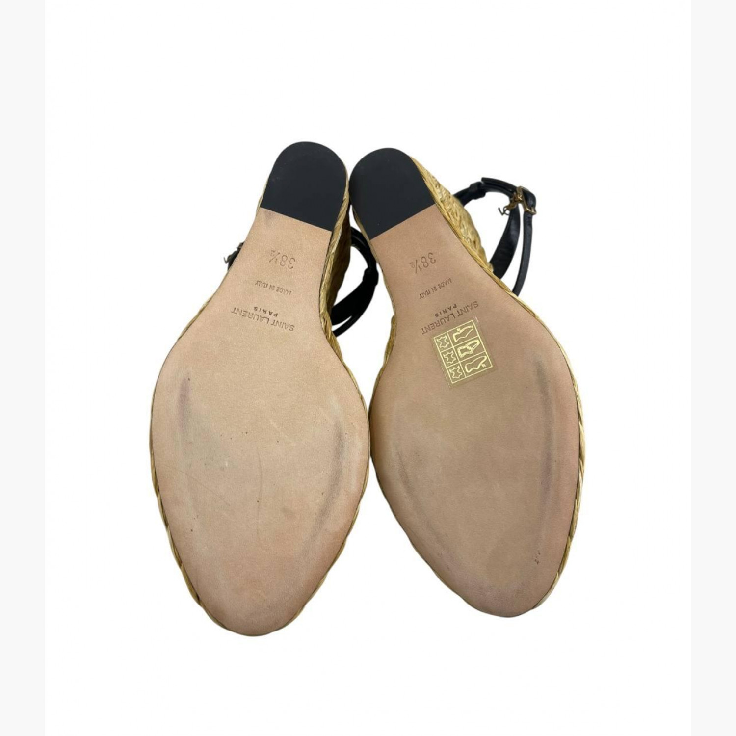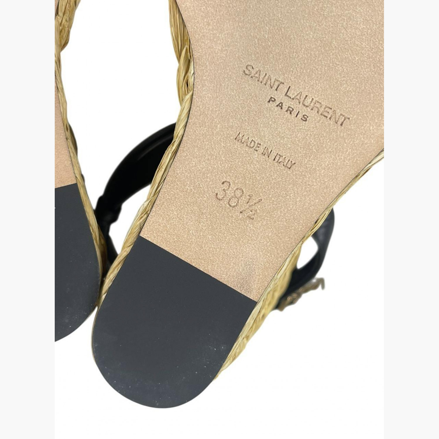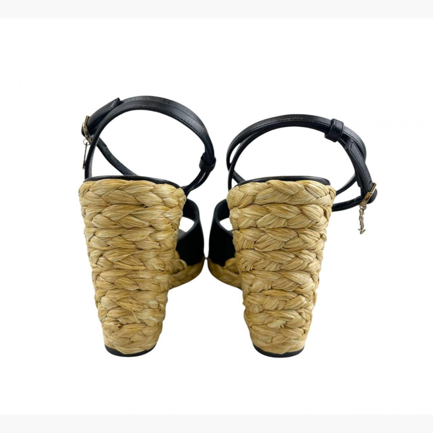 Чёрные кожаные босоножки на плетёной танкетке. Абсолютно новые, с незначительными следами примерки на подошве.