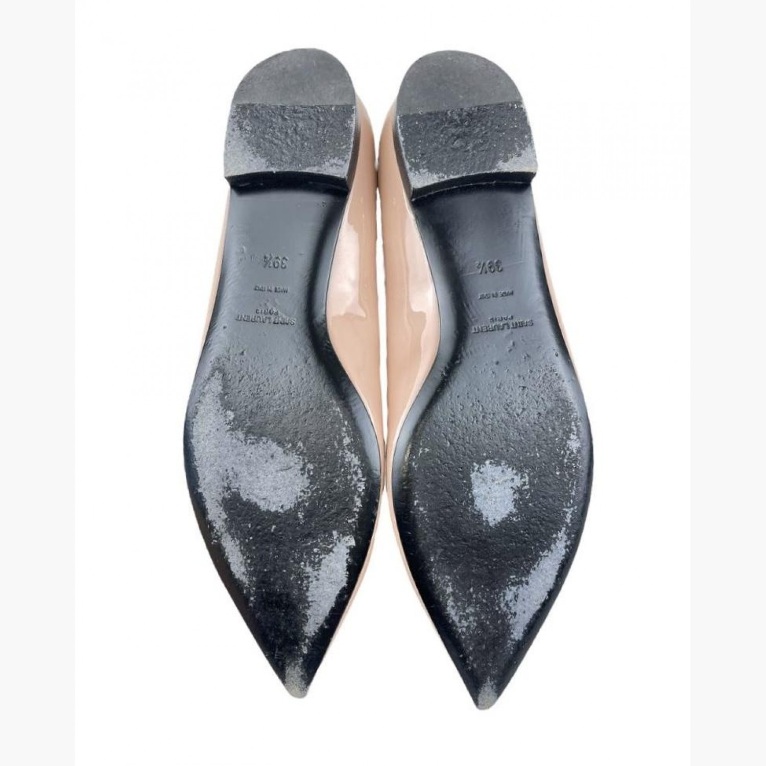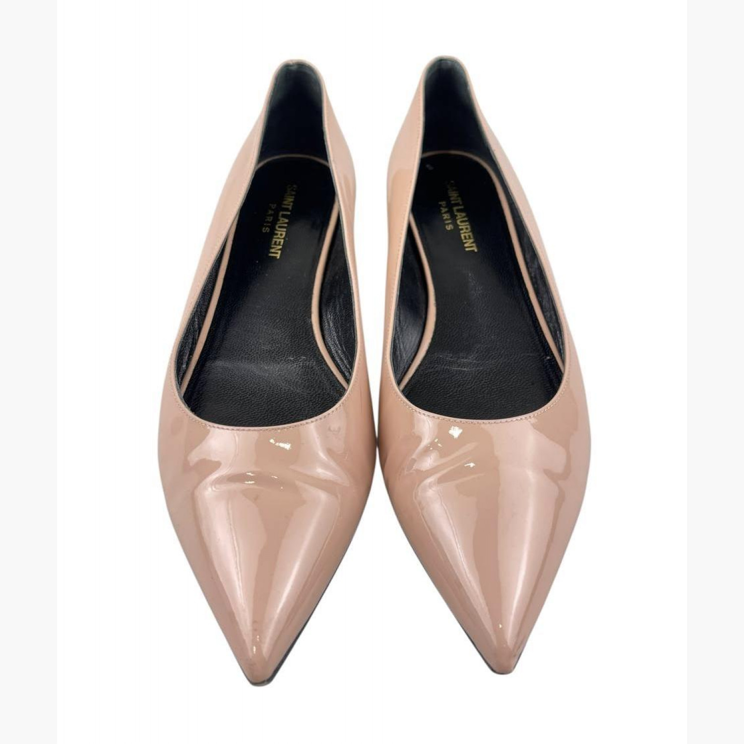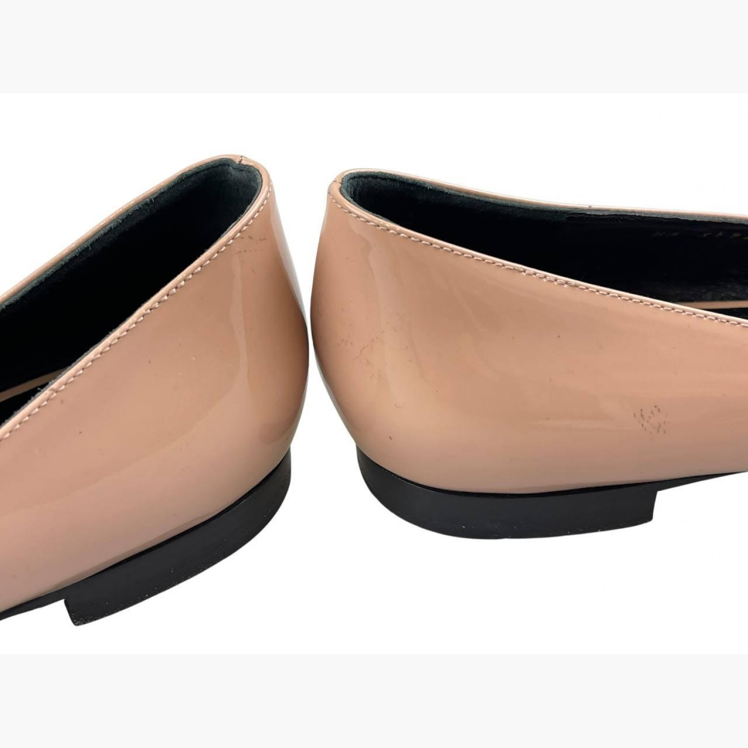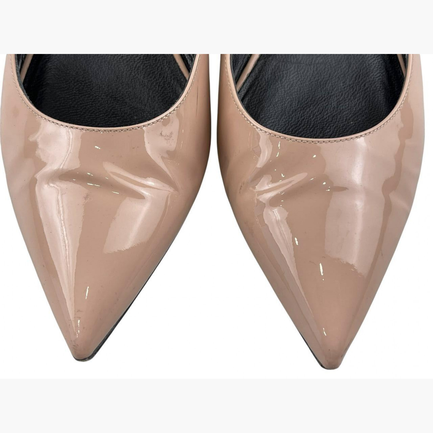 Бежевые лодочки с острым носком. В хорошем состоянии, есть потёртости.