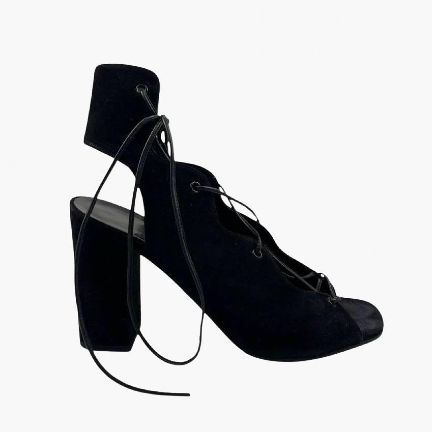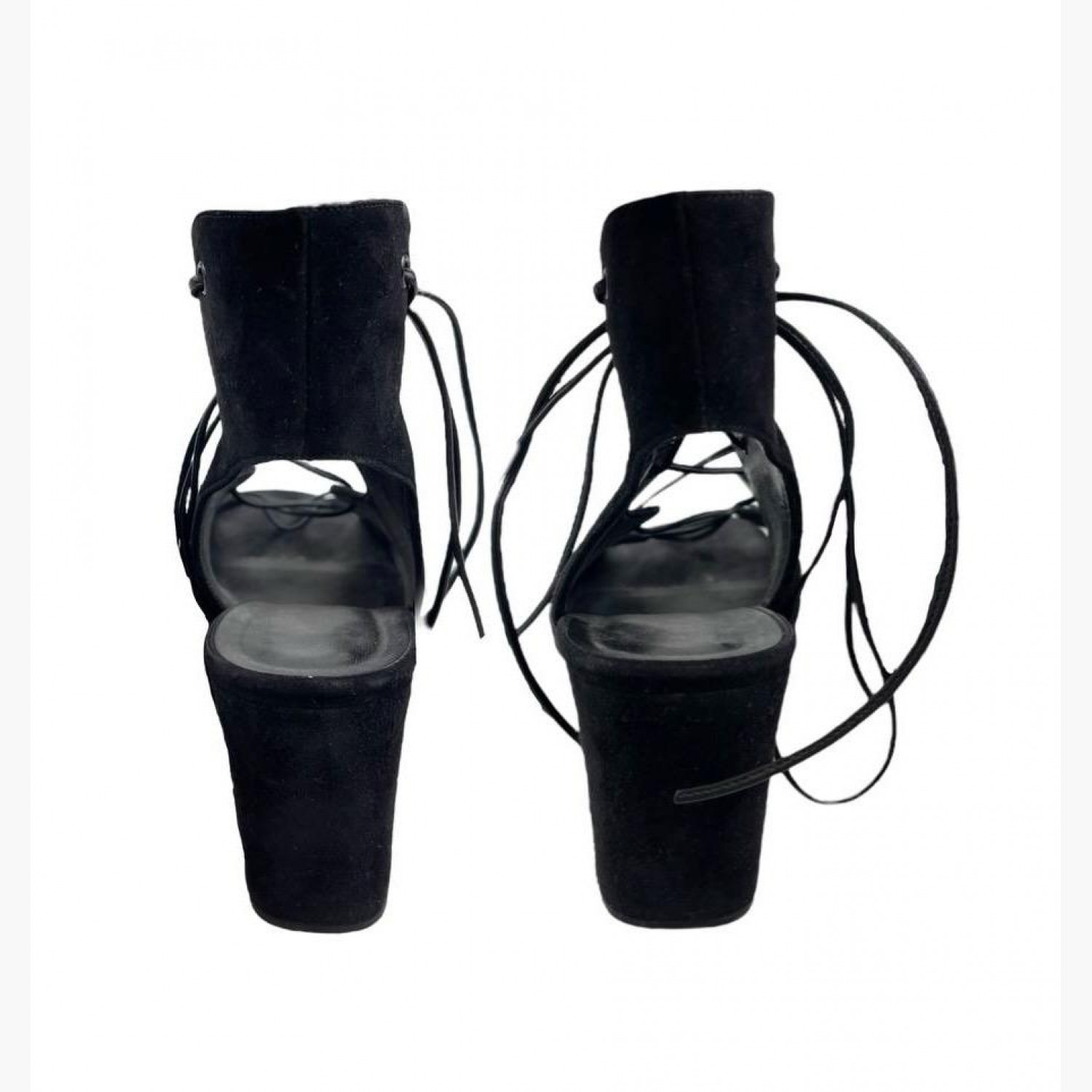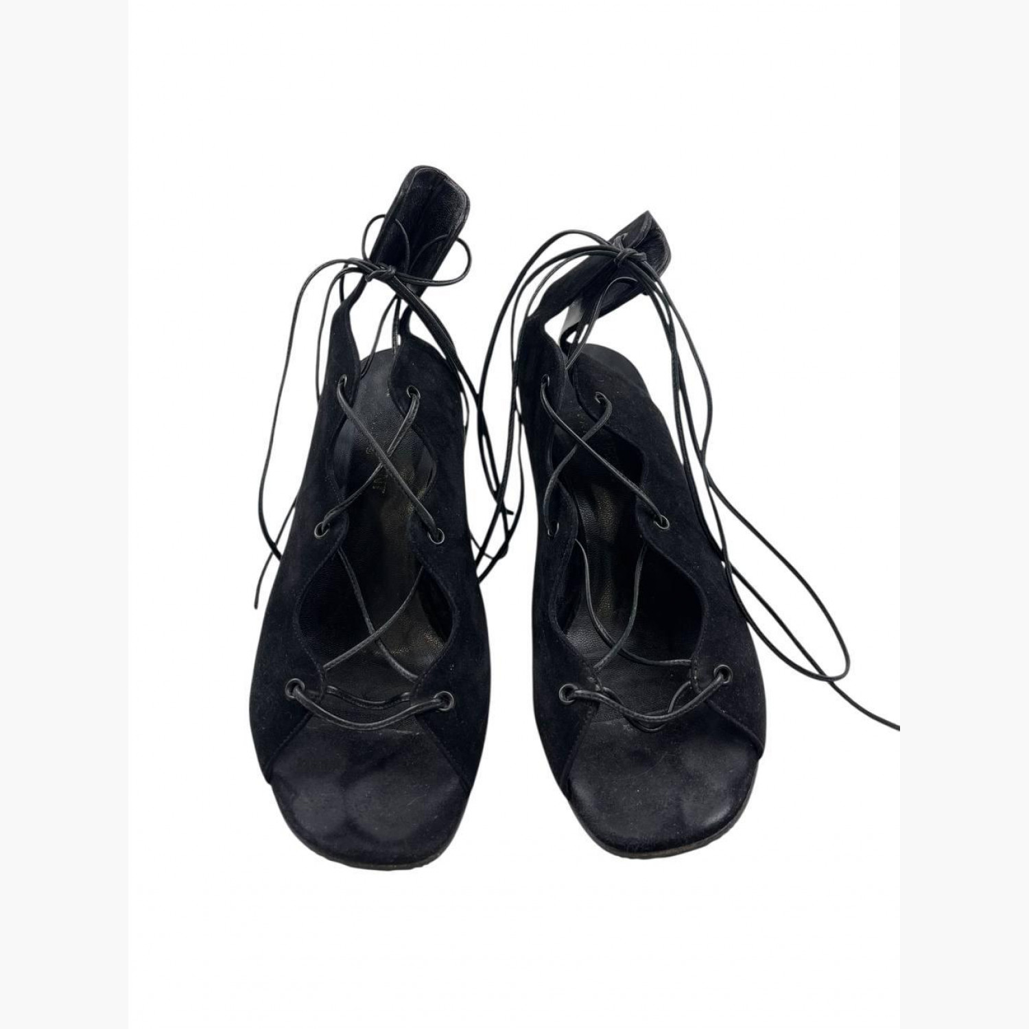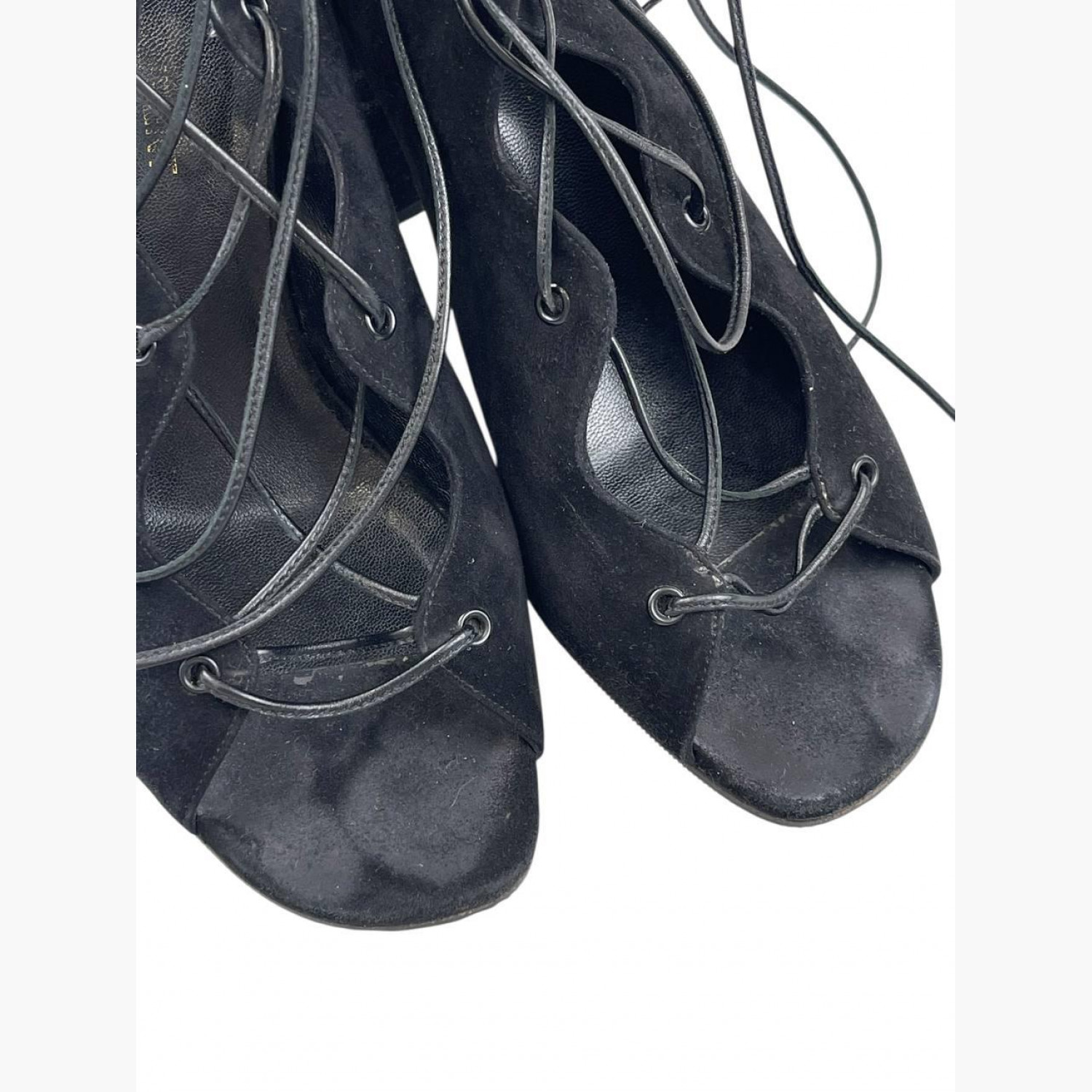 Черные замшевые босоножки на шнуровке. В хорошем состоянии, есть следы носки.