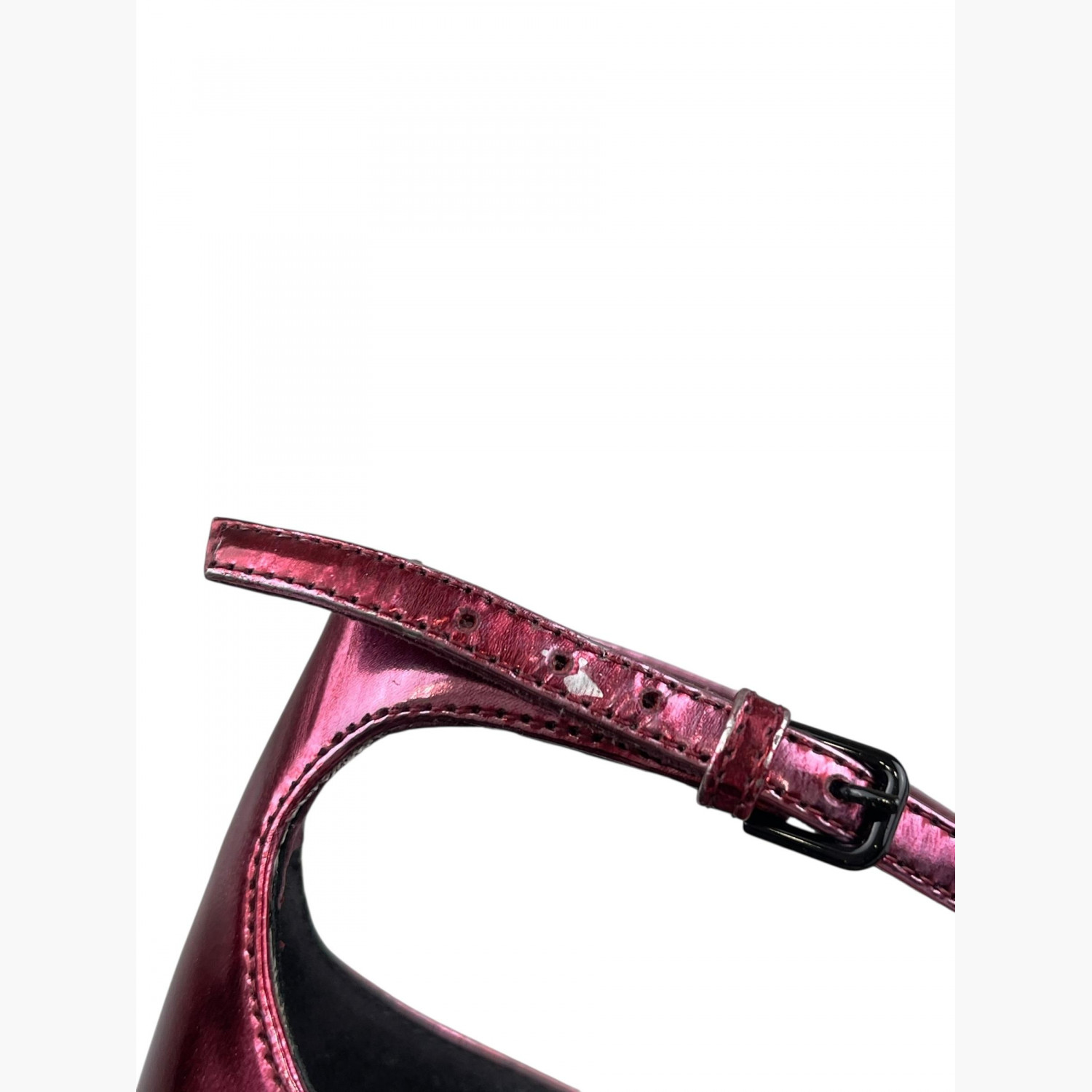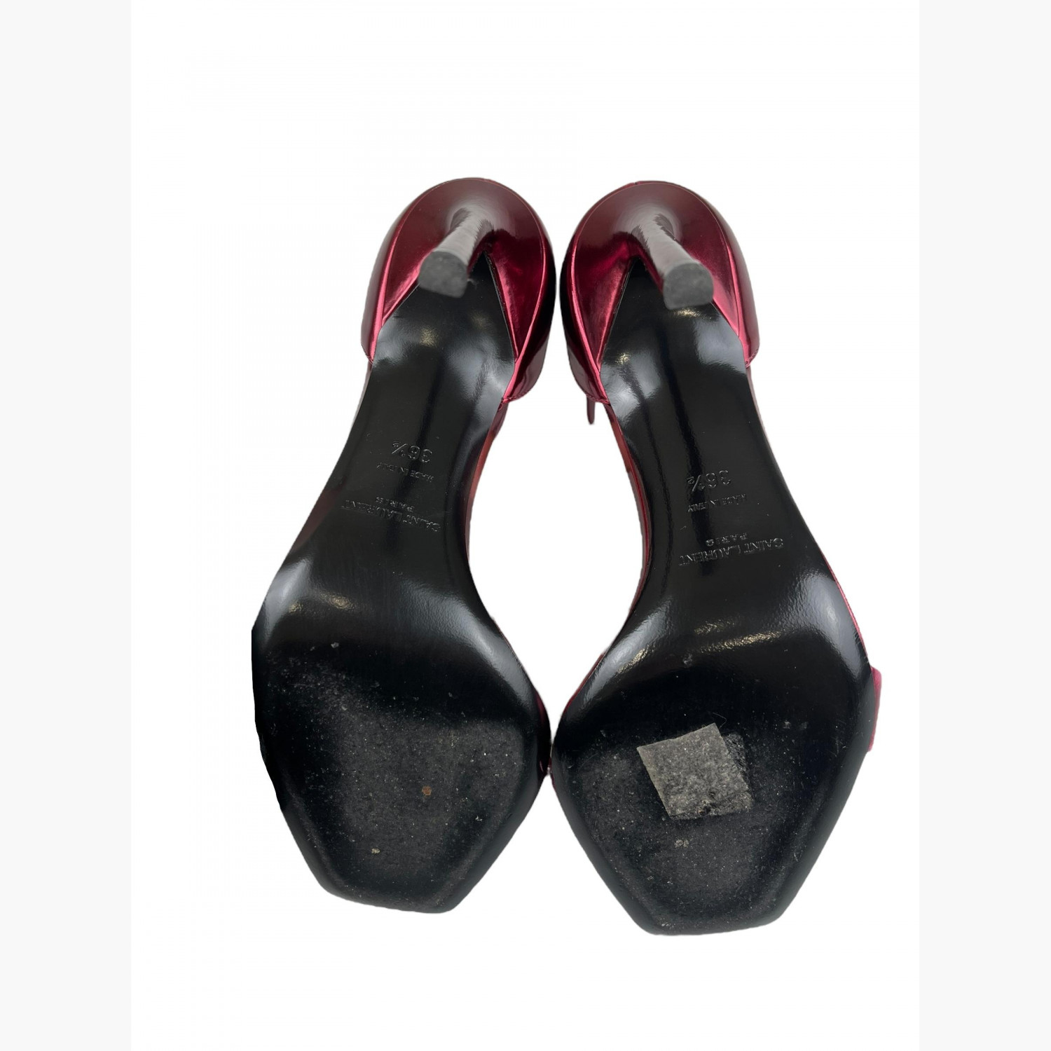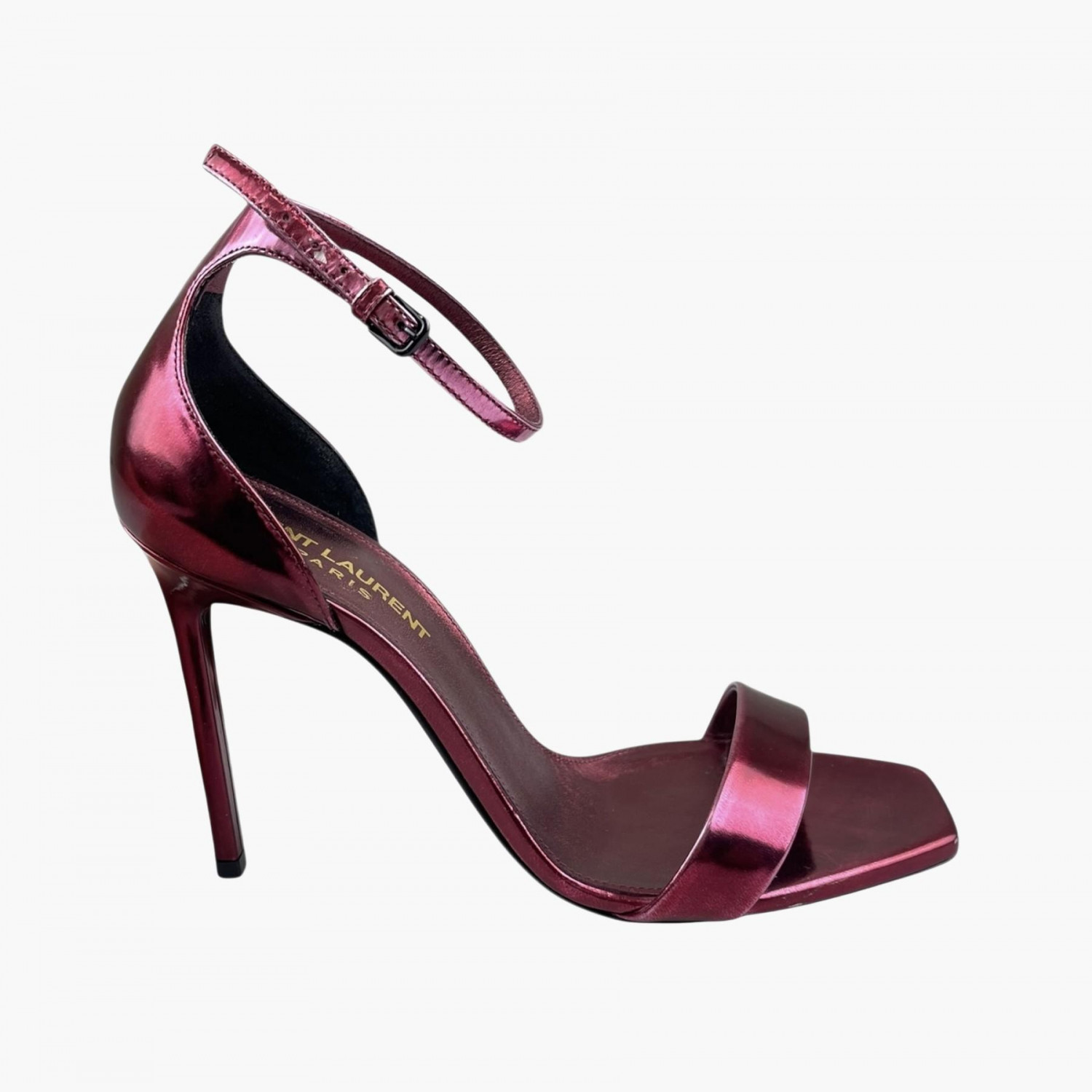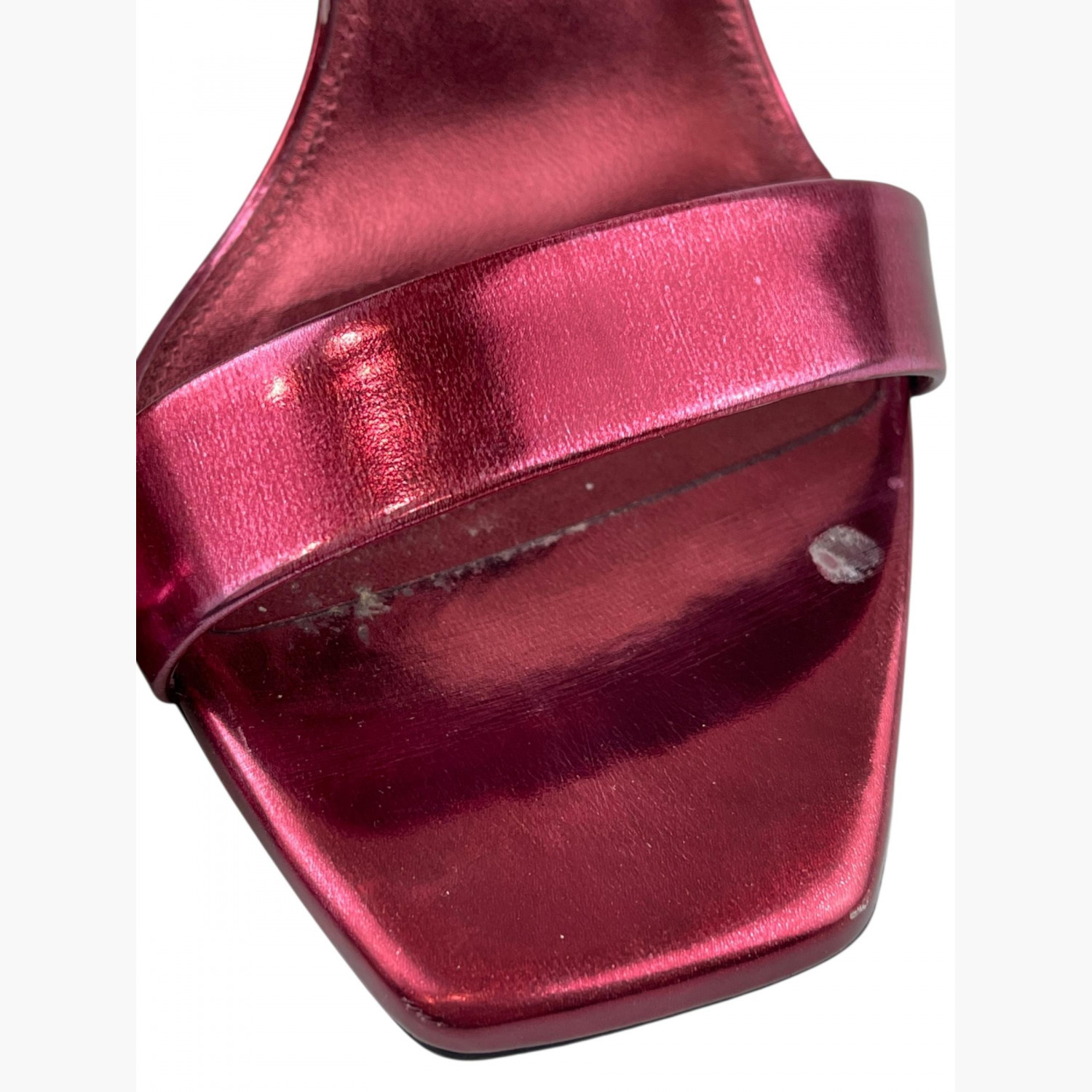 Бордовые босоножки на высоком каблуке с металлизированным эффектом. В хорошем состоянии, есть следы носки и потёртости.