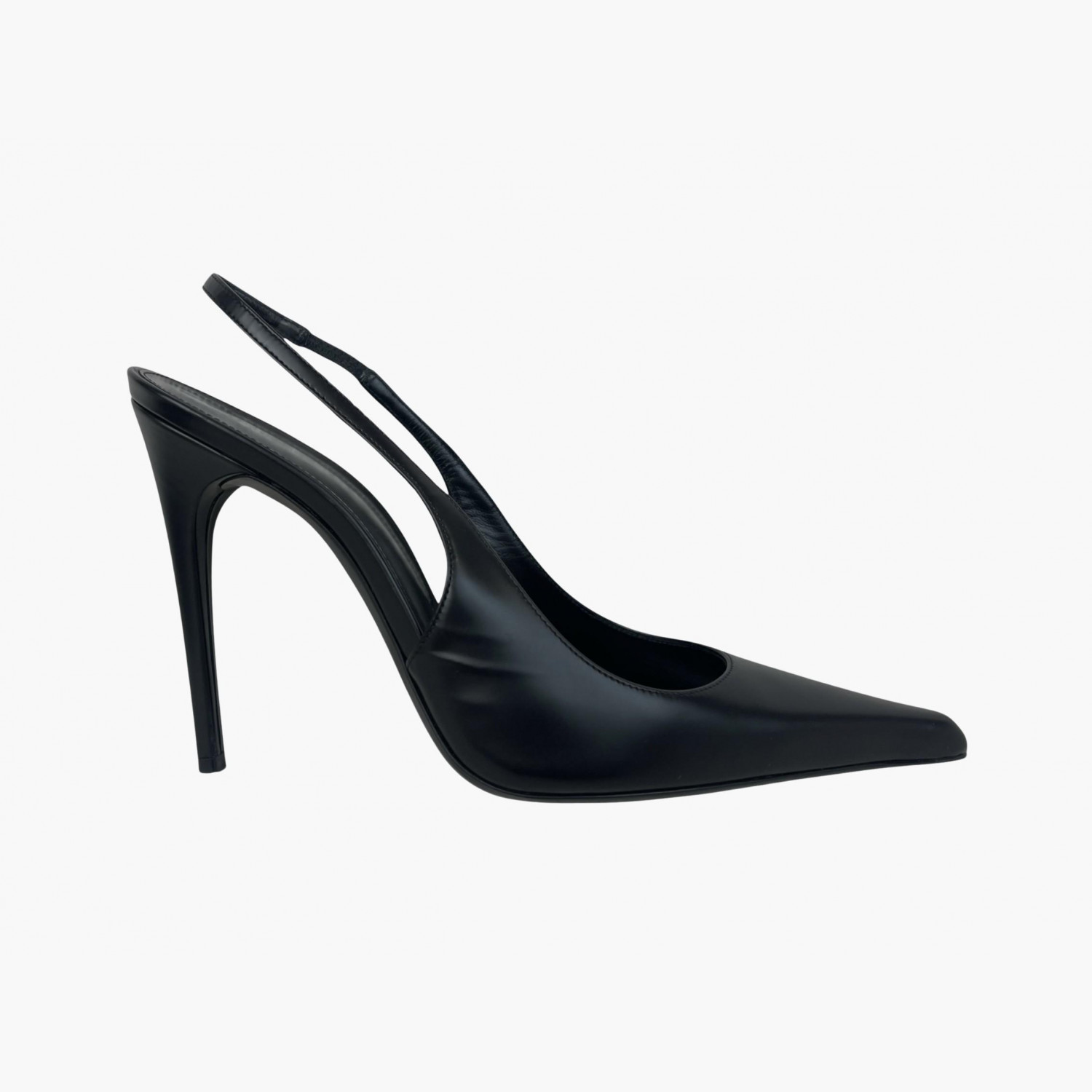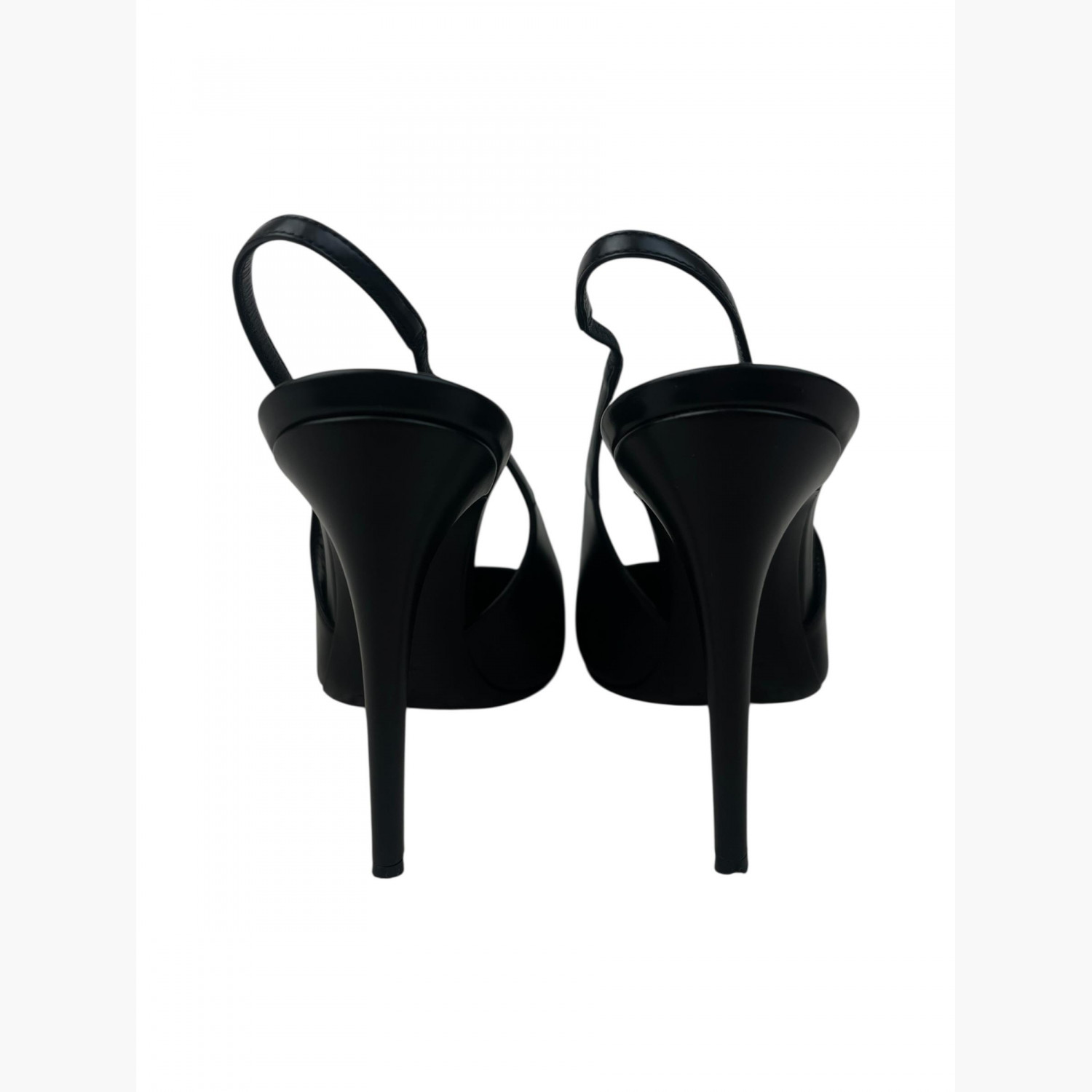 Чёрные кожаные босоножки на высоком каблуке с острым носком. В хорошем состоянии, есть потёртости.