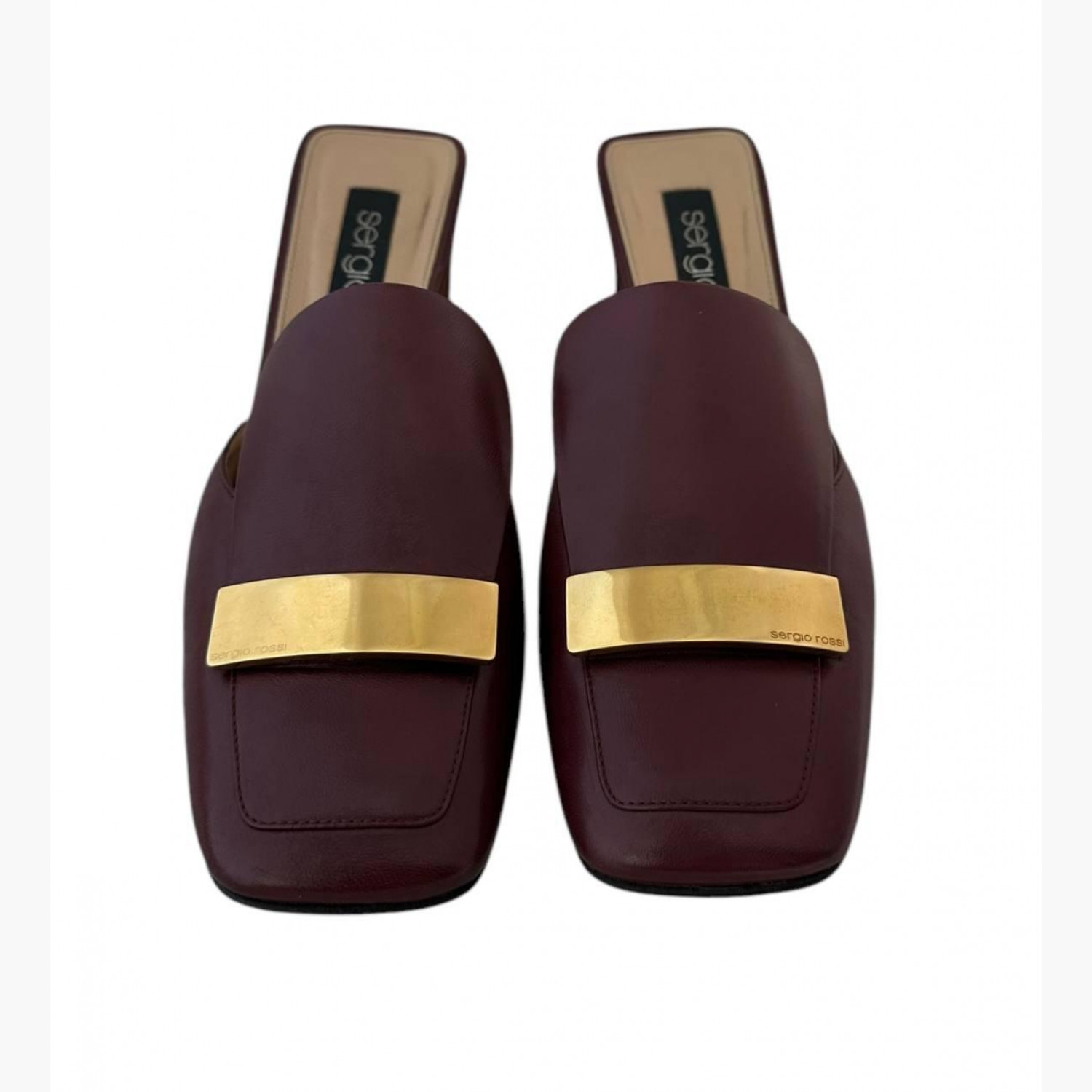 Бордовые кожаные мюли на каблуке. В хорошем состоянии, есть потертости на коже и подошве.